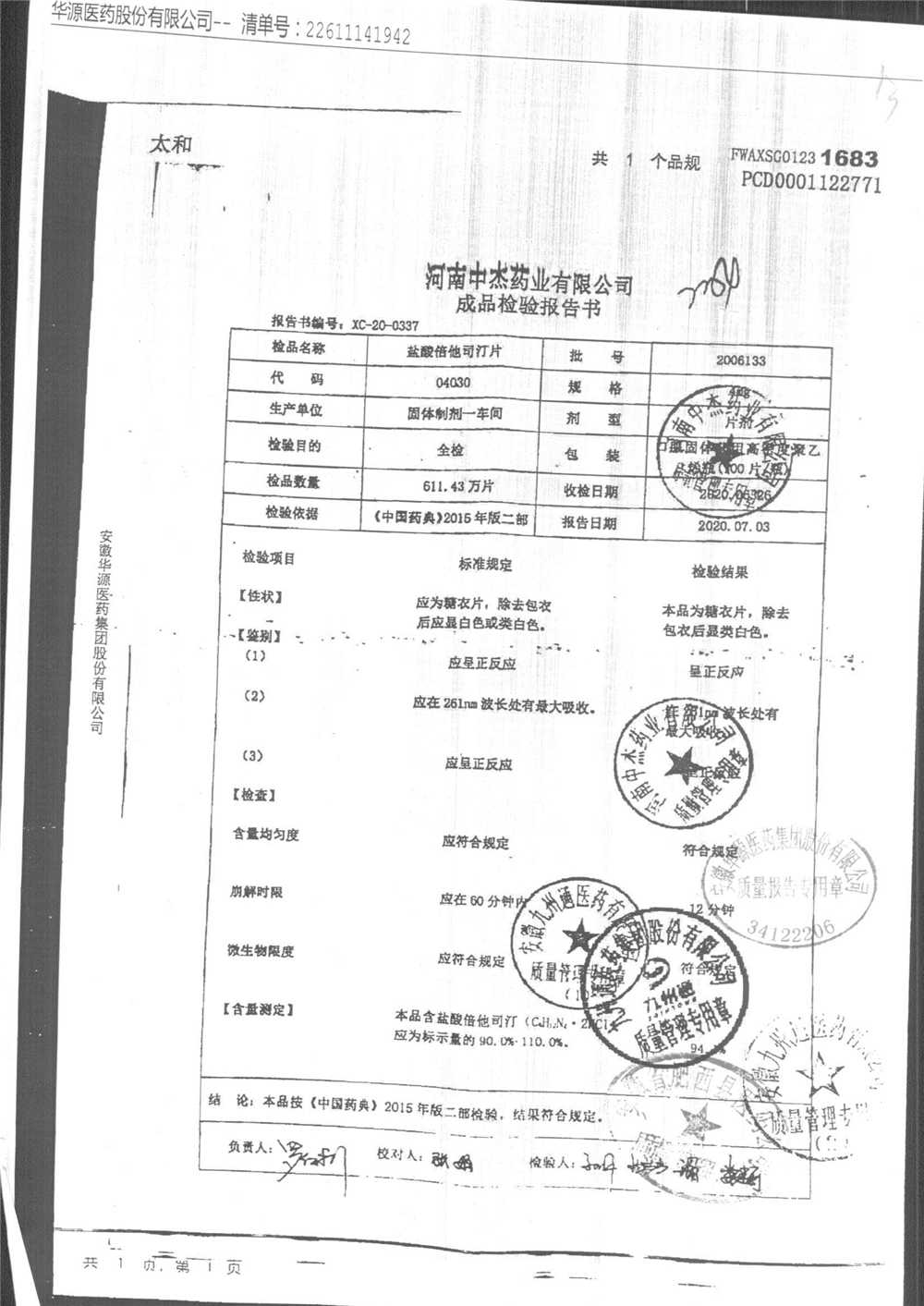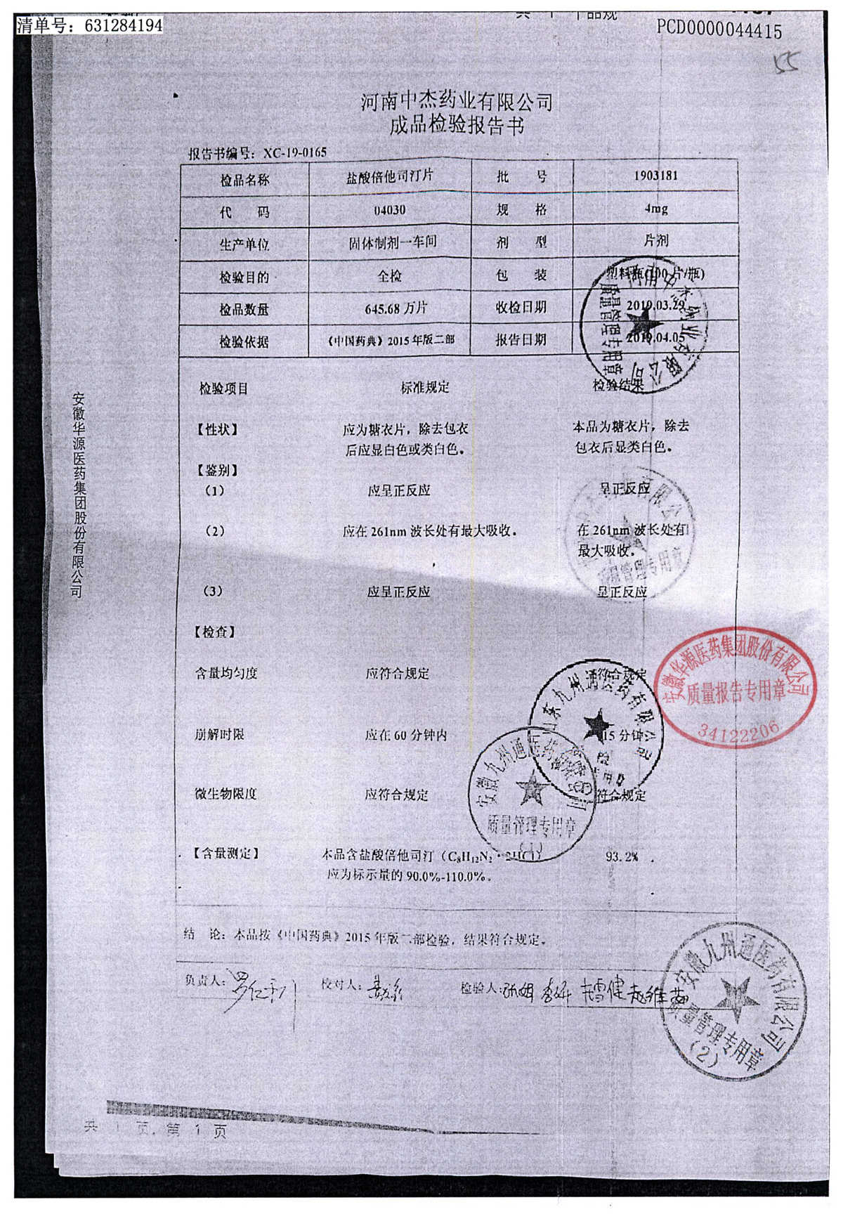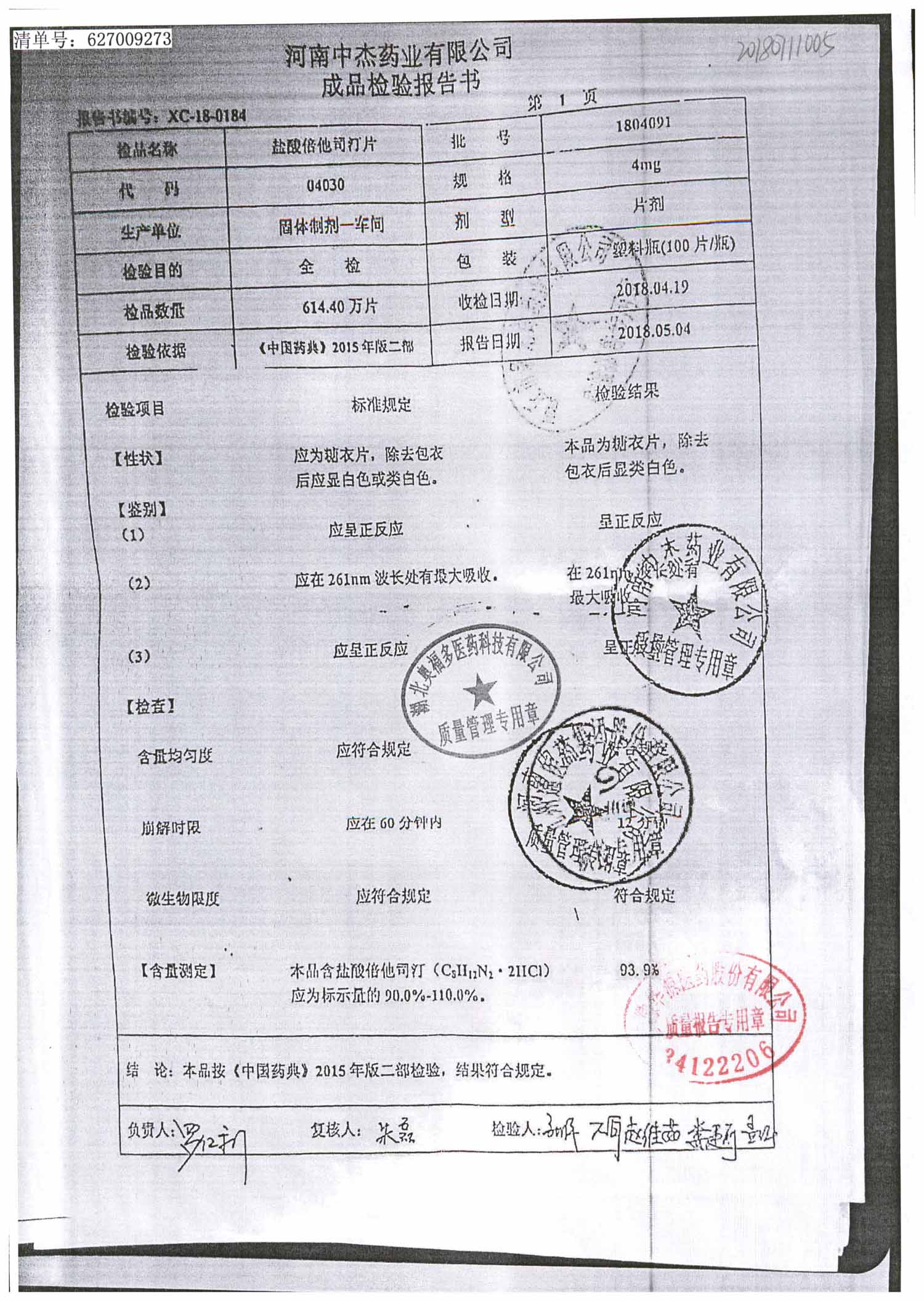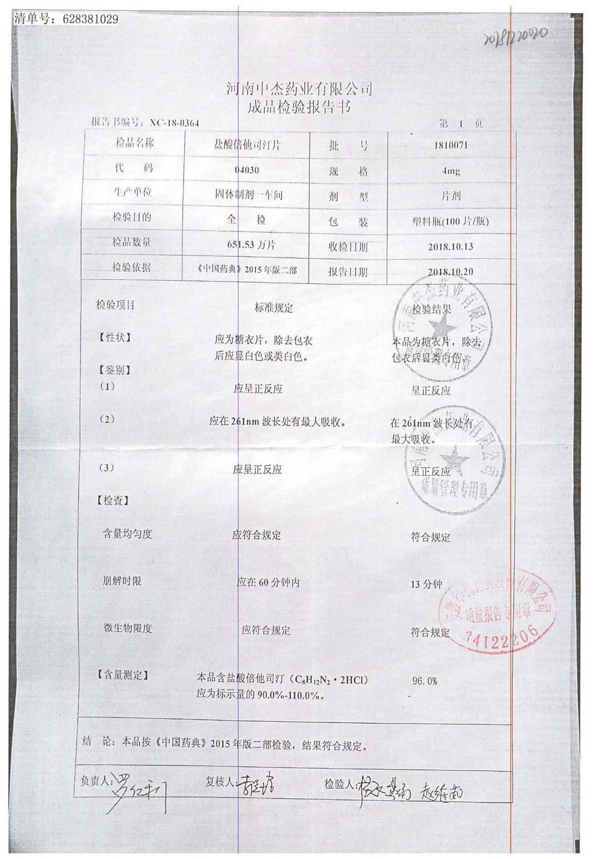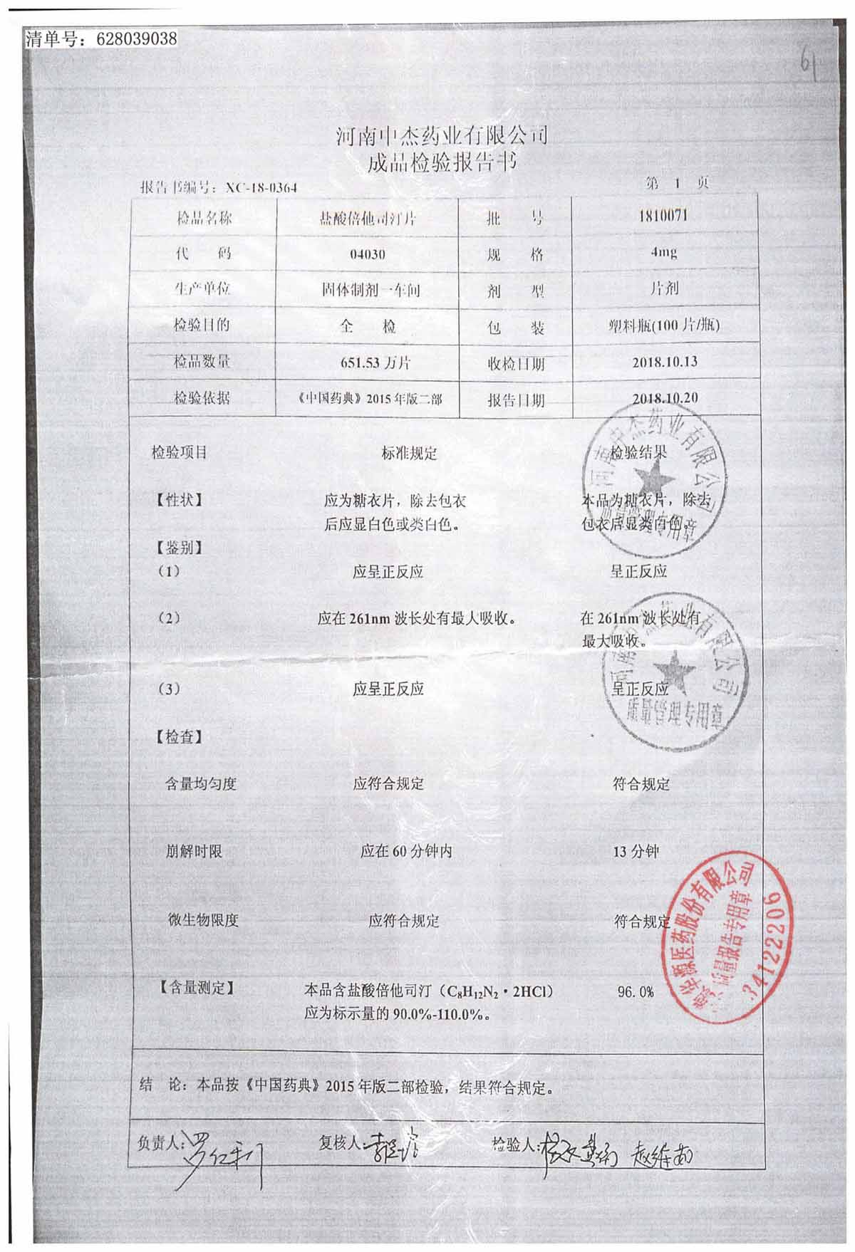 | 盐酸倍他司汀片 | 4mg*100s | 1804091 | 查看详情 |