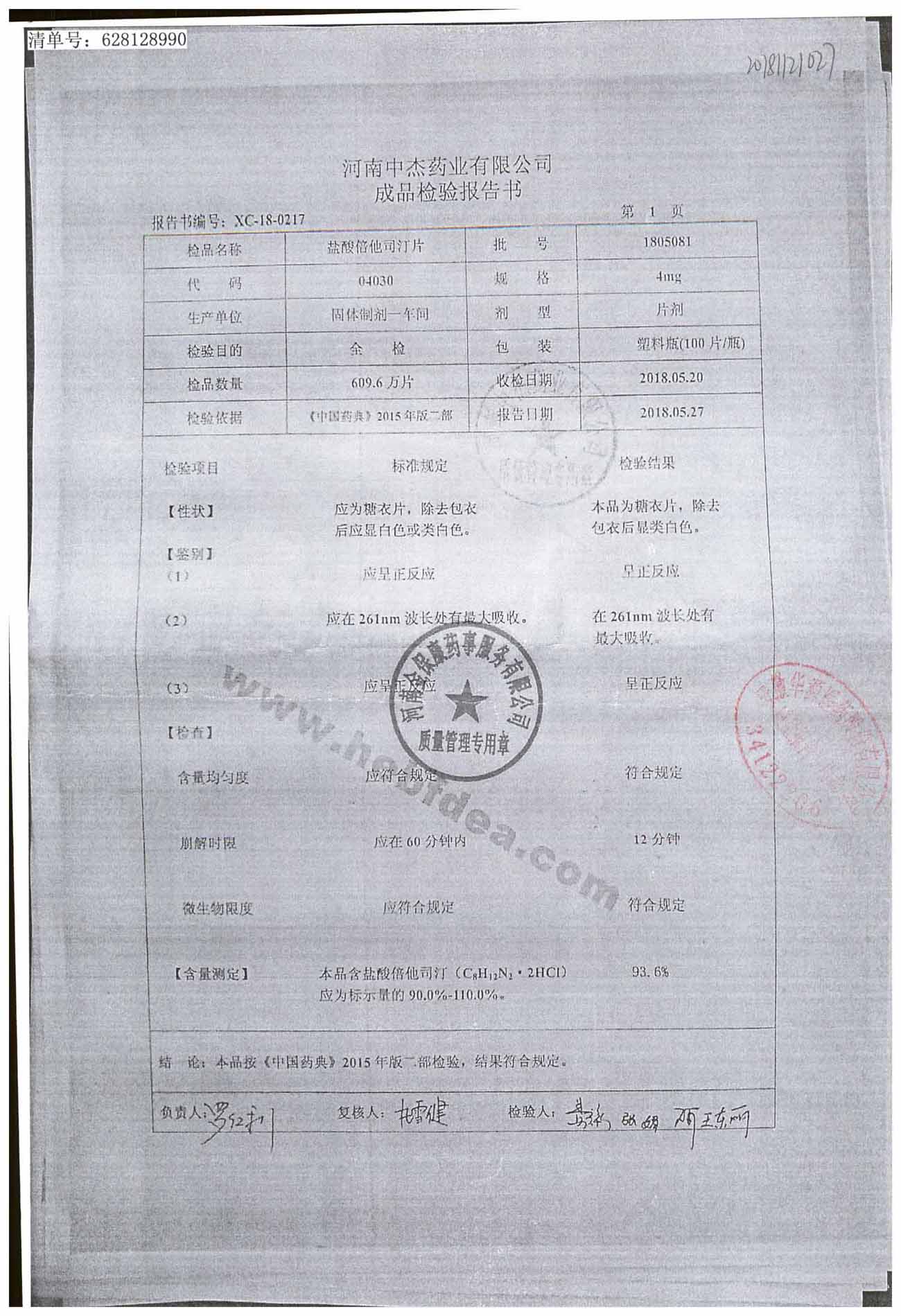 | 盐酸倍他司汀片 | 4mg*100s | 1805081 | 查看详情 |