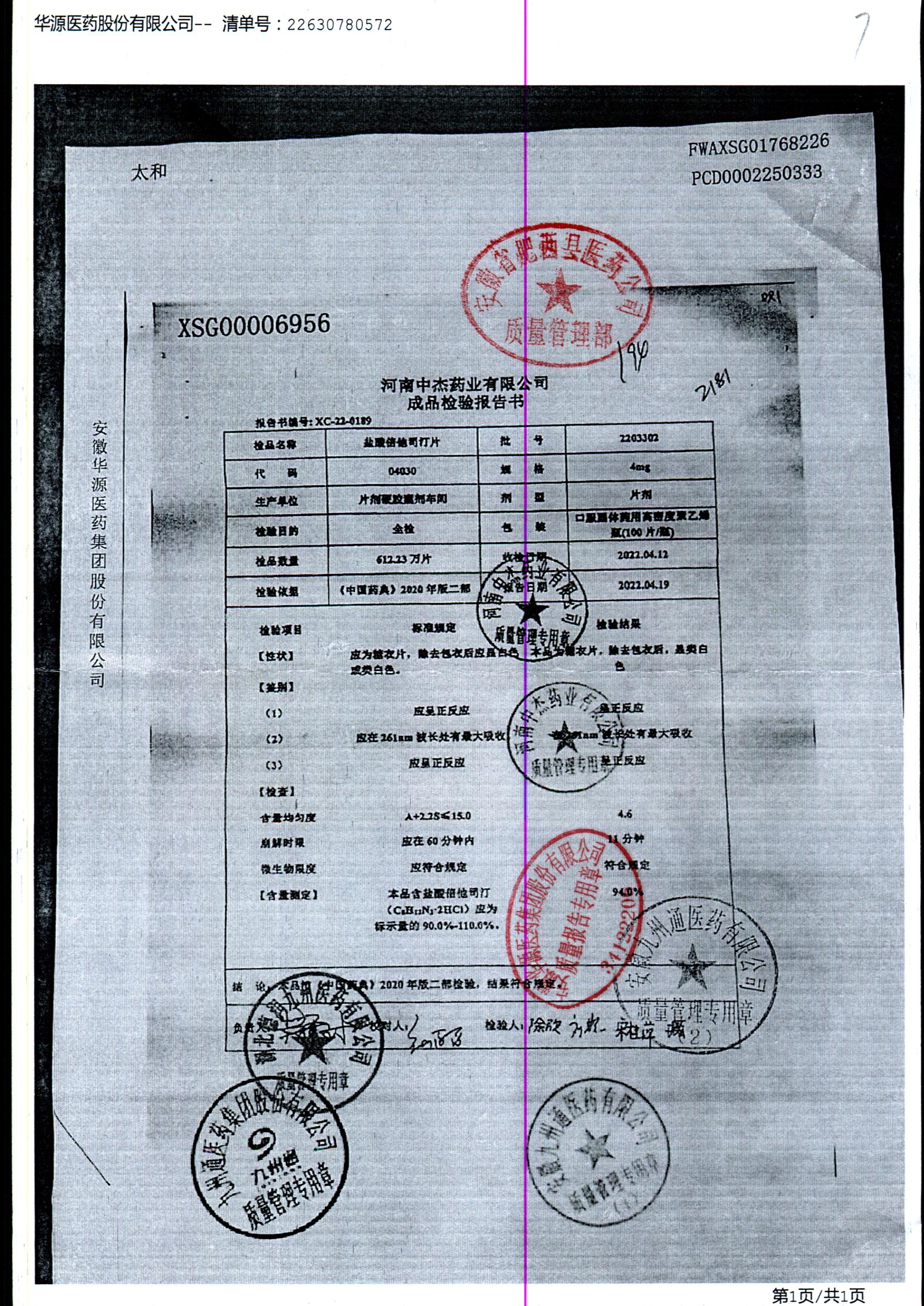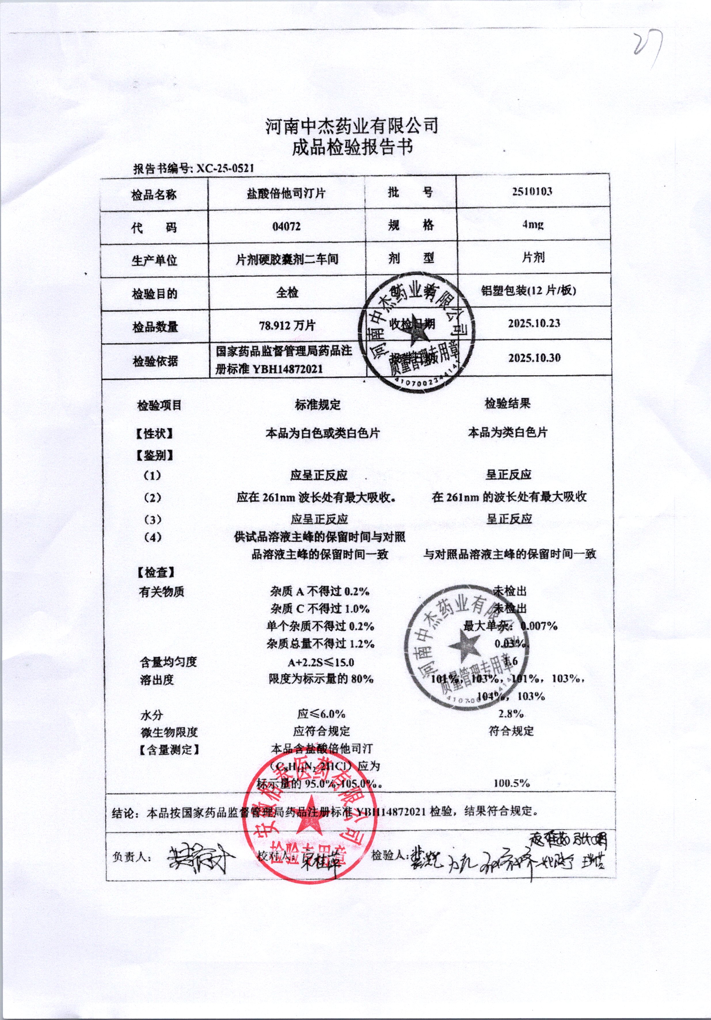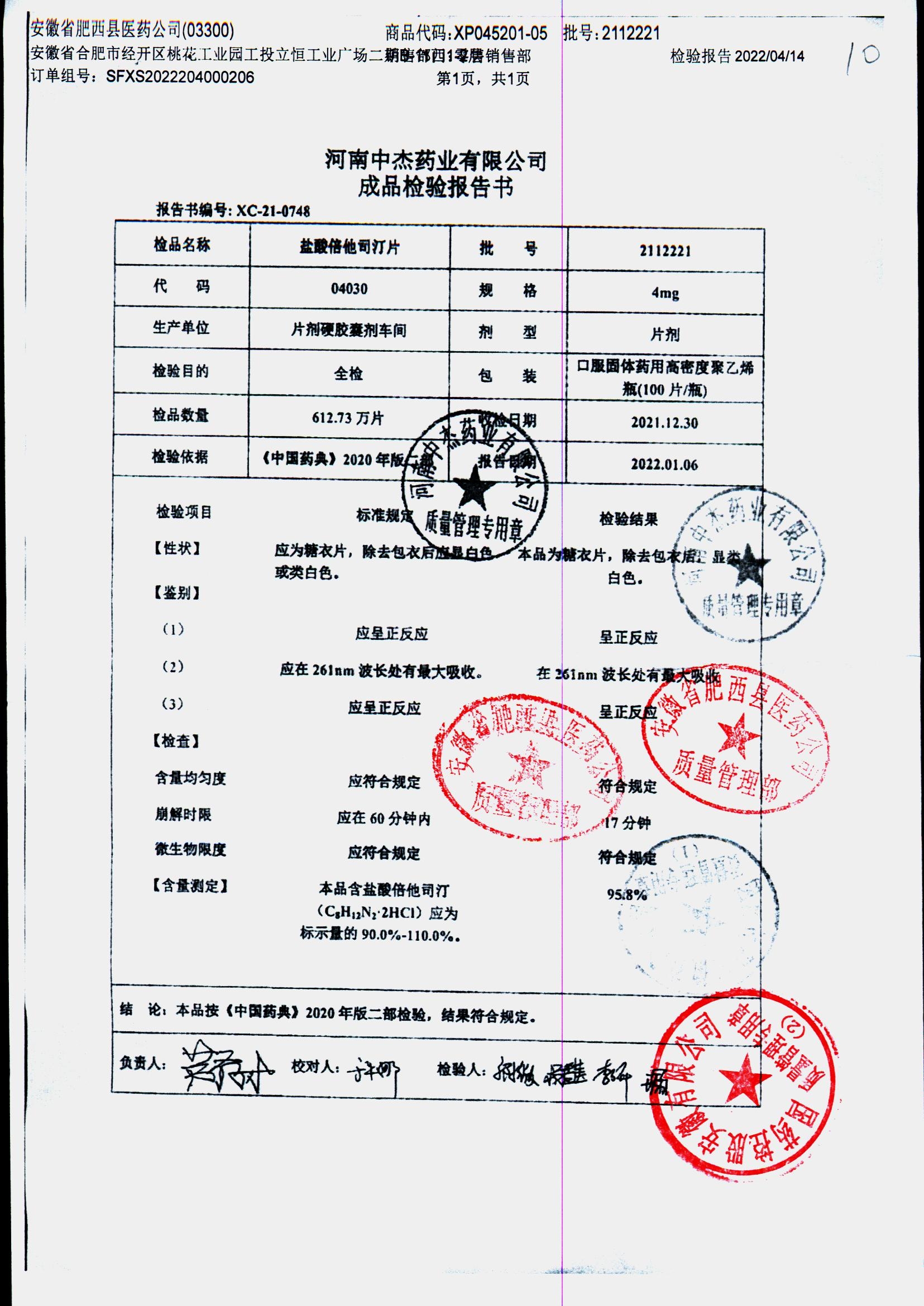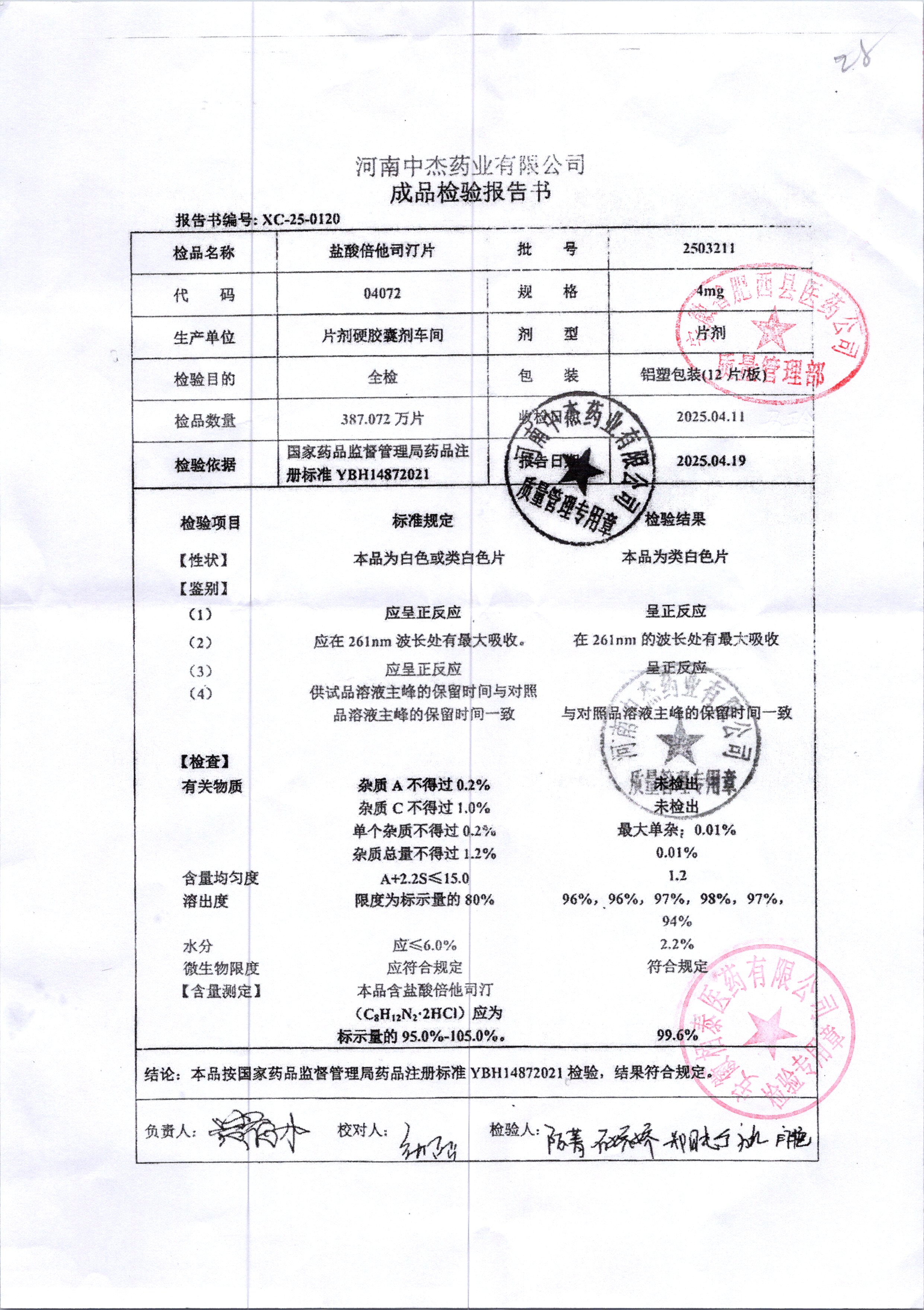| 盐酸倍他司汀片 | 4mg*100s | 2204022 | 查看详情 |