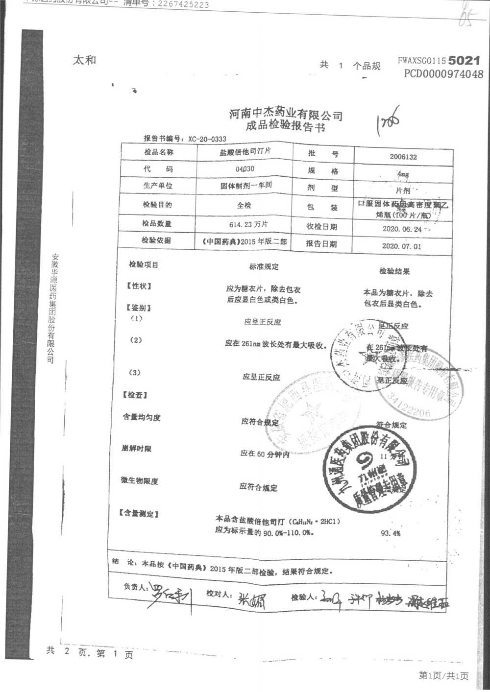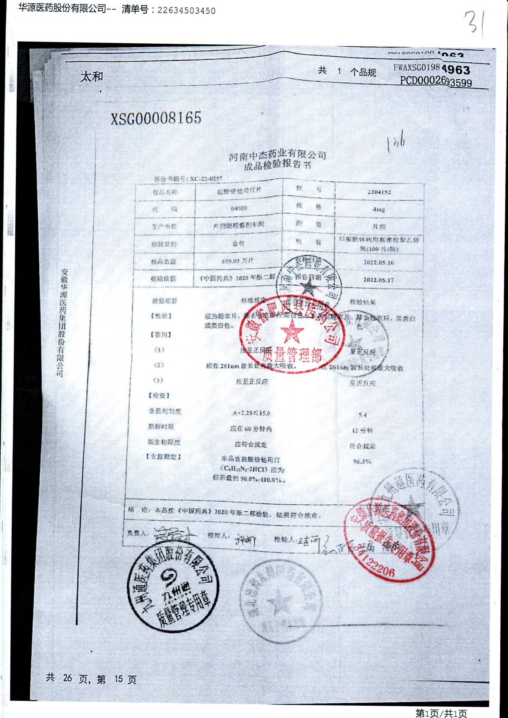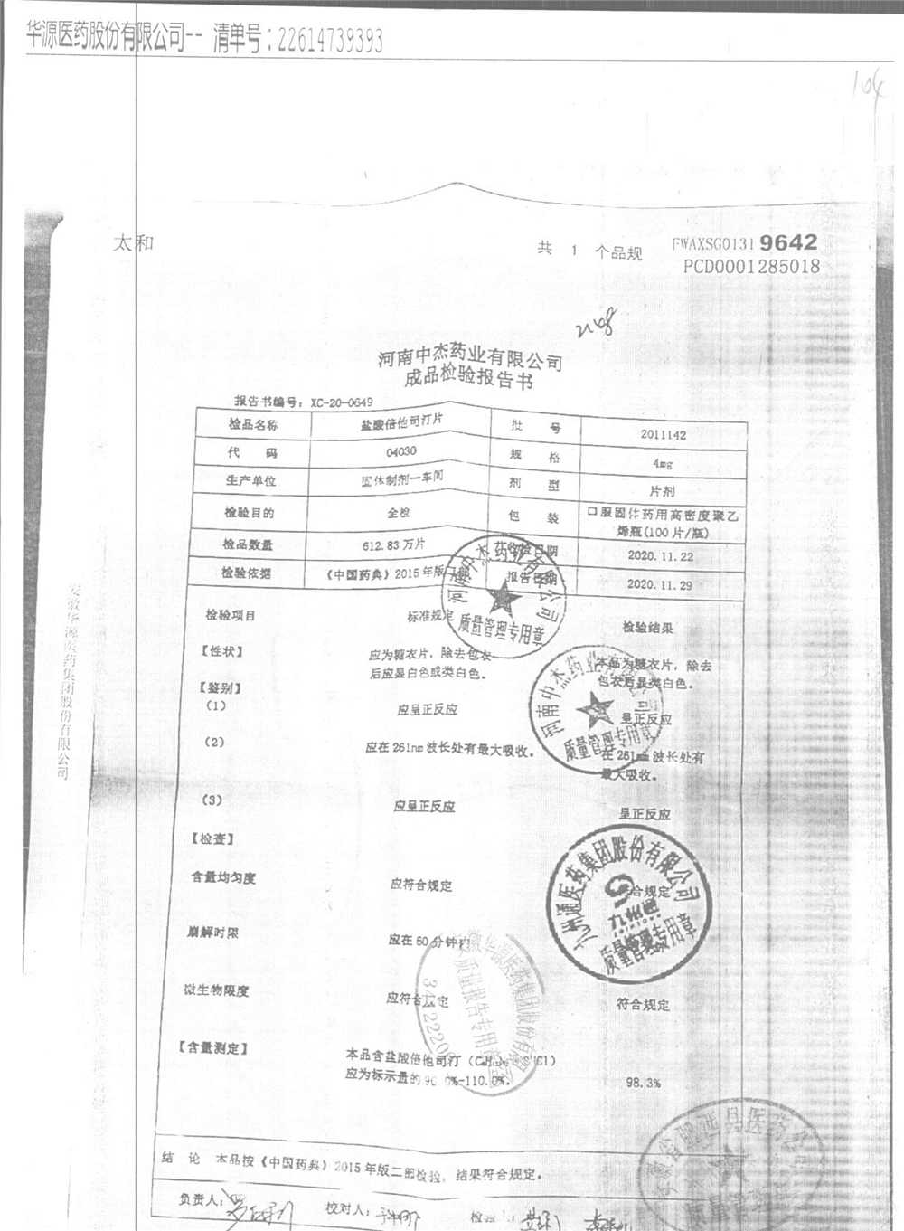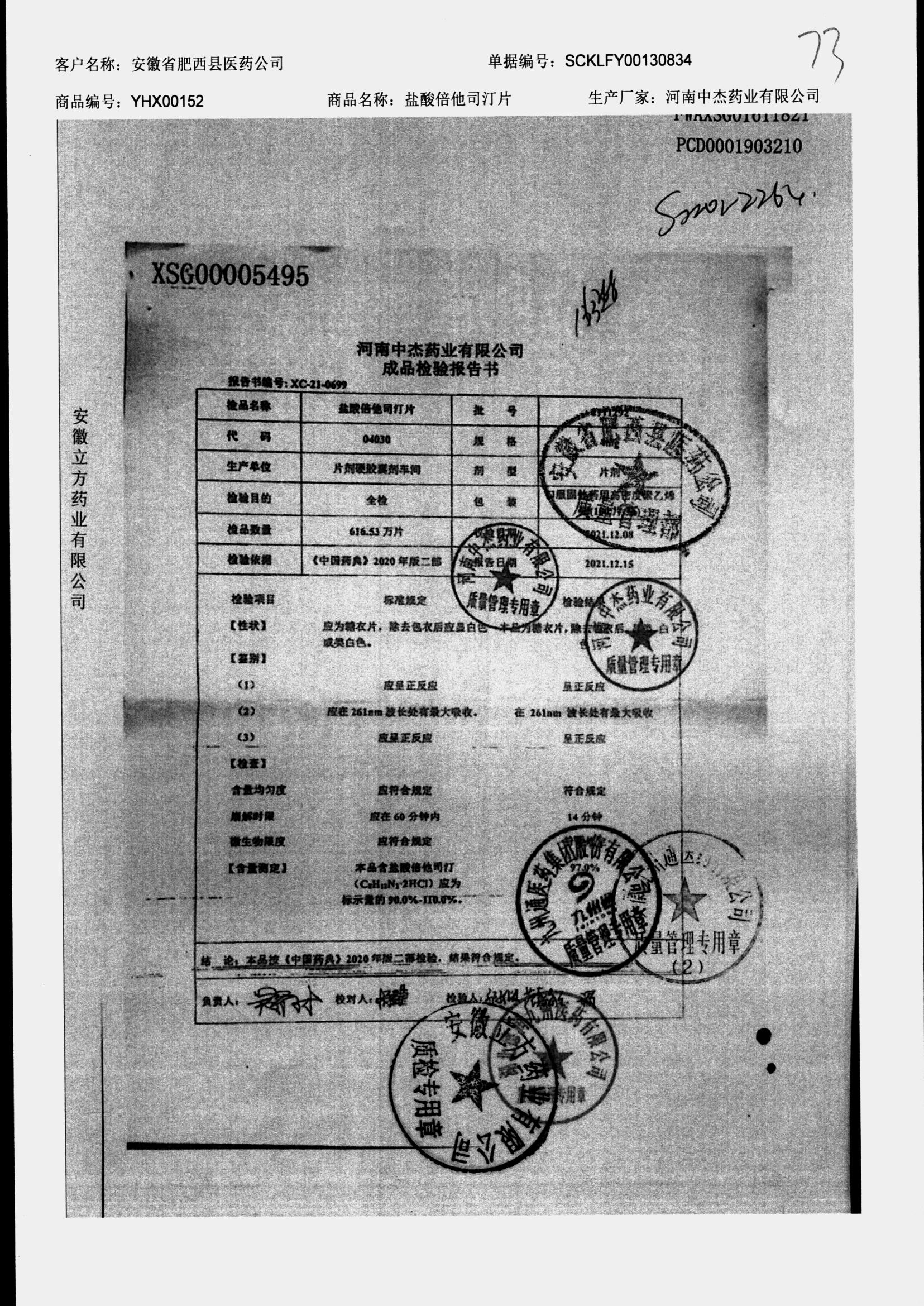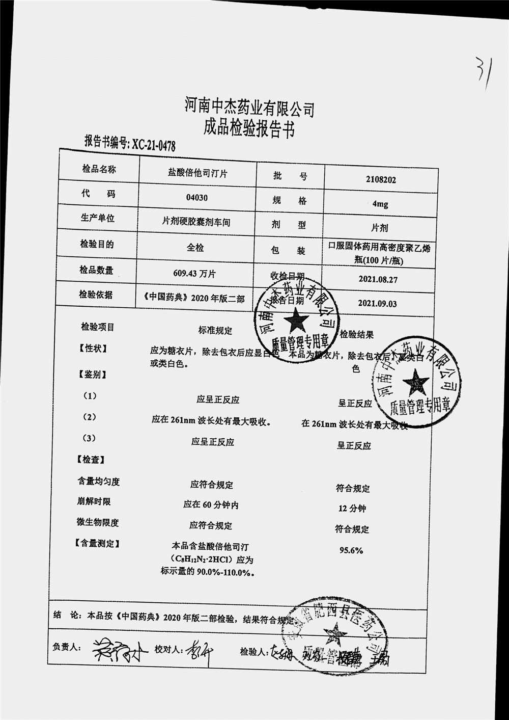 | 盐酸倍他司汀片 | 4mg*100s | 2204022 | 查看详情 |