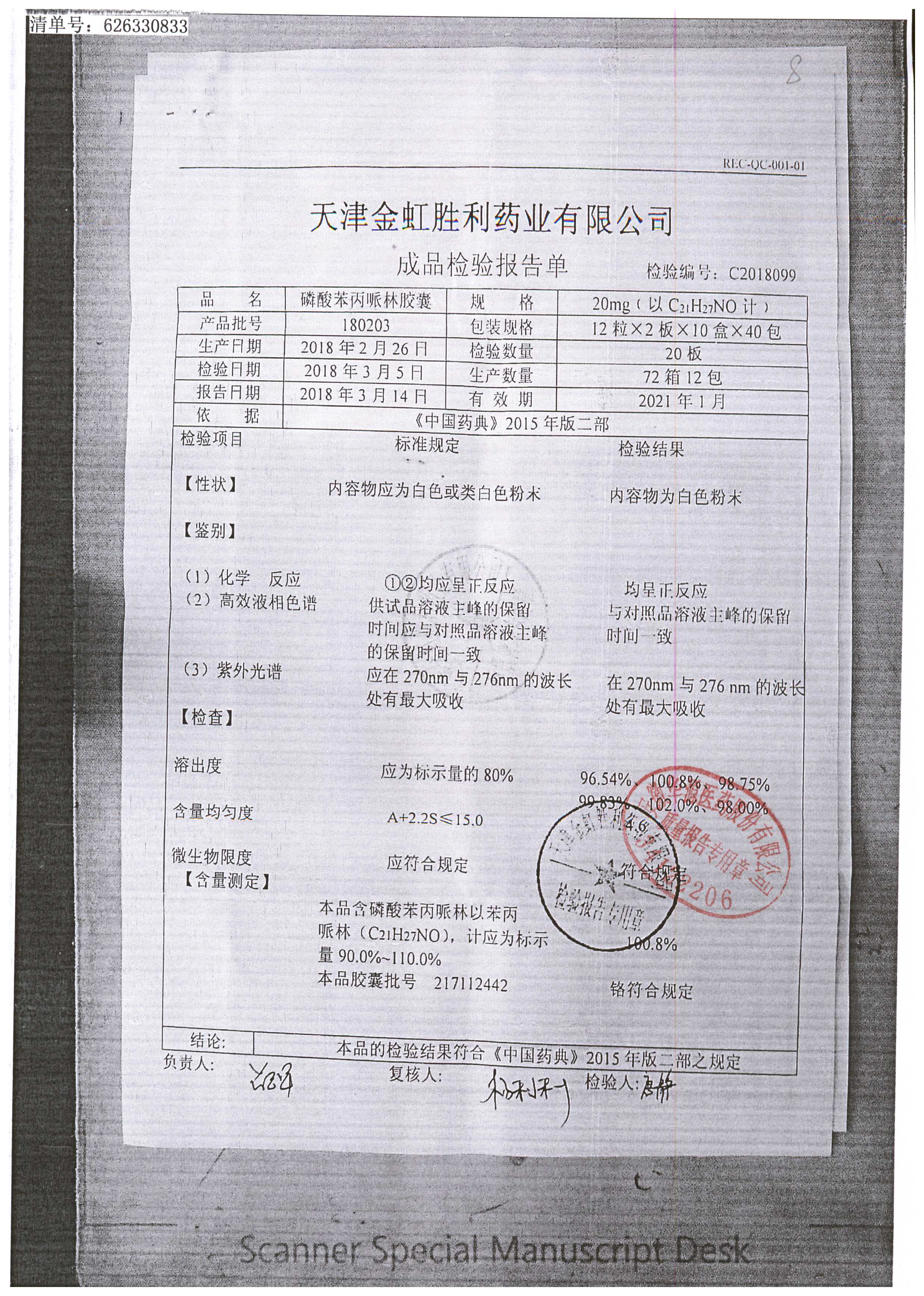 药检报告