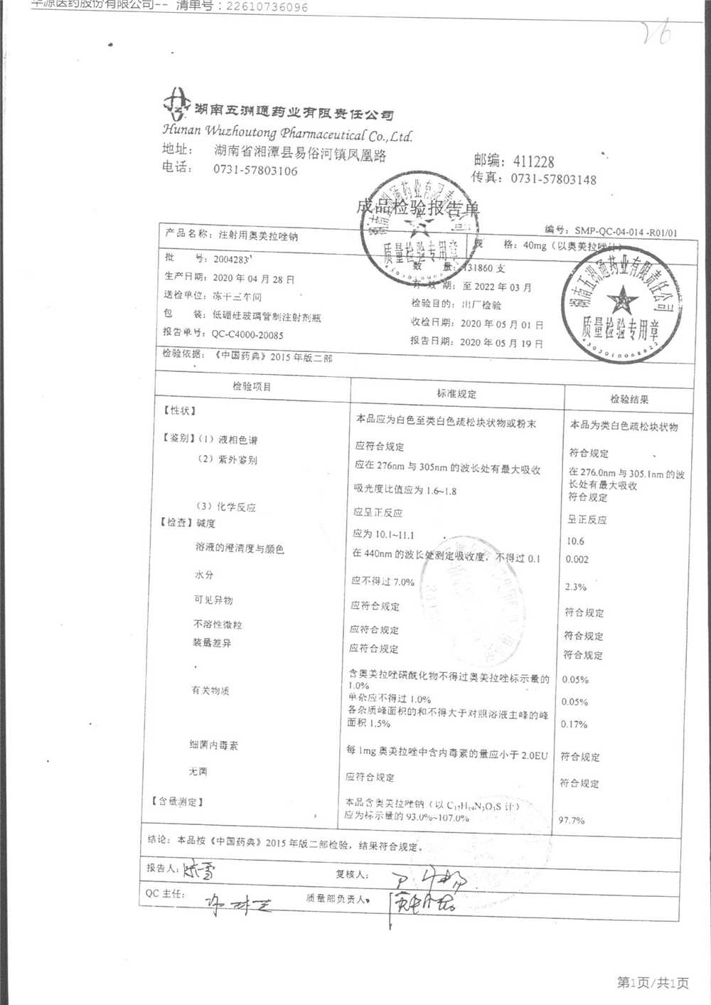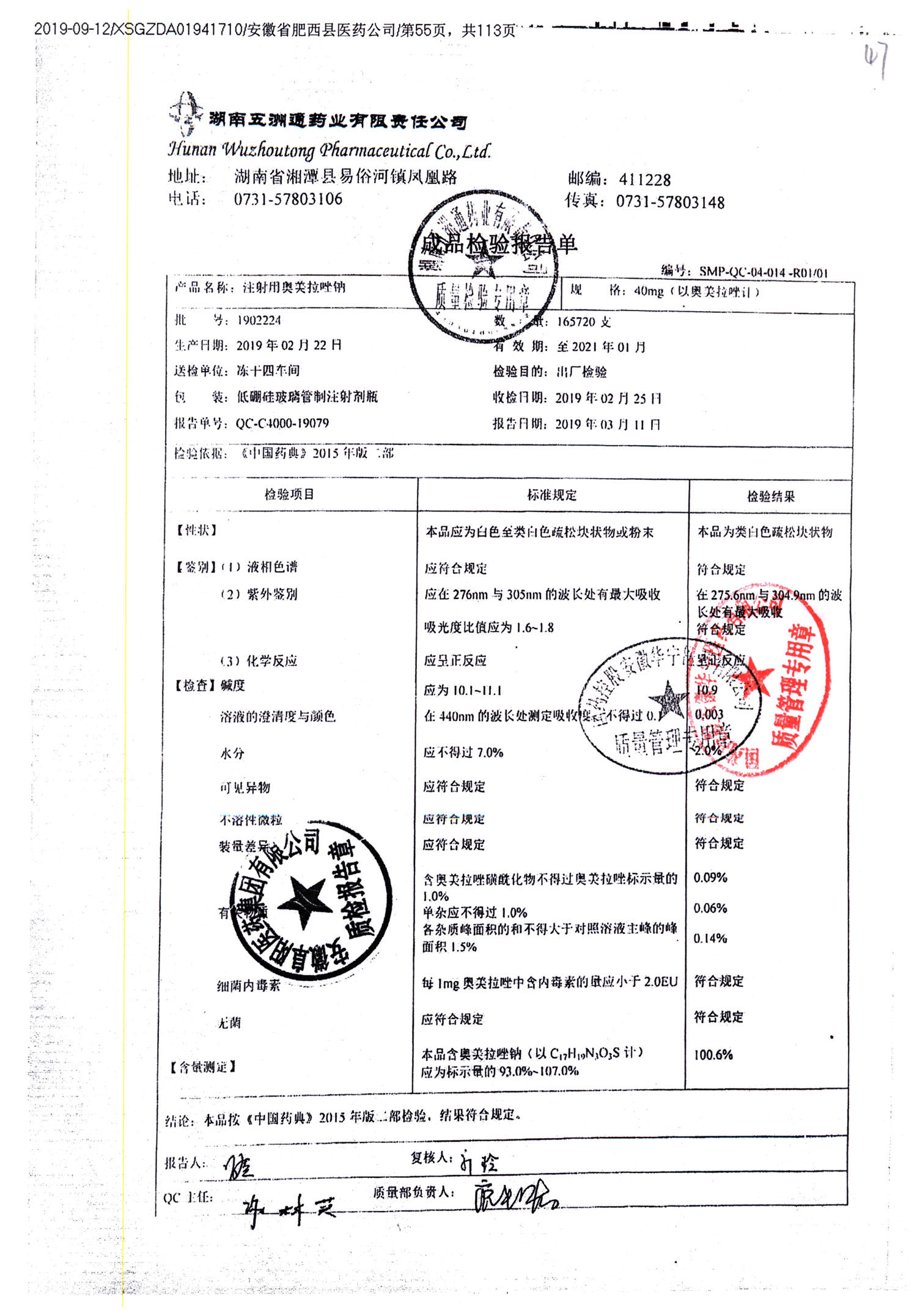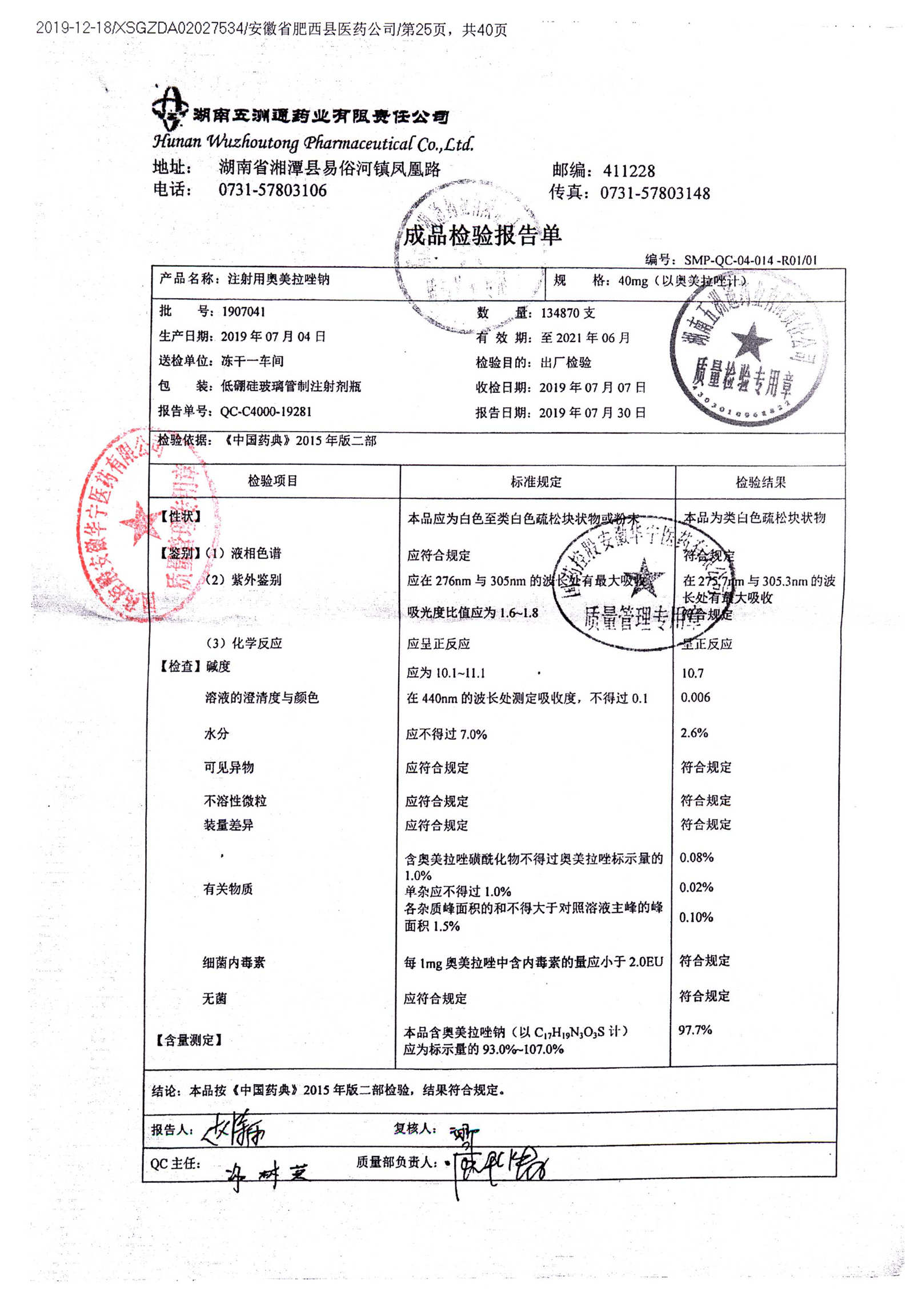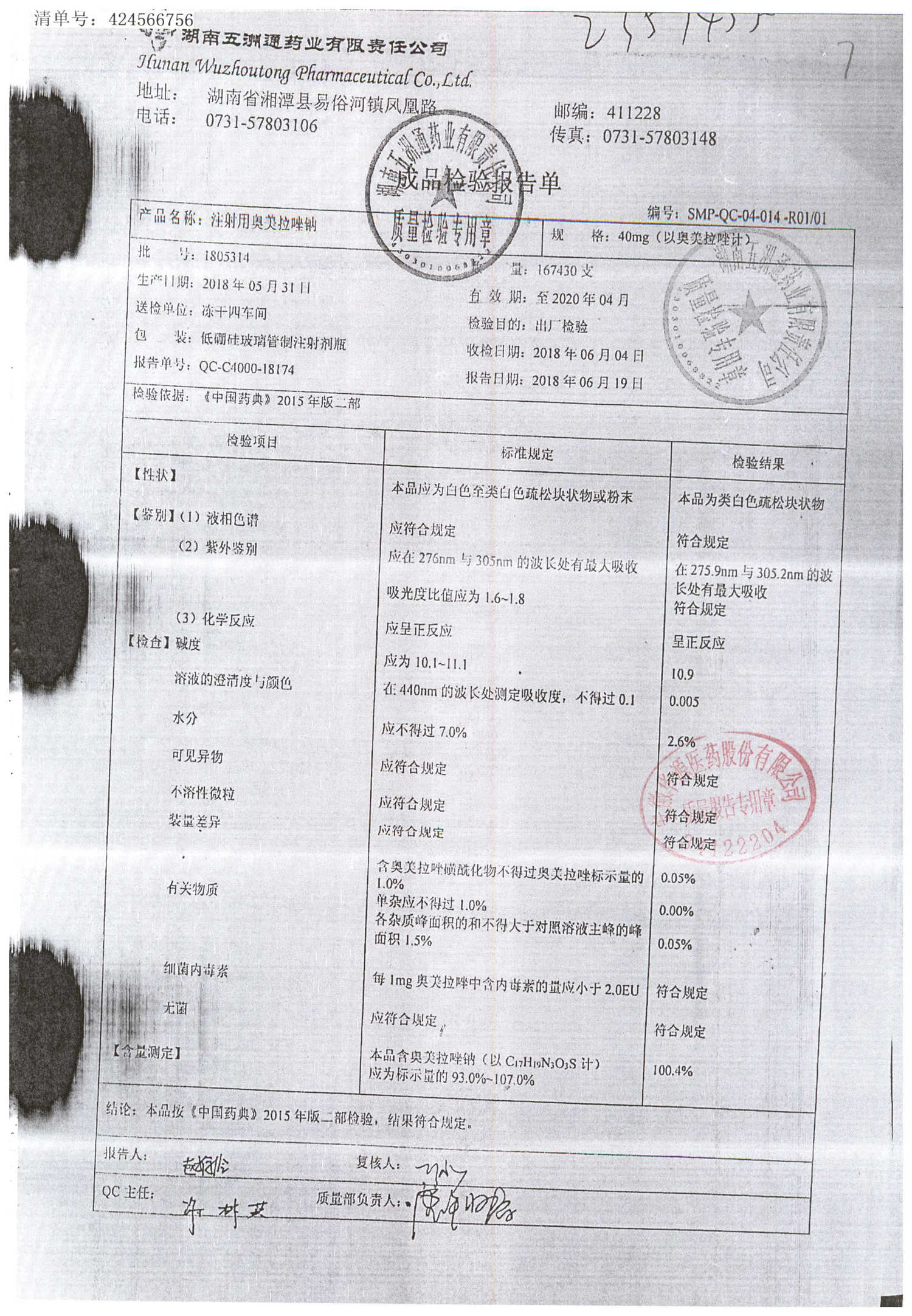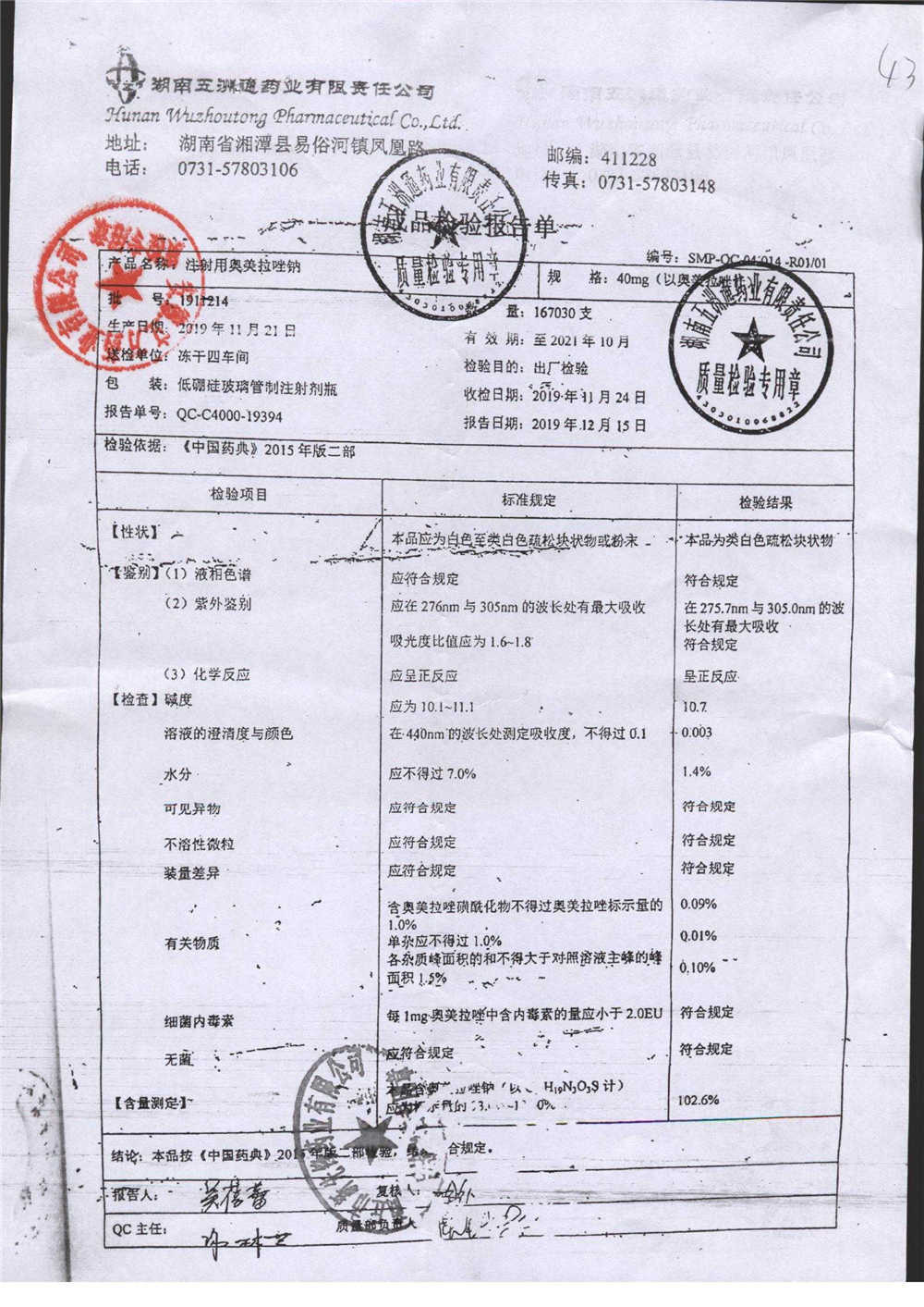 | 注射用奥美拉唑钠 | 40mg | 1904084 | 查看详情 |