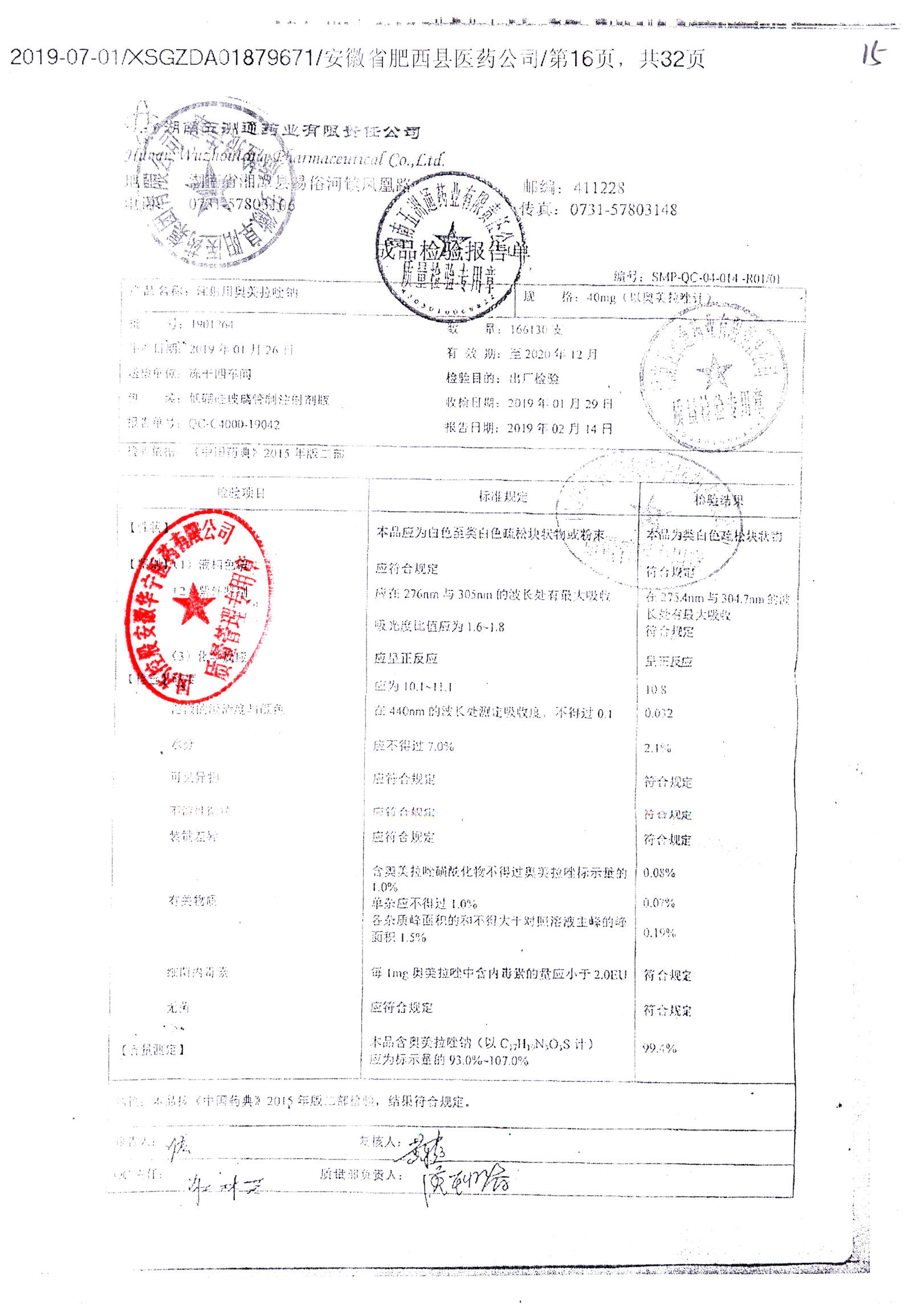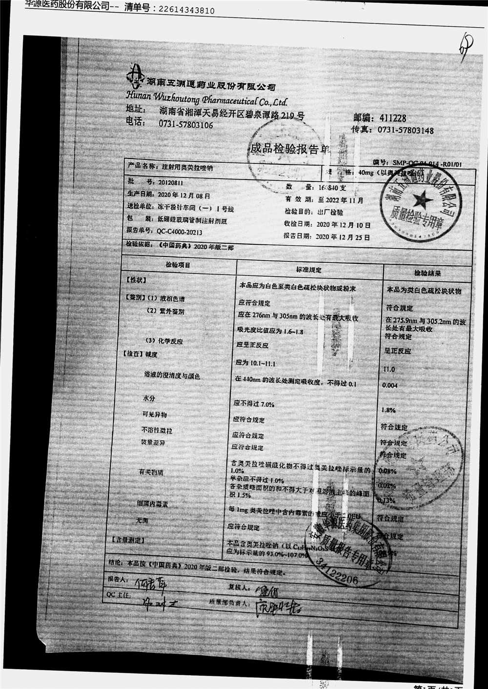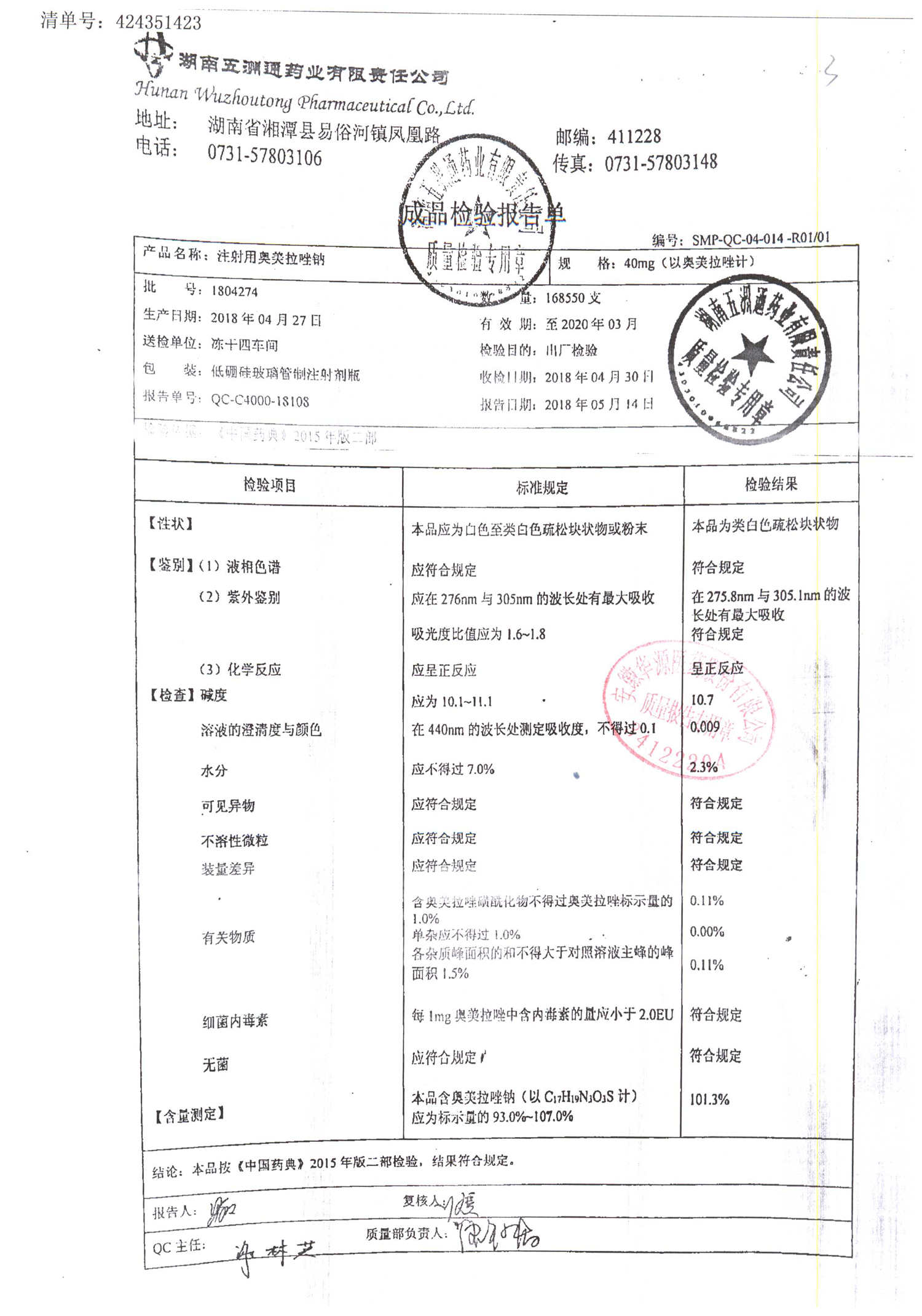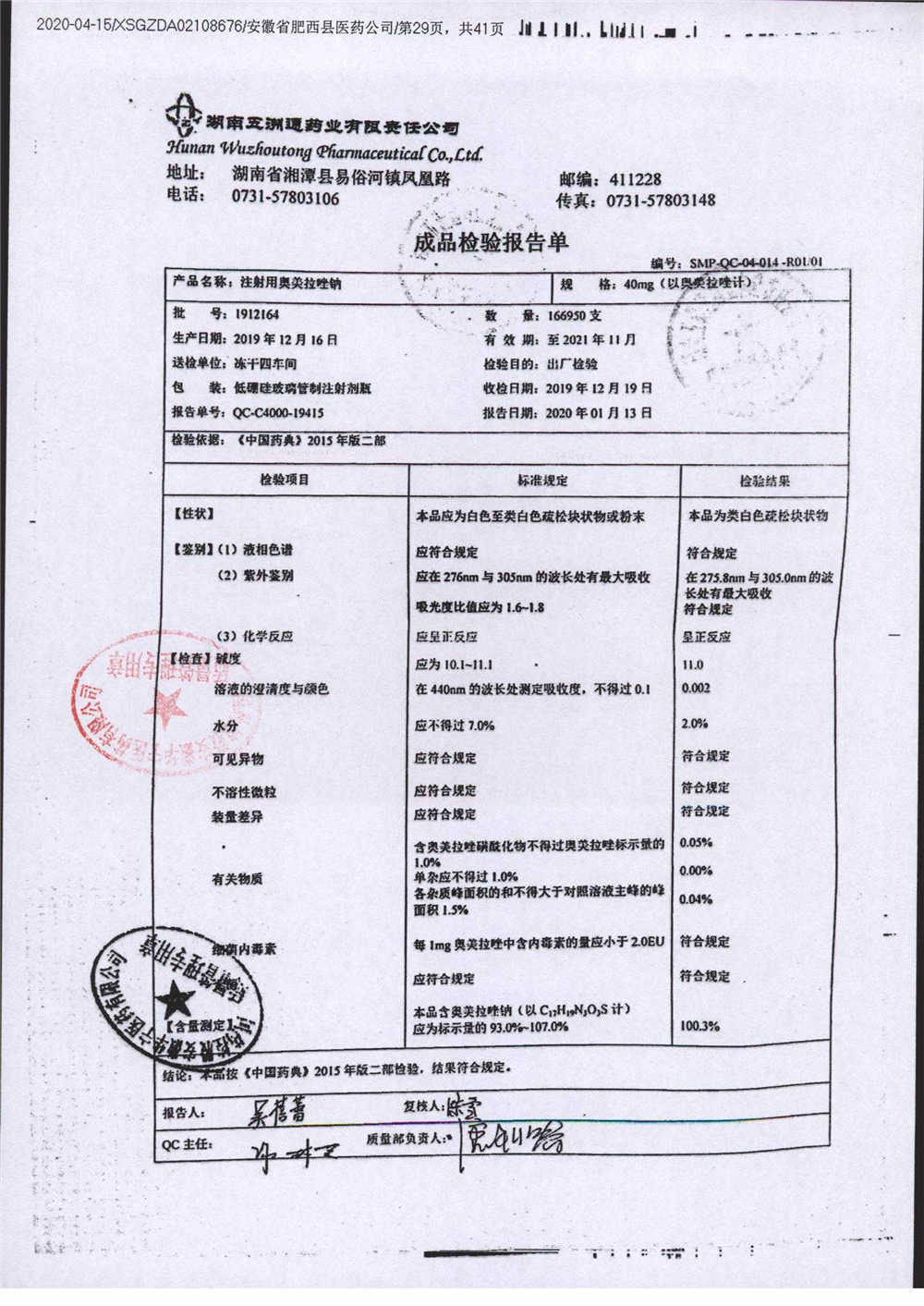 | 注射用奥美拉唑钠 | 40mg | 1904084 | 查看详情 |