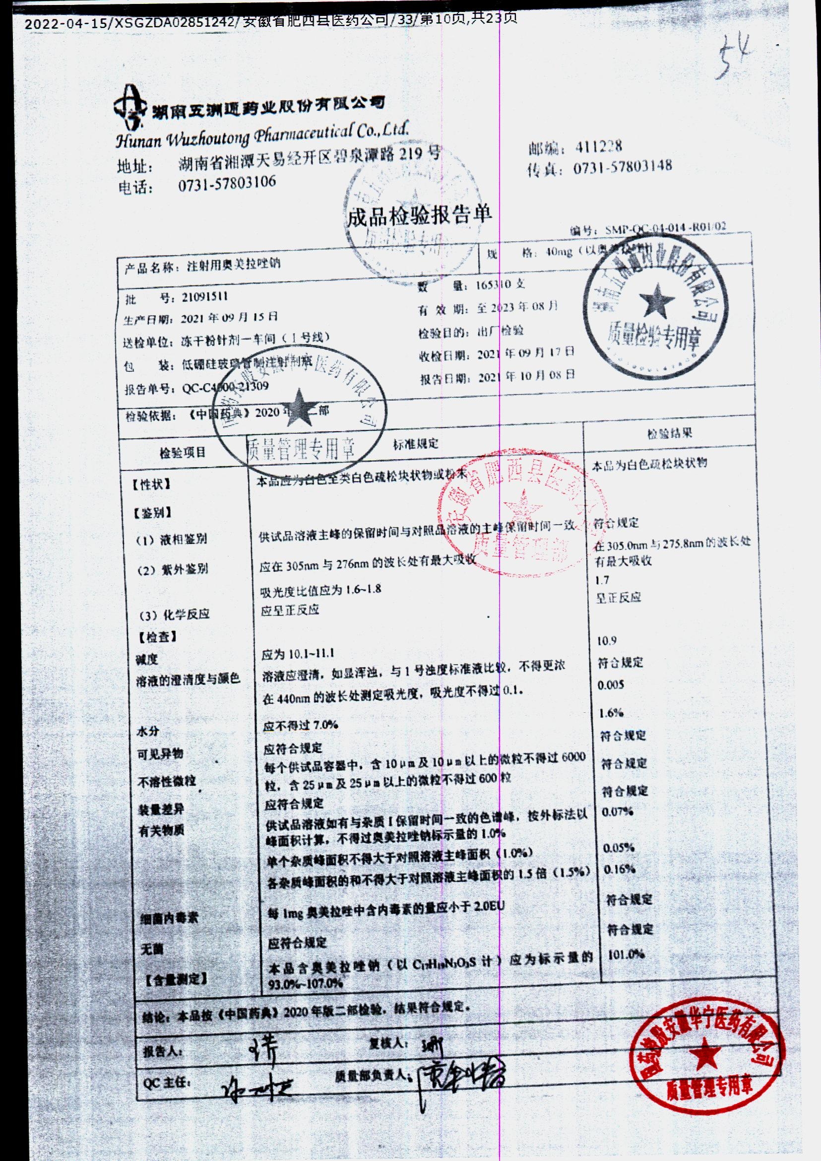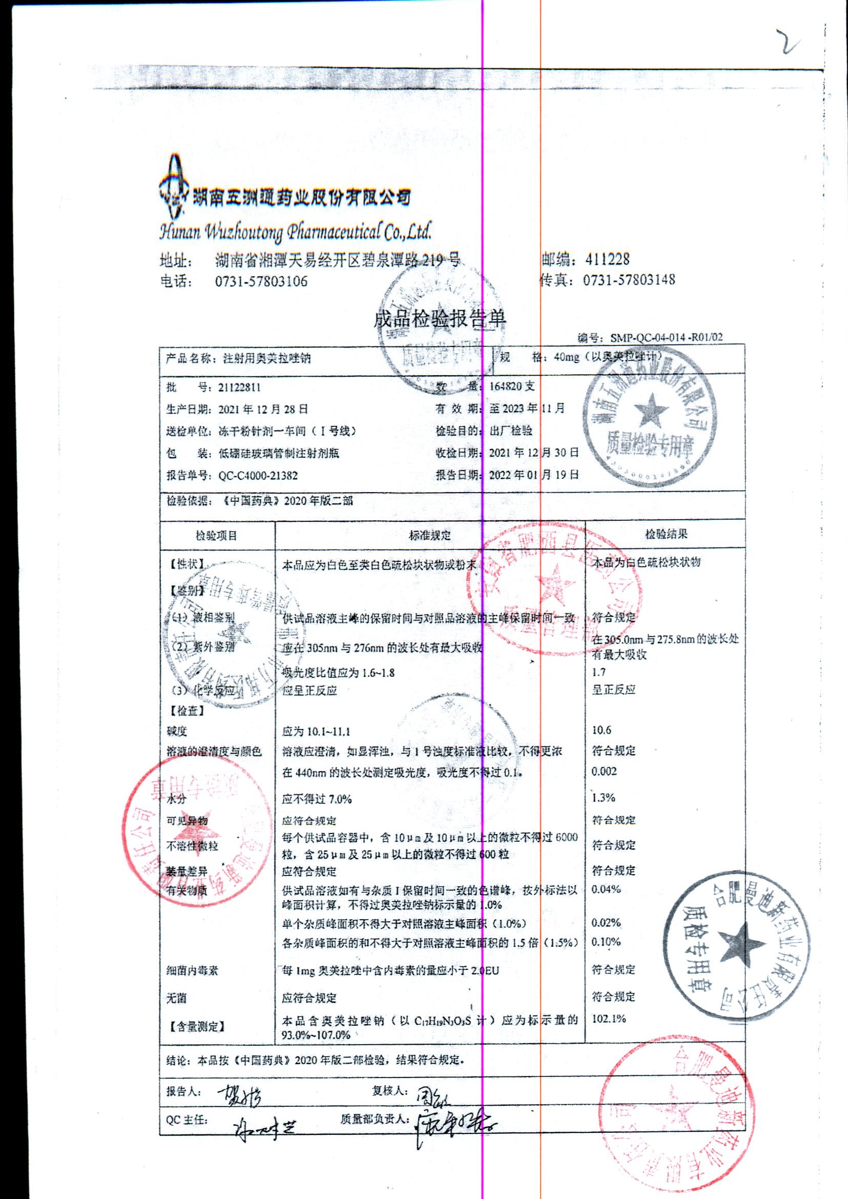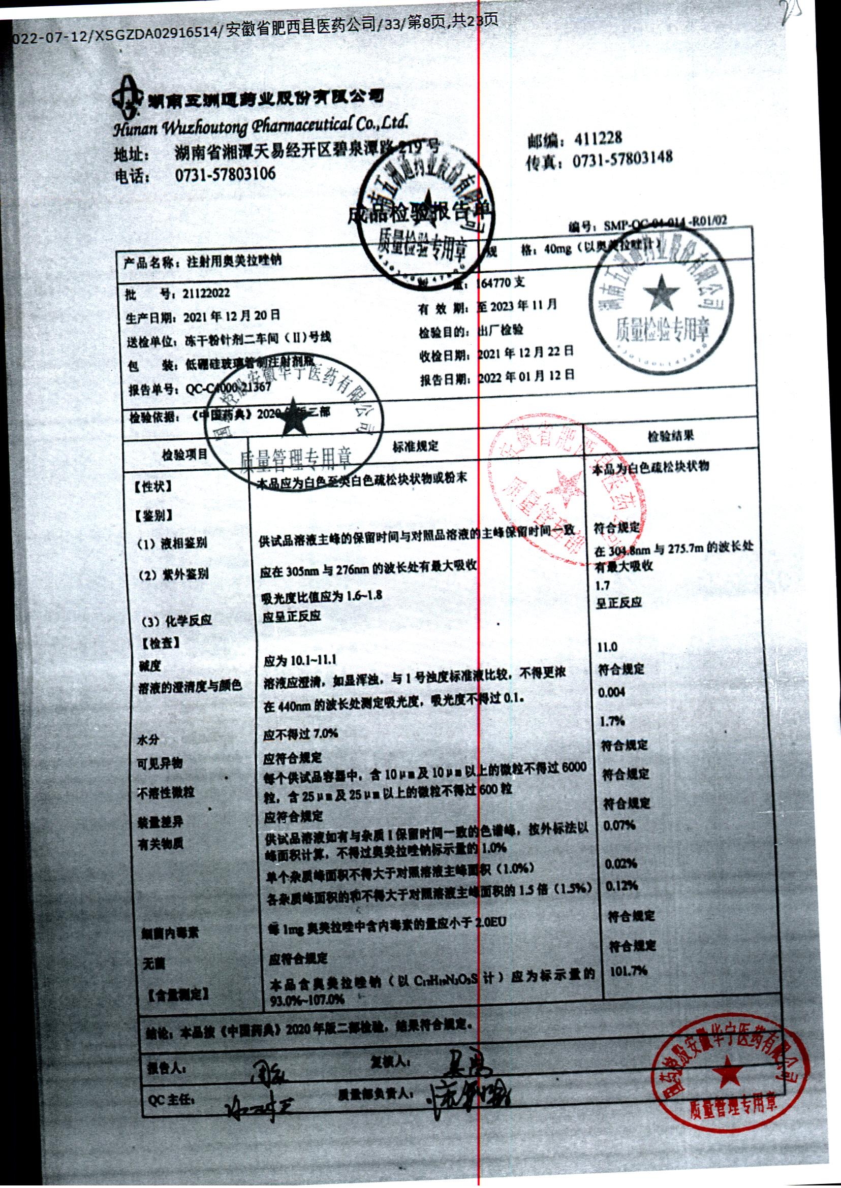 | 注射用奥美拉唑钠 | 40mg | 21122022 | 查看详情 |
