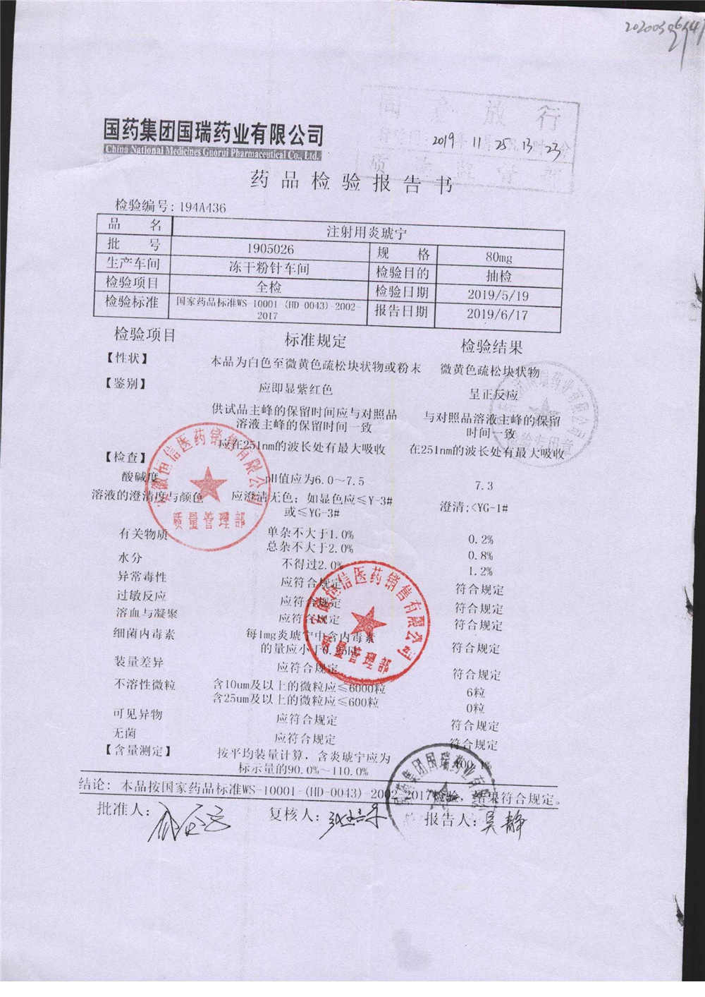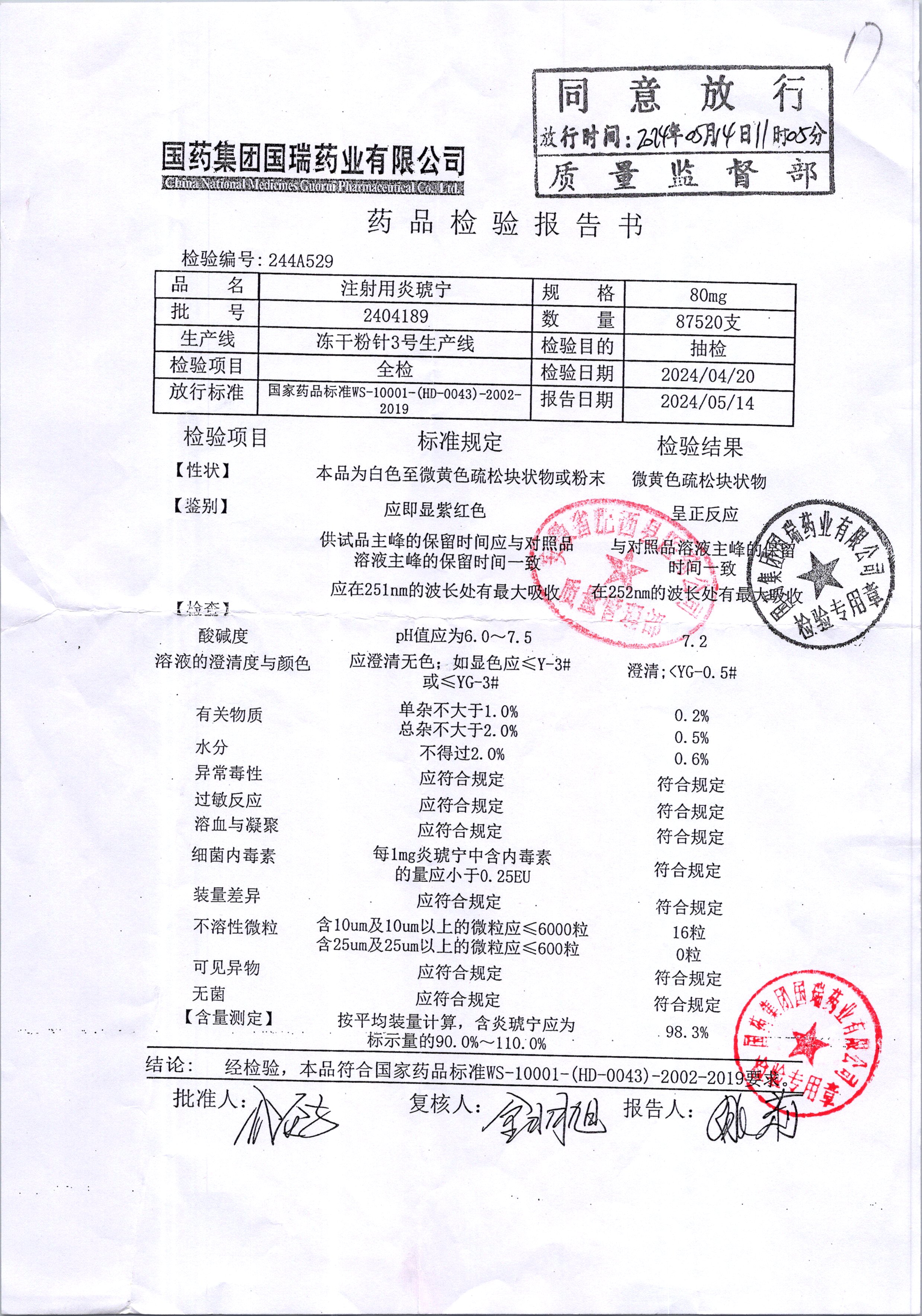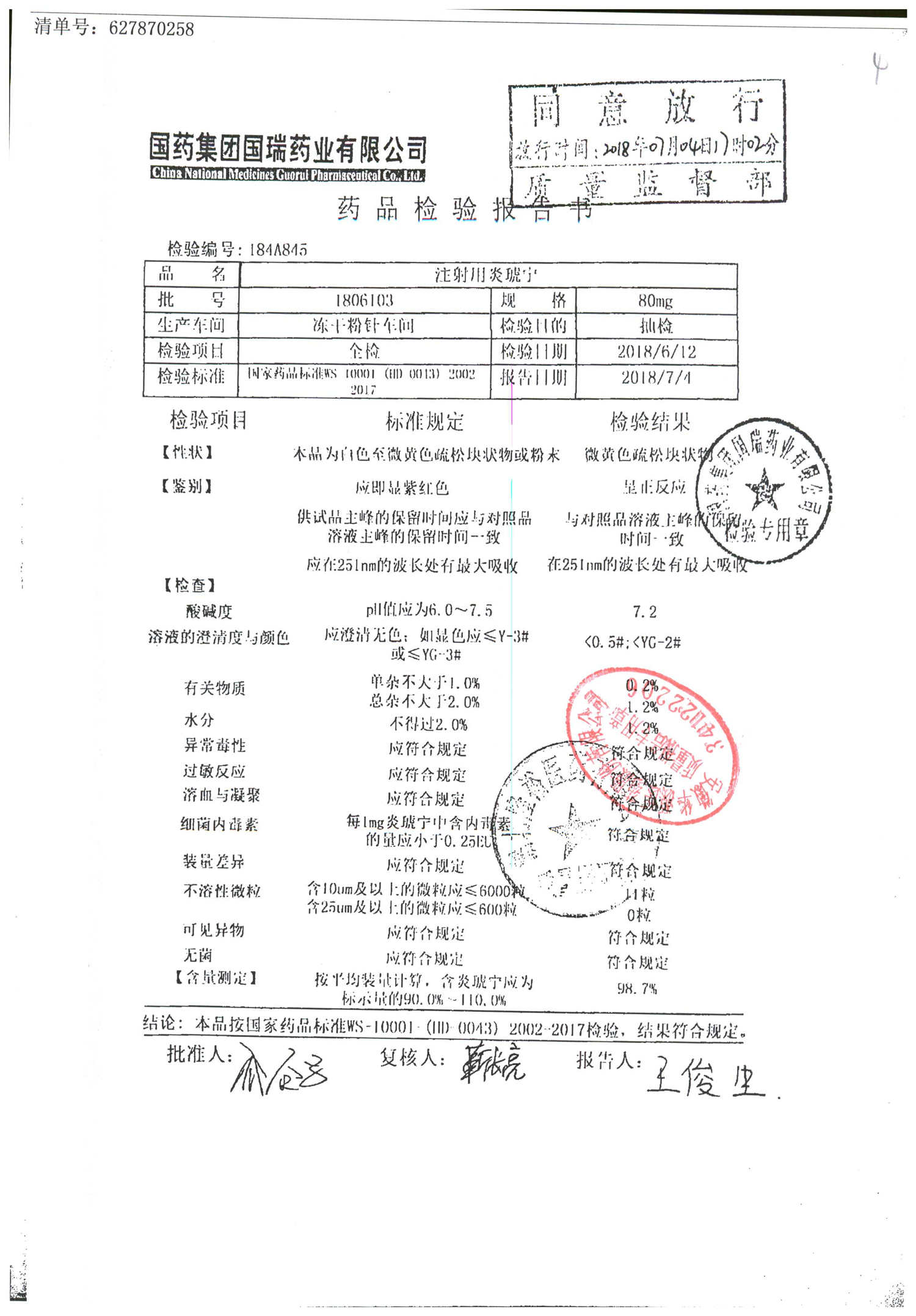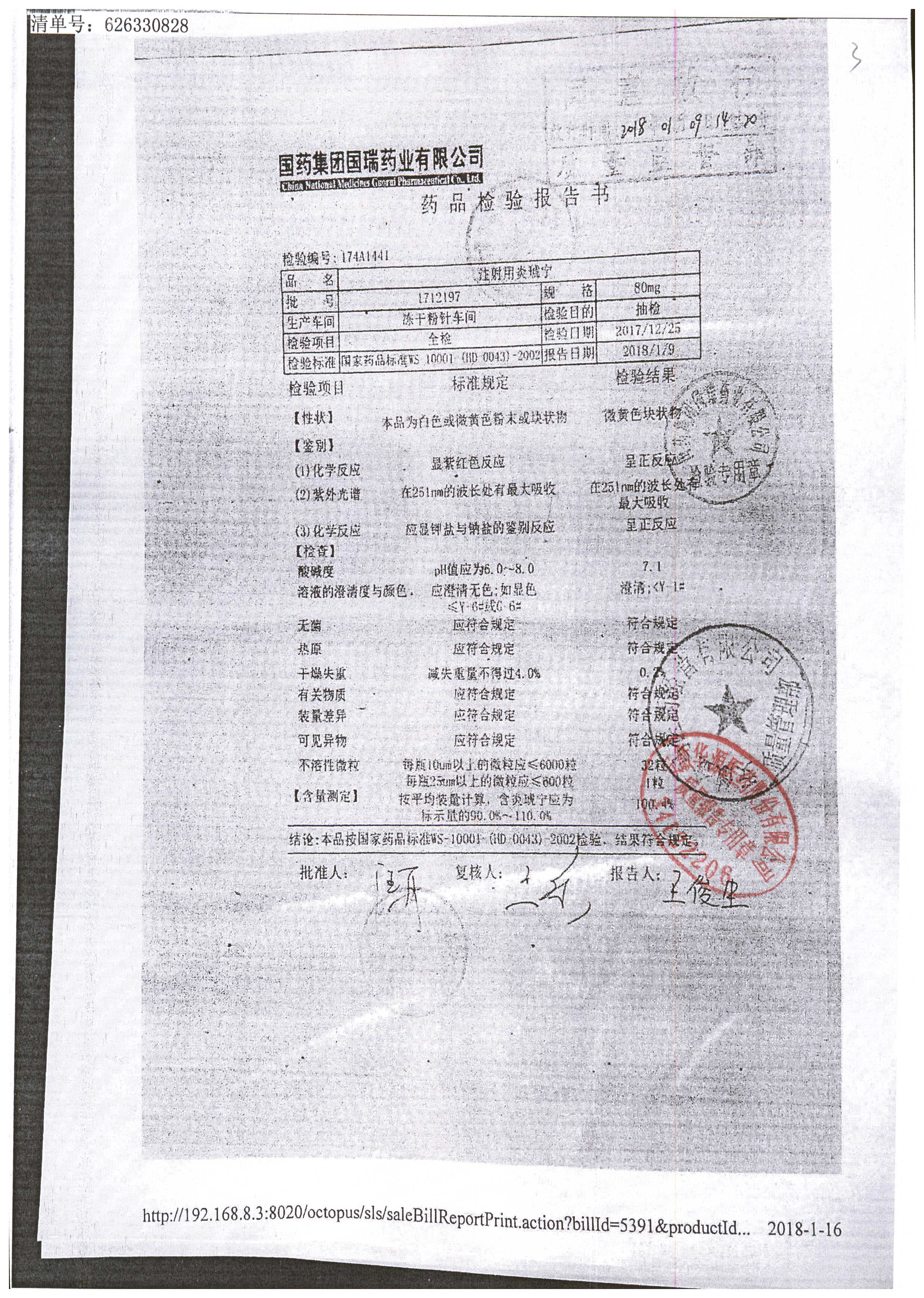 | 名称 | 规格 | 批号 | 药检报告 |