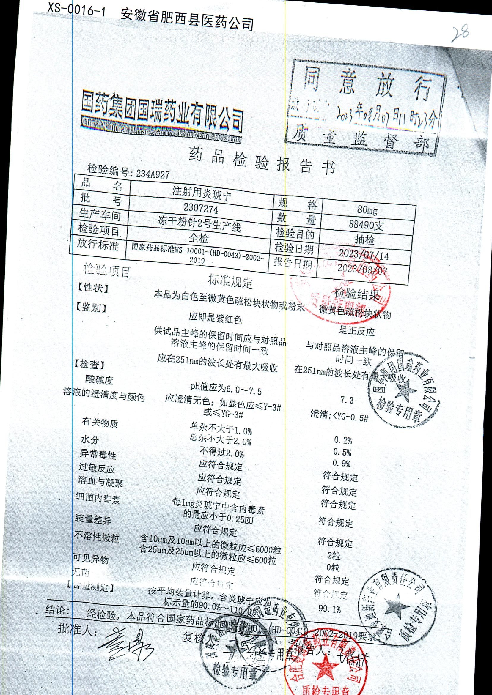 | 注射用炎琥宁 | 80mg | 1806103 | 查看详情 |