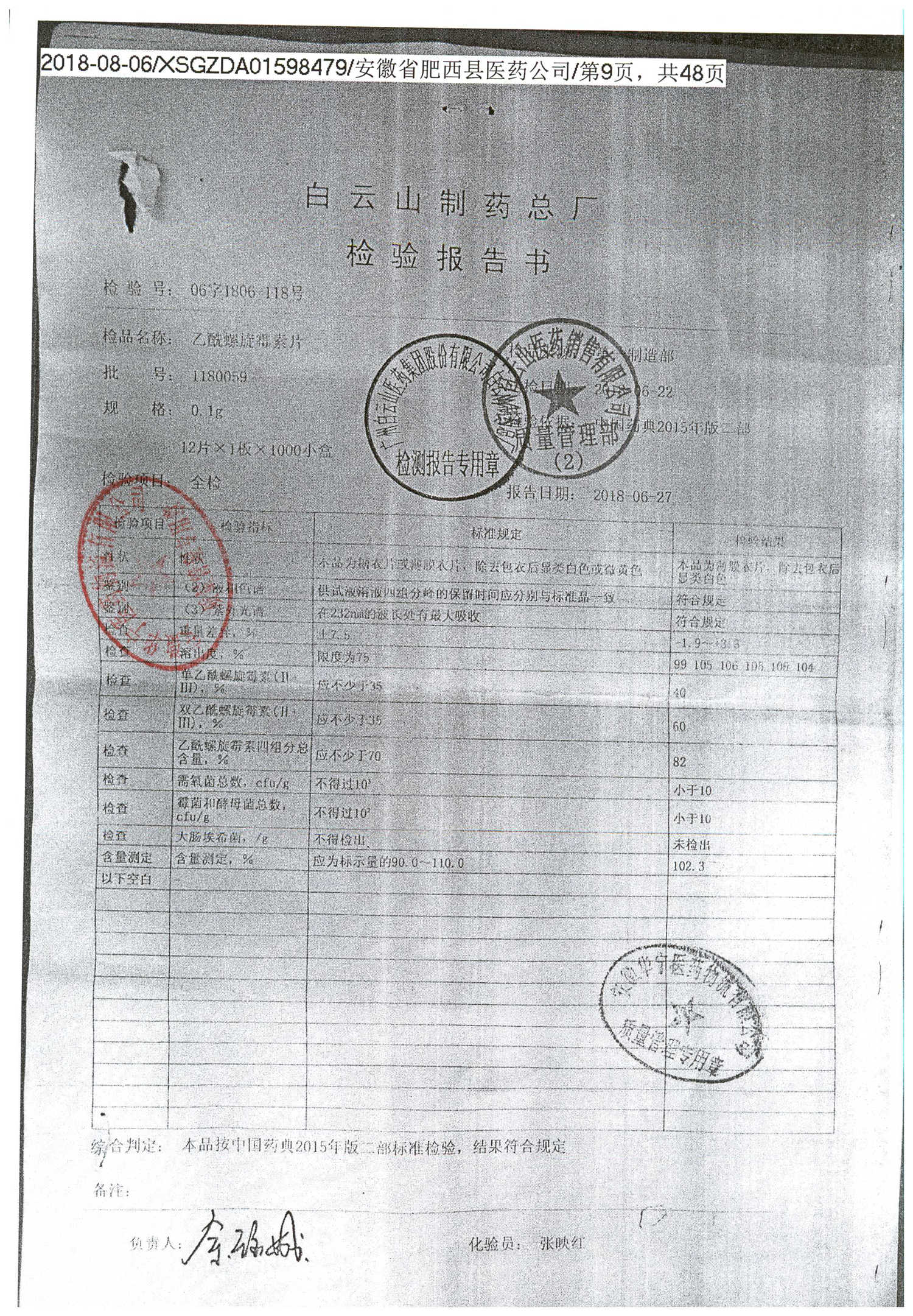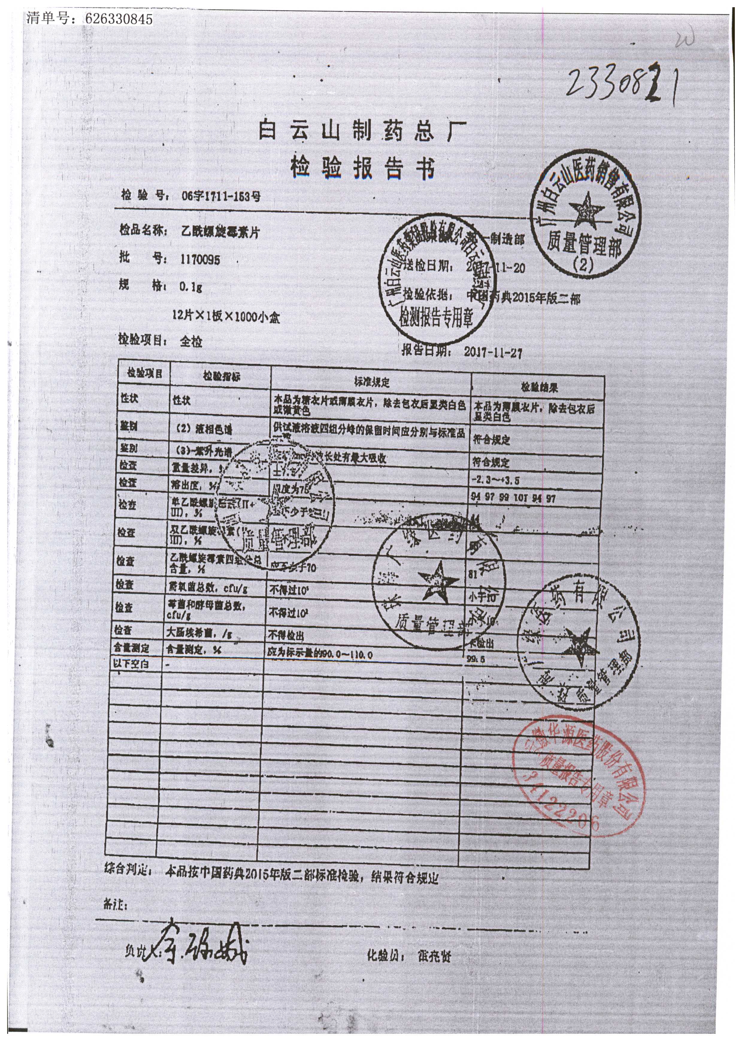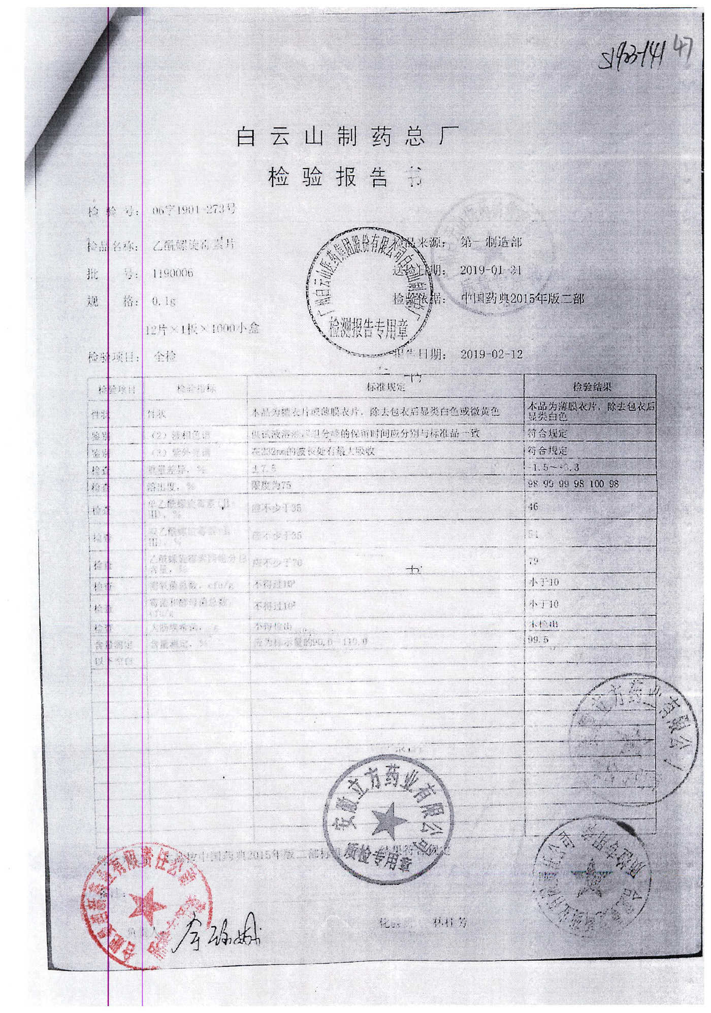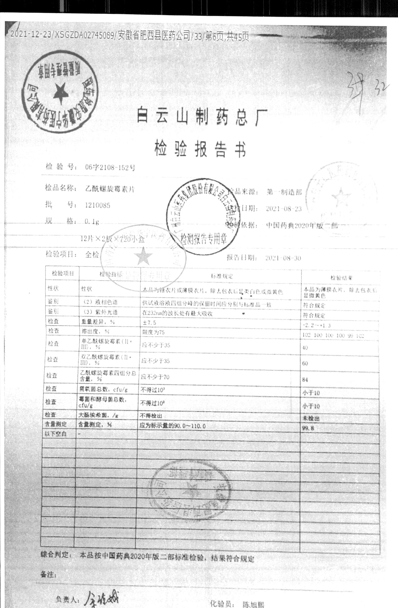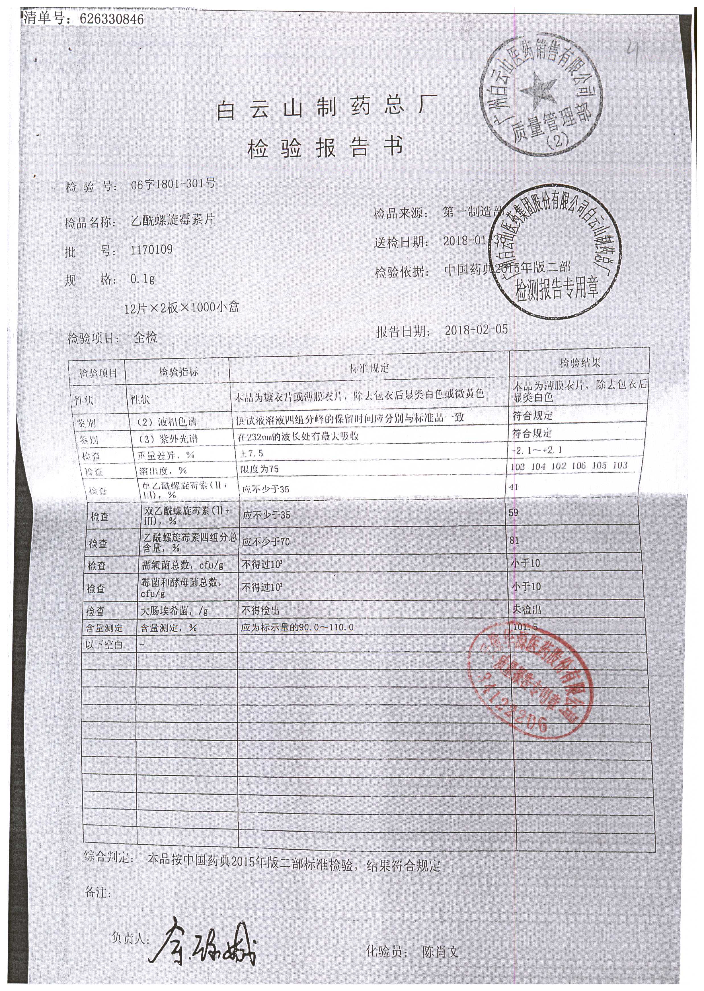 | 名称 | 规格 | 批号 | 药检报告 |