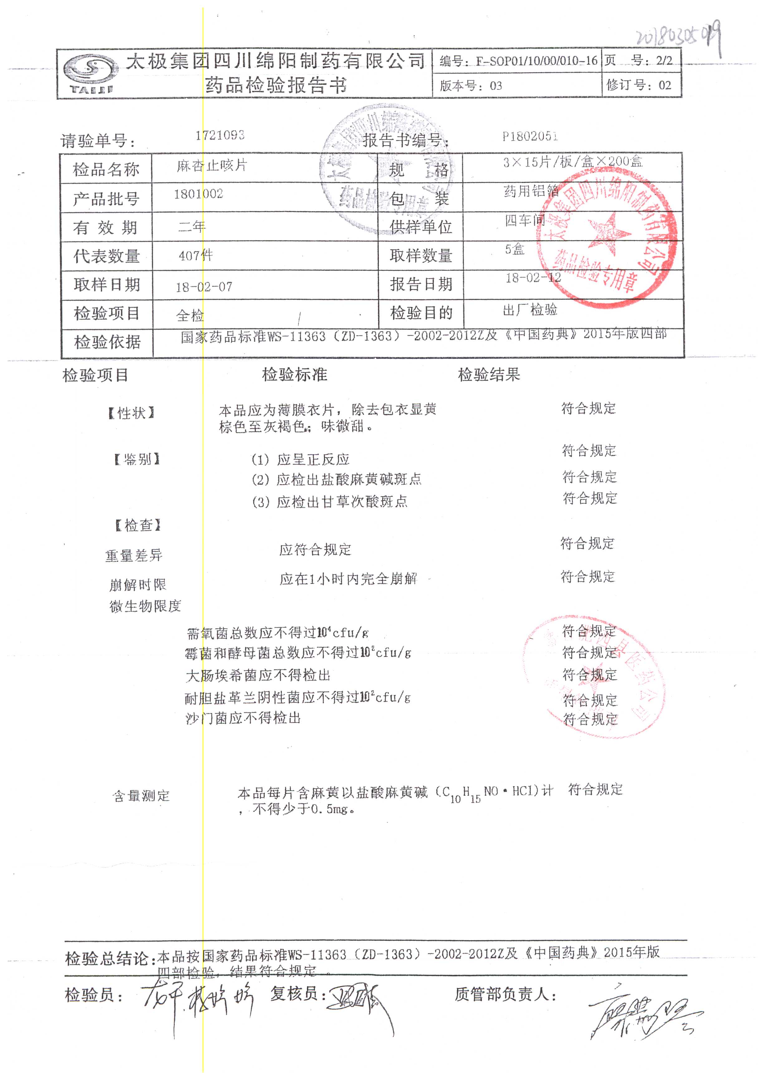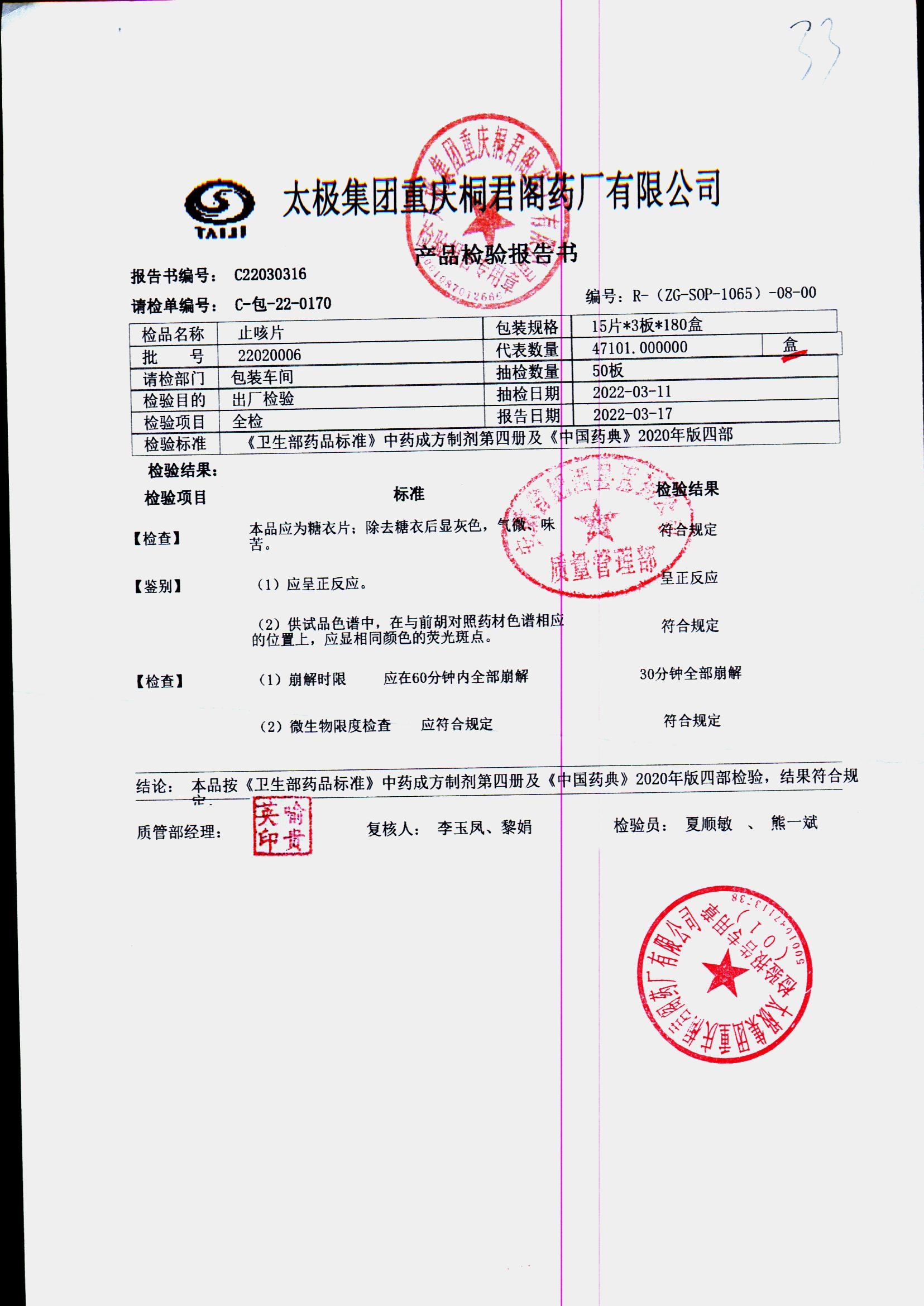 药检报告