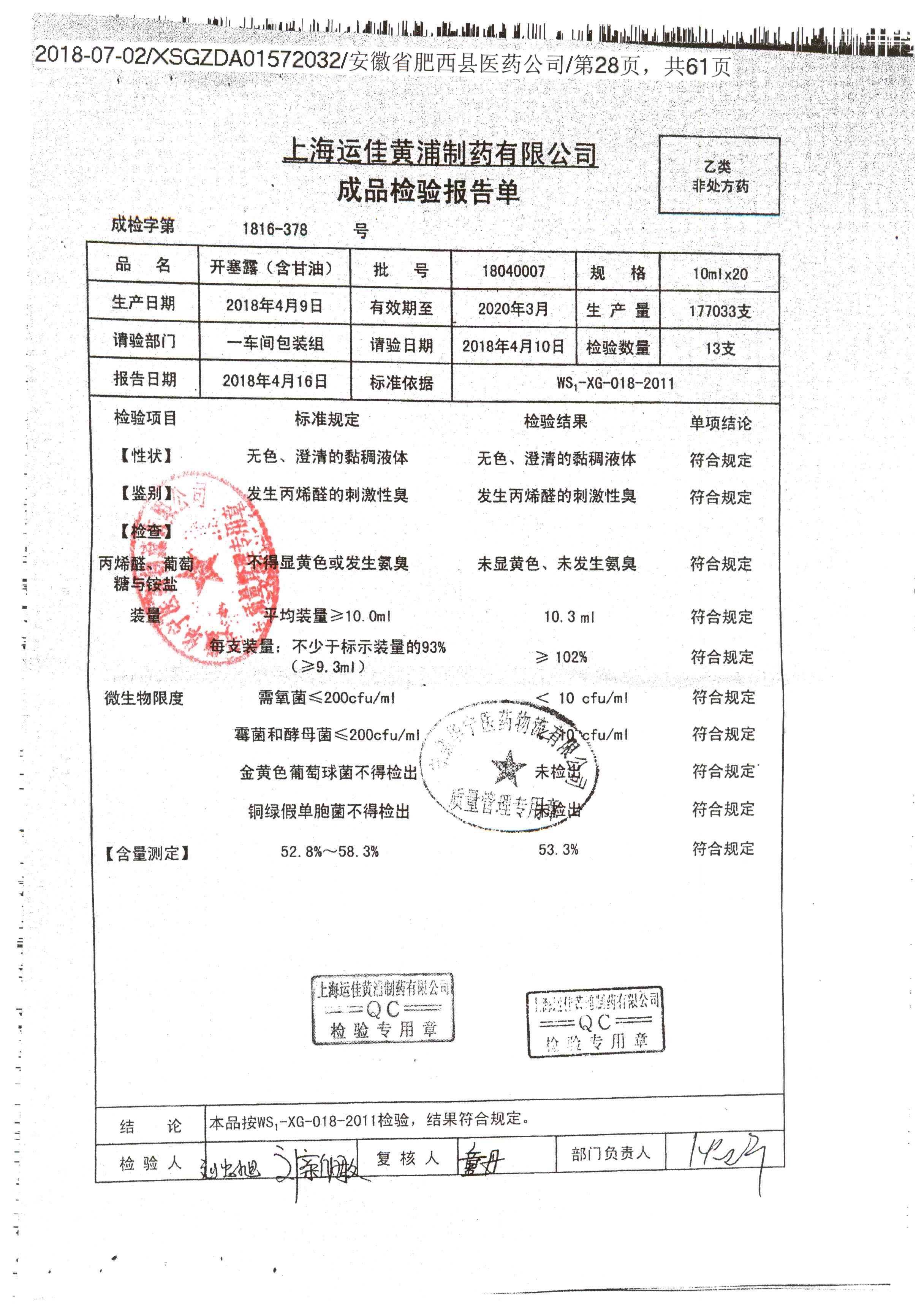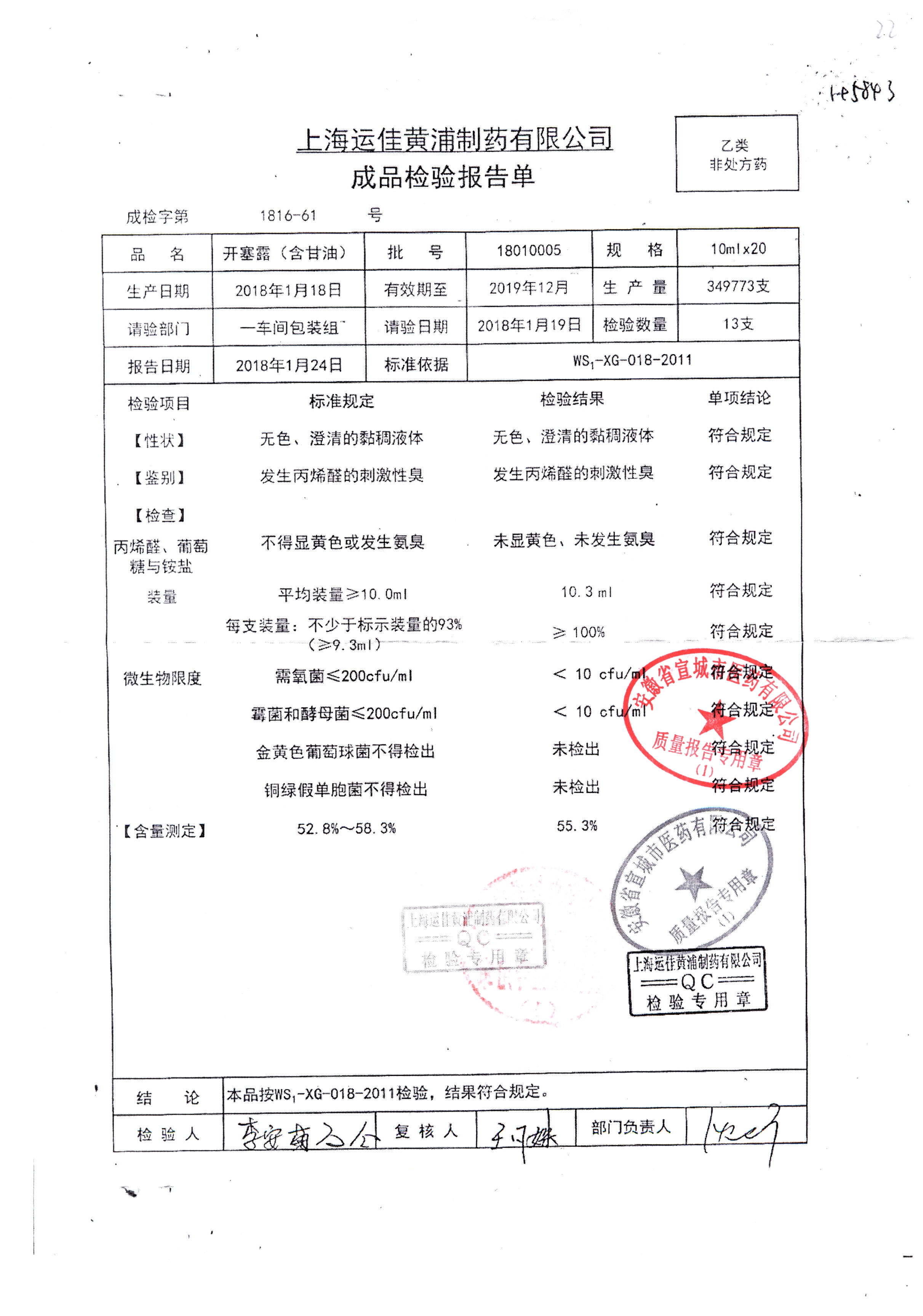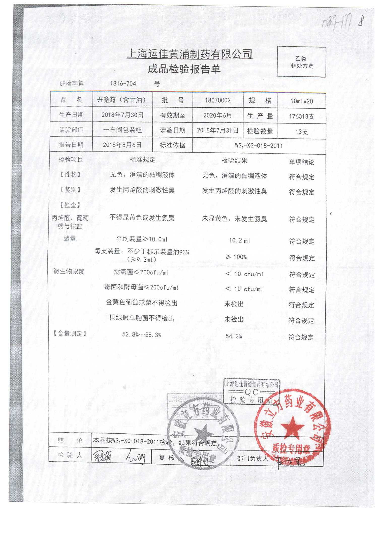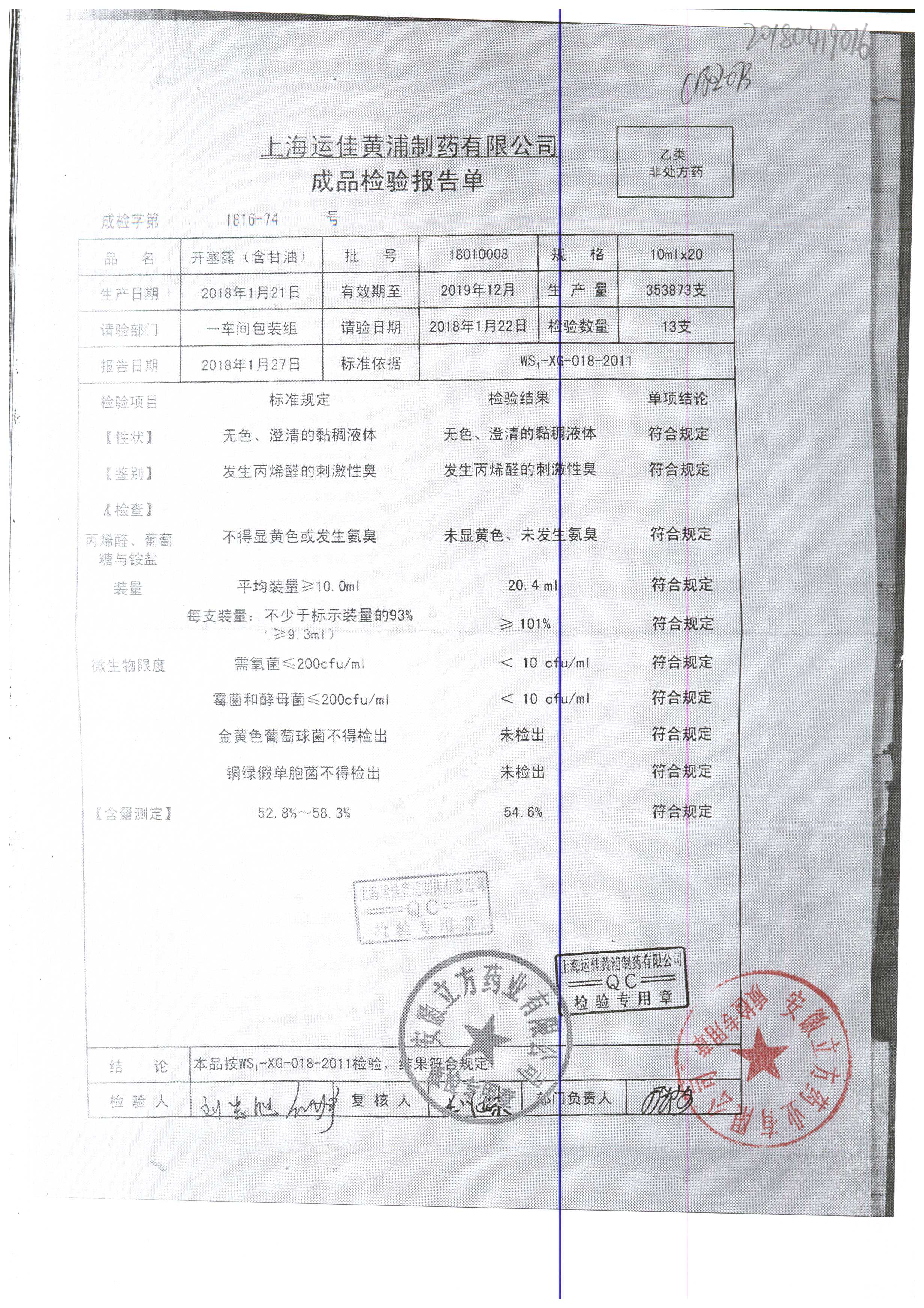 | 名称 | 规格 | 批号 | 药检报告 |