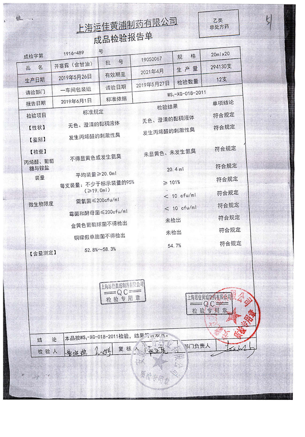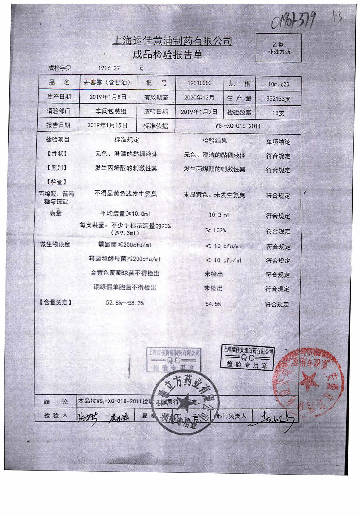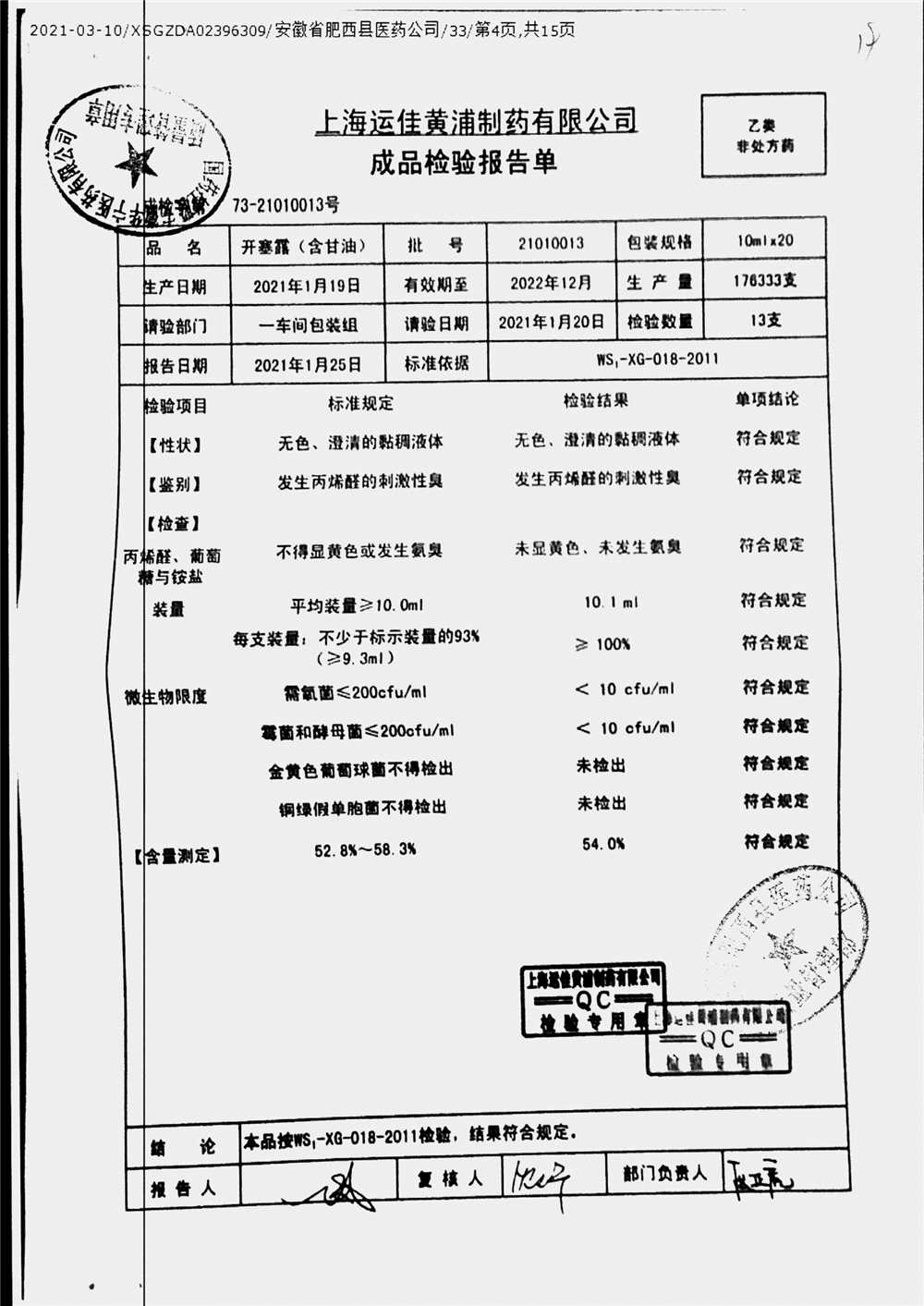 | 名称 | 规格 | 批号 | 药检报告 |