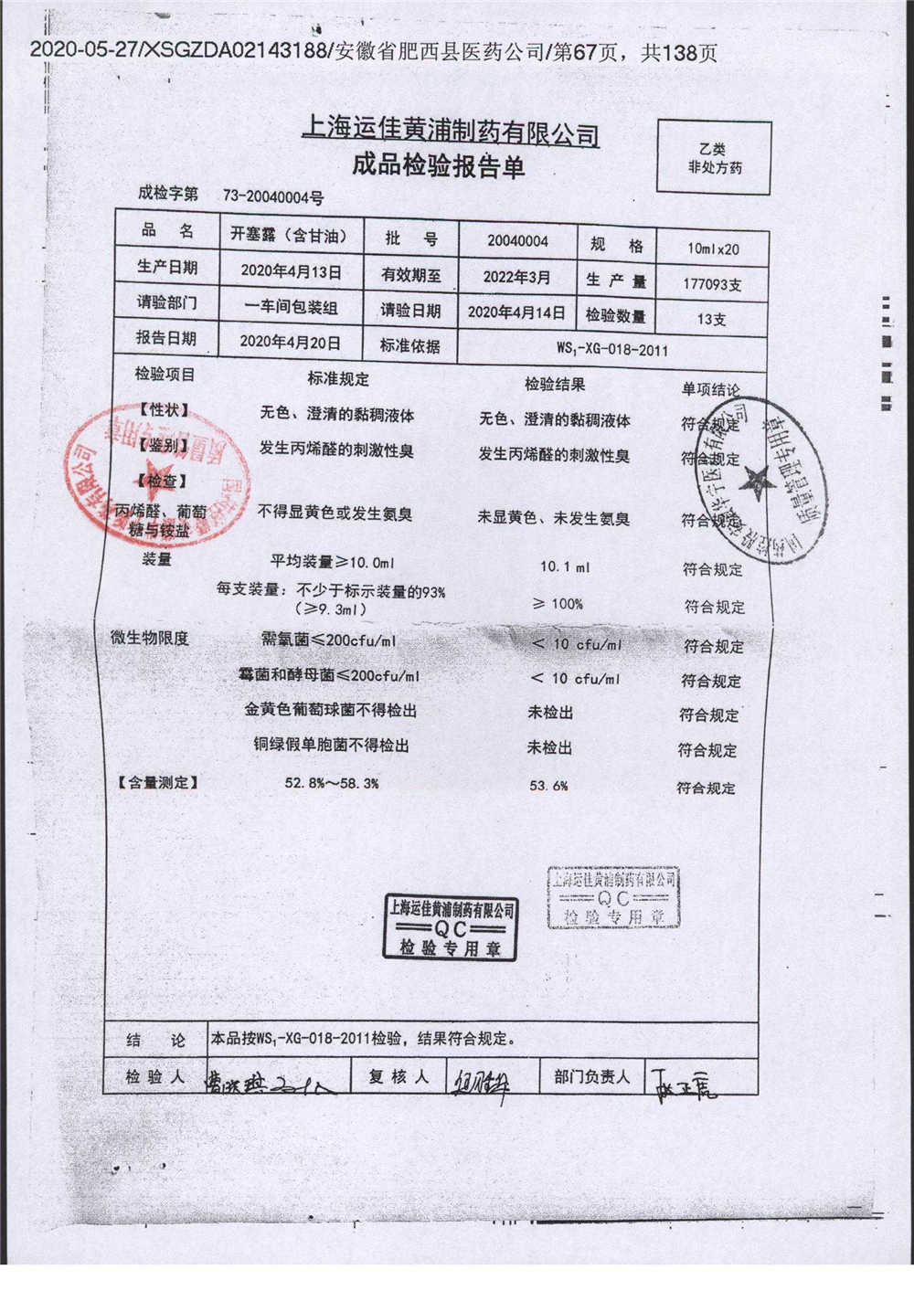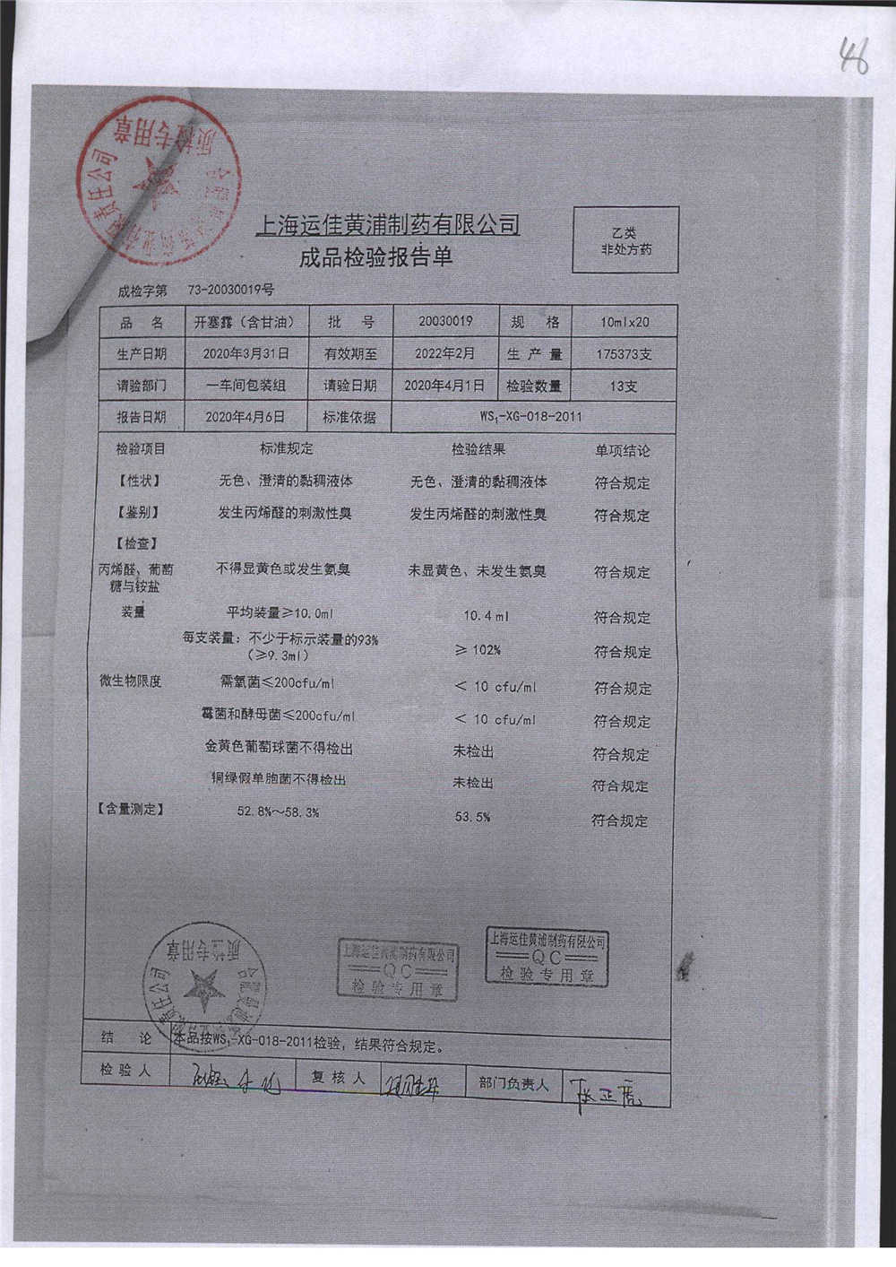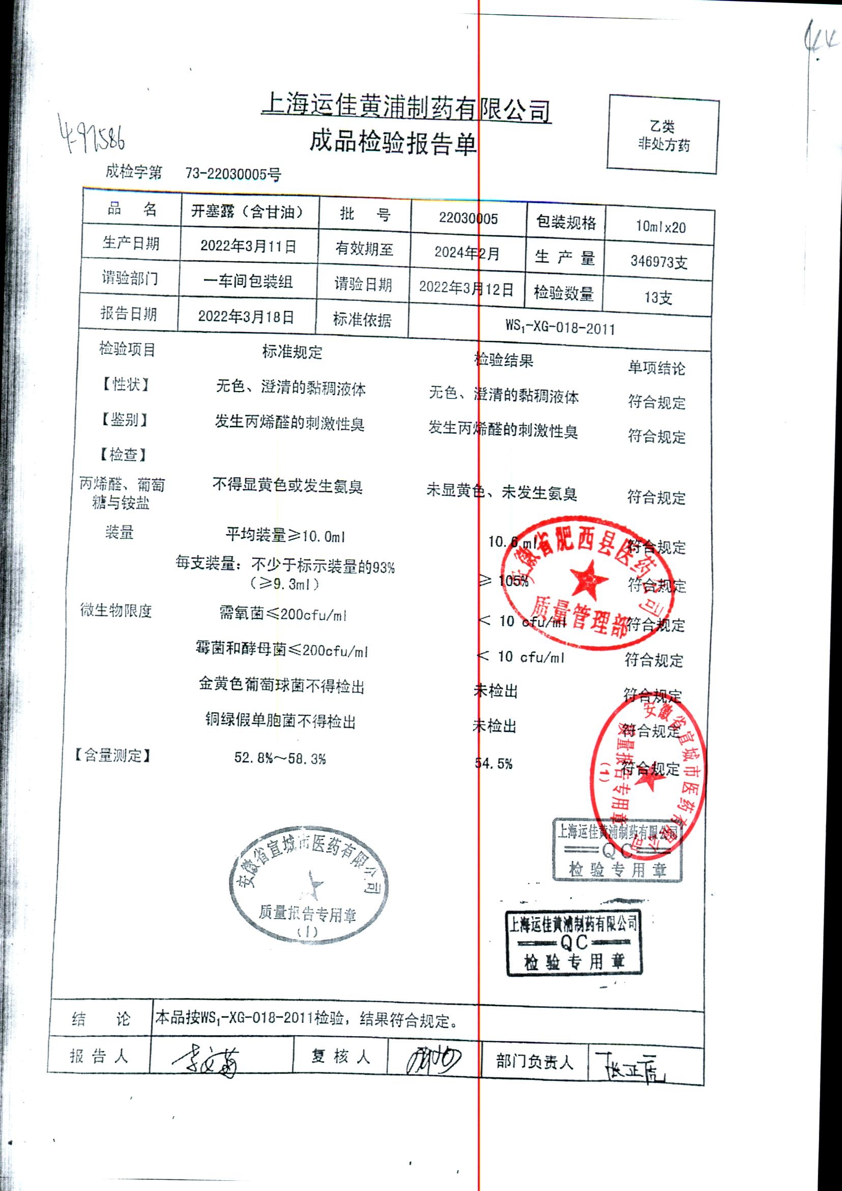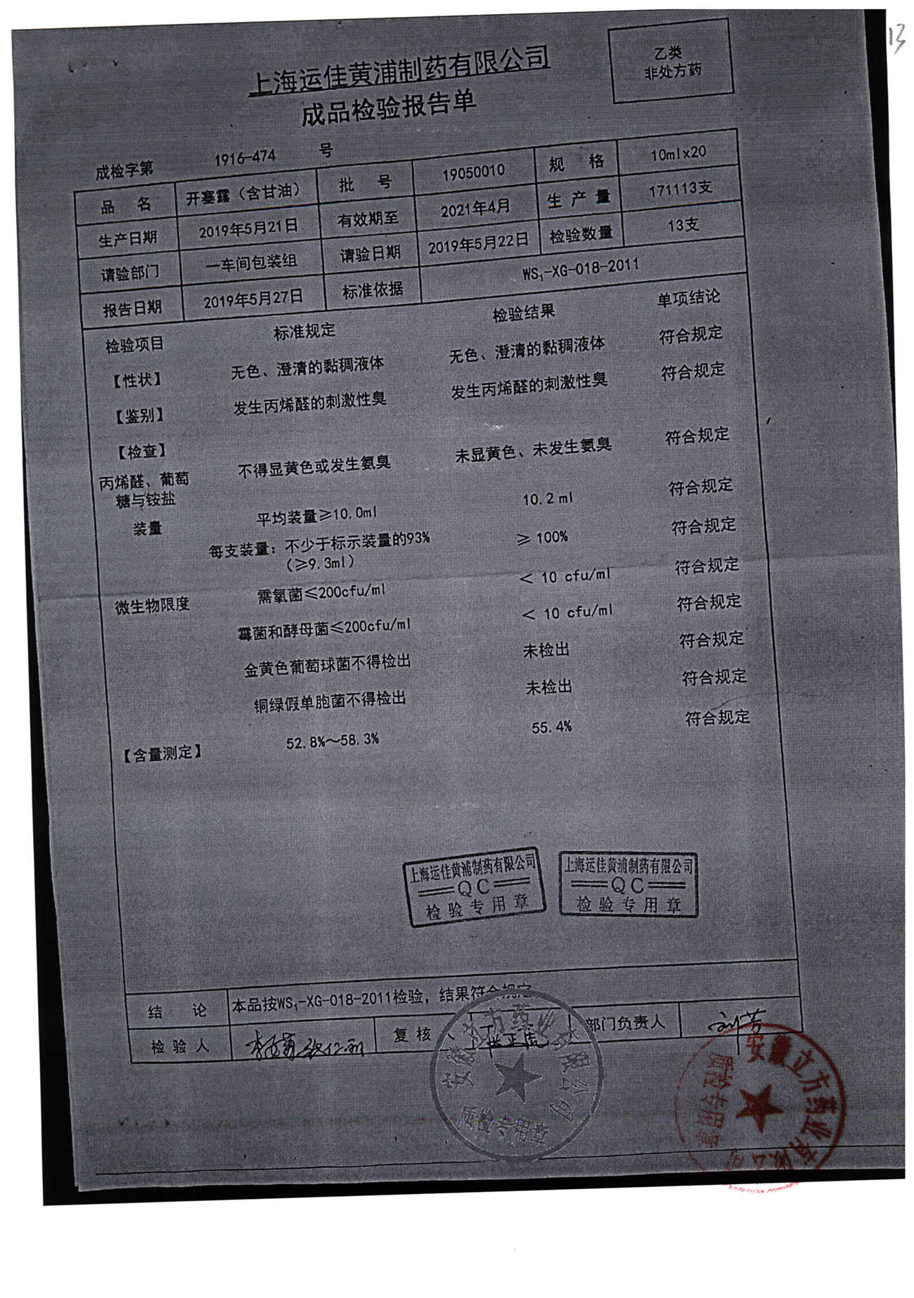 | 名称 | 规格 | 批号 | 药检报告 |