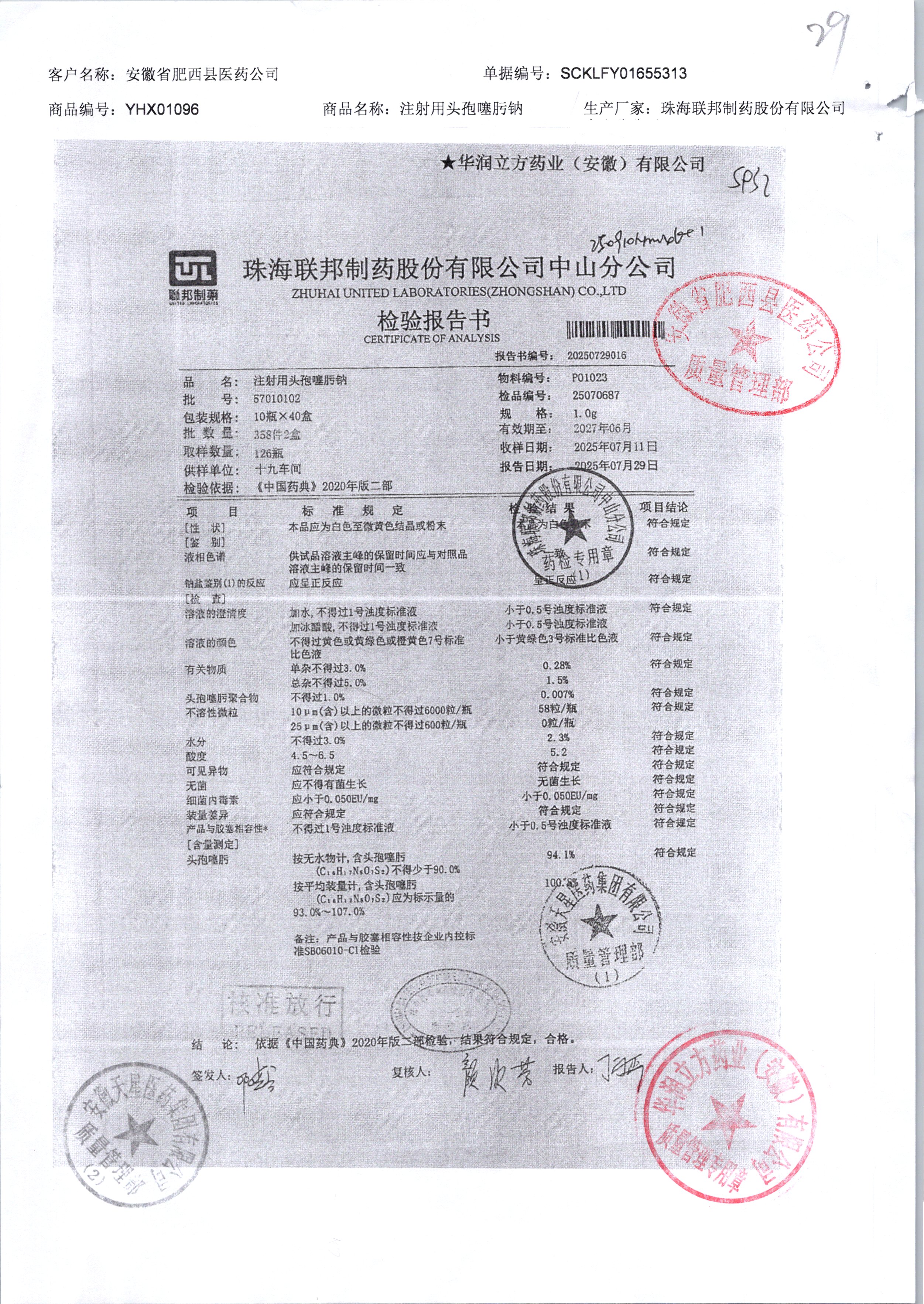 | 注射用头孢噻肟钠 | 1.0g | 18010109 | 查看详情 |