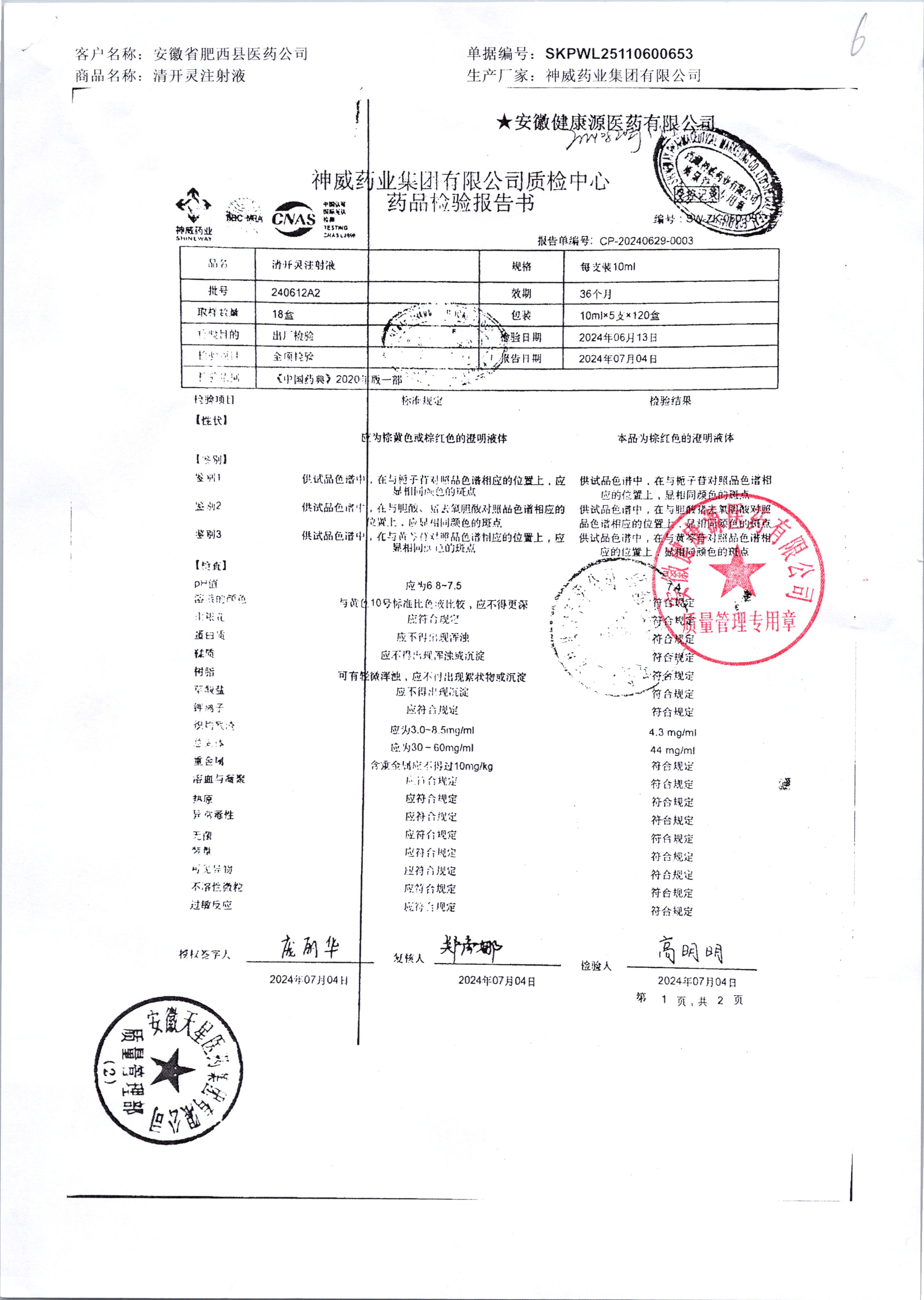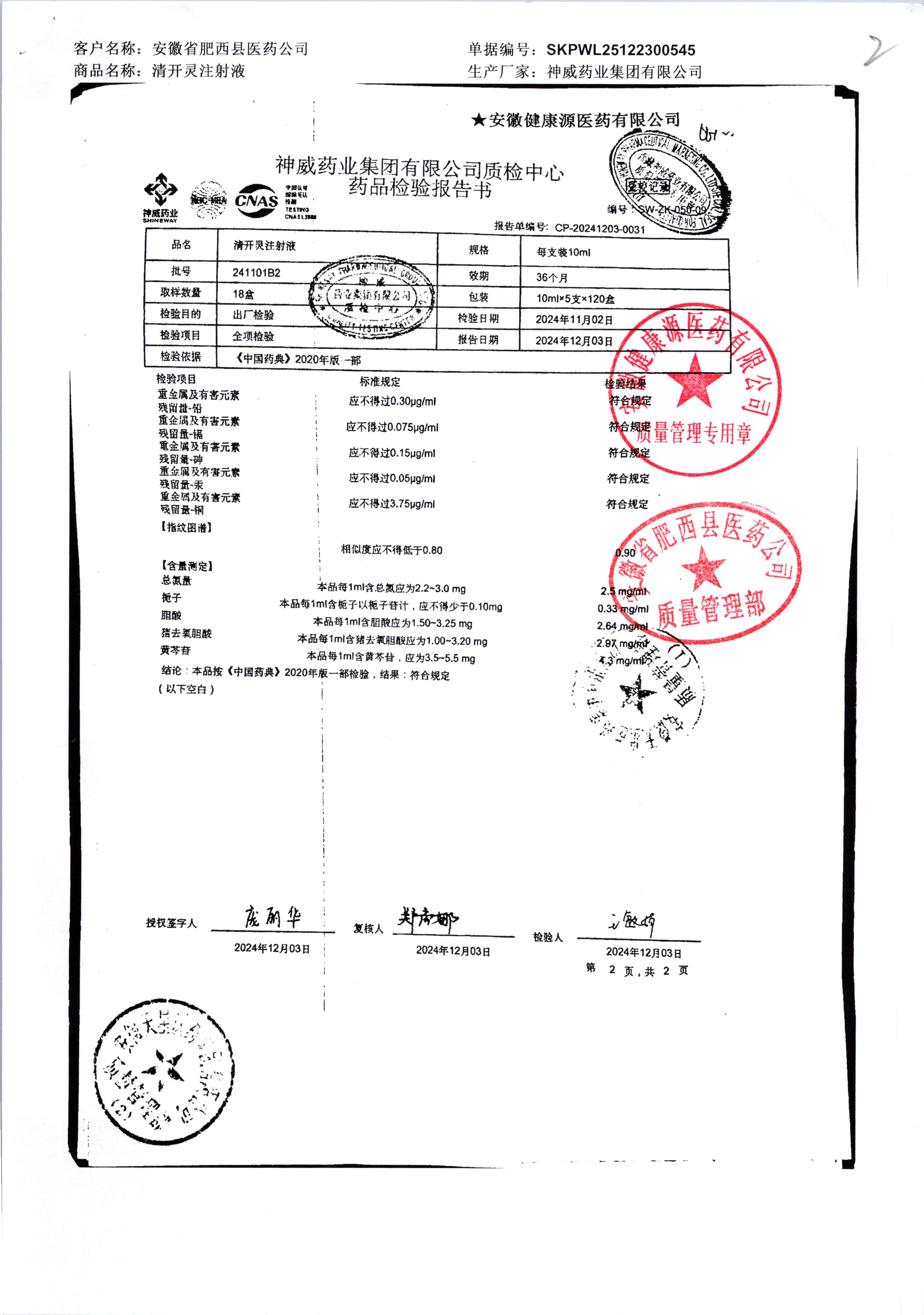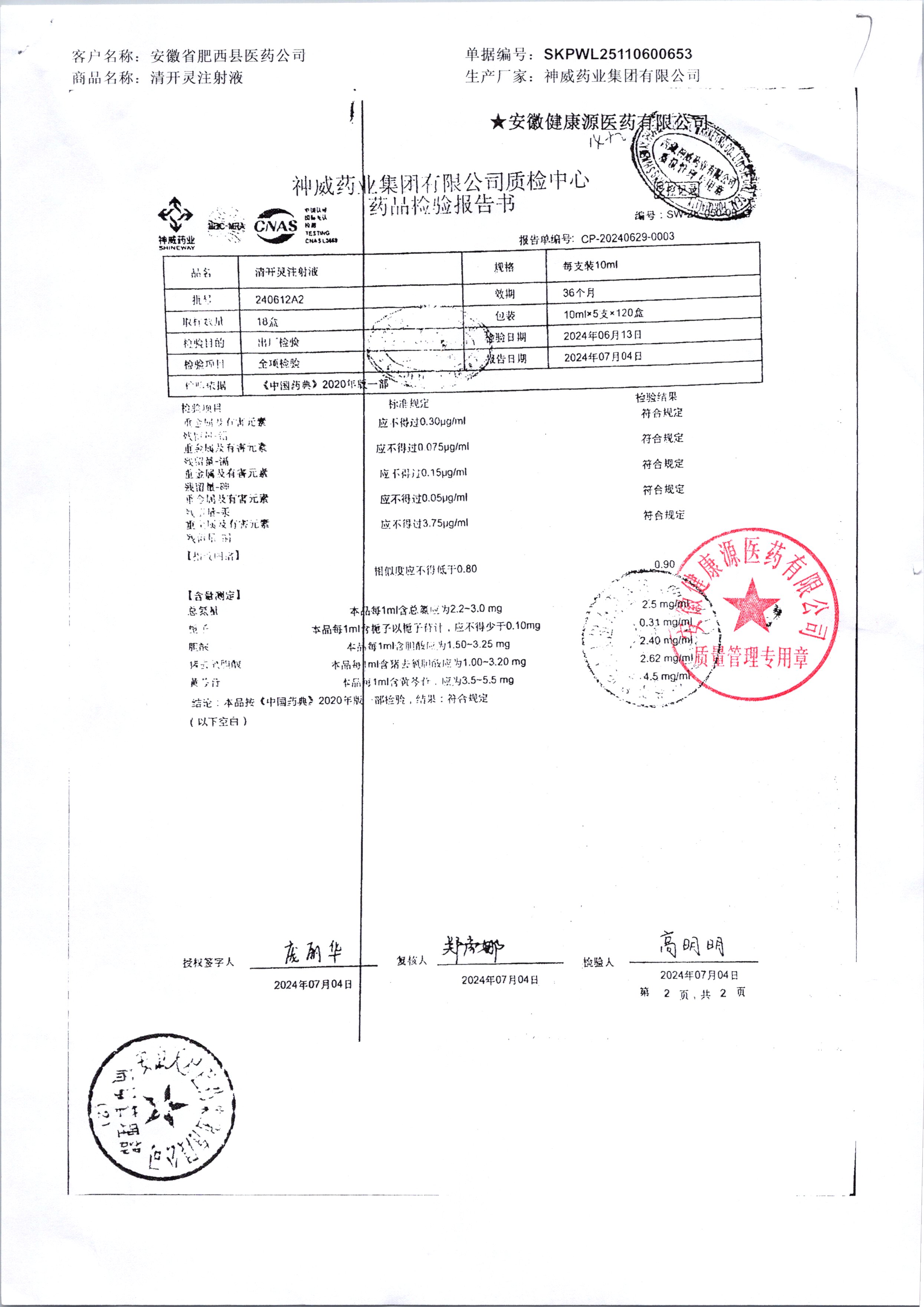 | 清开灵注射液 | 10ml*5 | 210617A2(2/2) | 查看详情 |