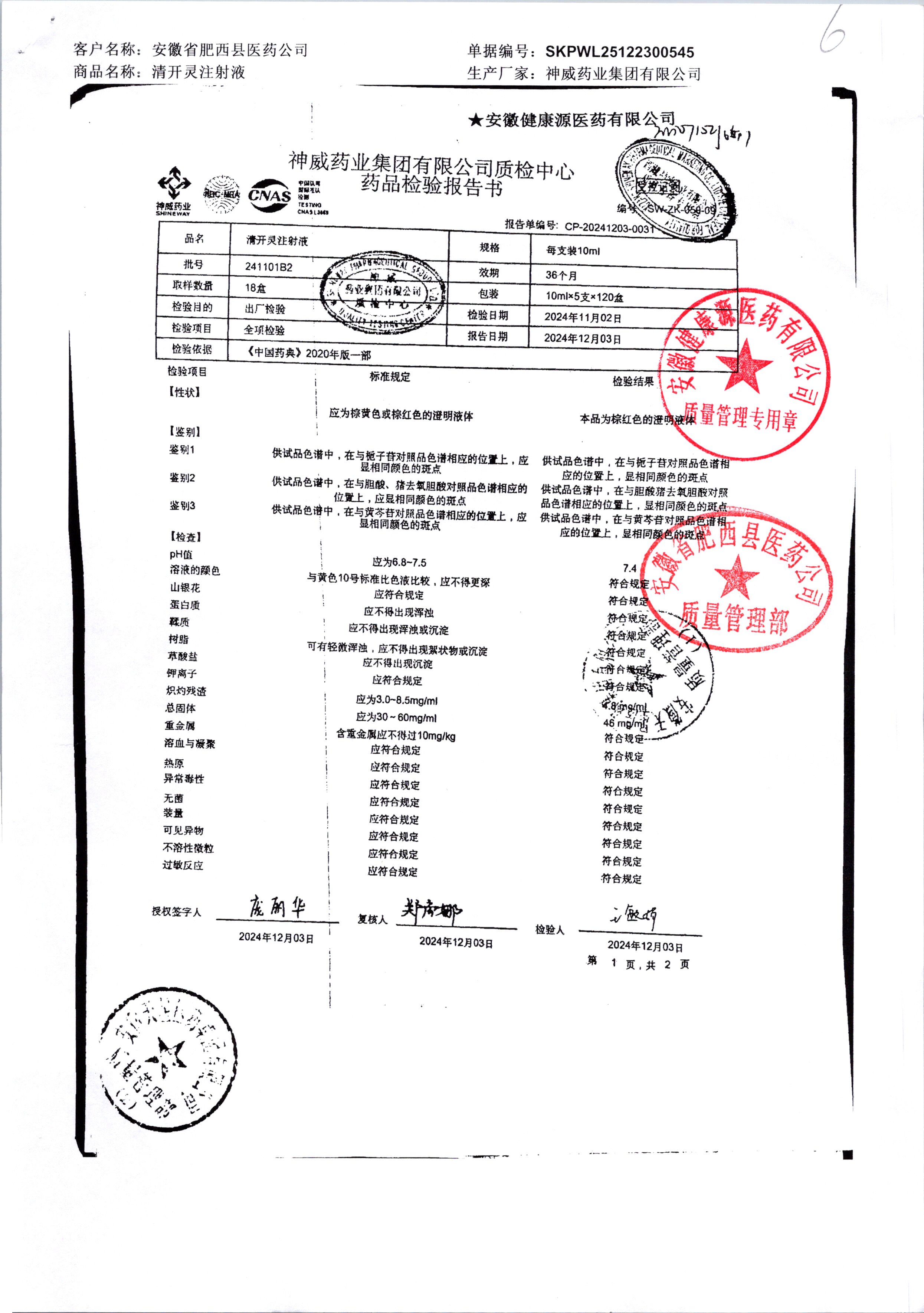 | 清开灵注射液 | 10ml*5 | 230824A1/1 | 查看详情 |