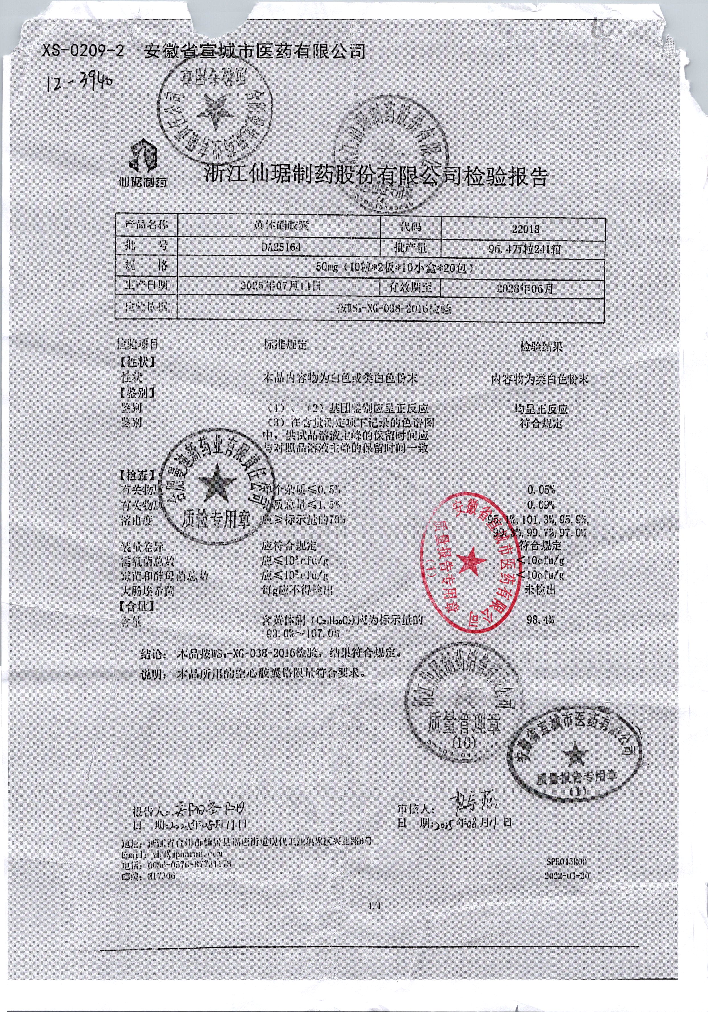 | 黄体酮胶囊 | 50mg*20s | 200808 | 查看详情 |
