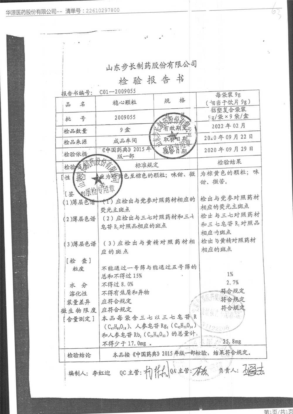 药检报告