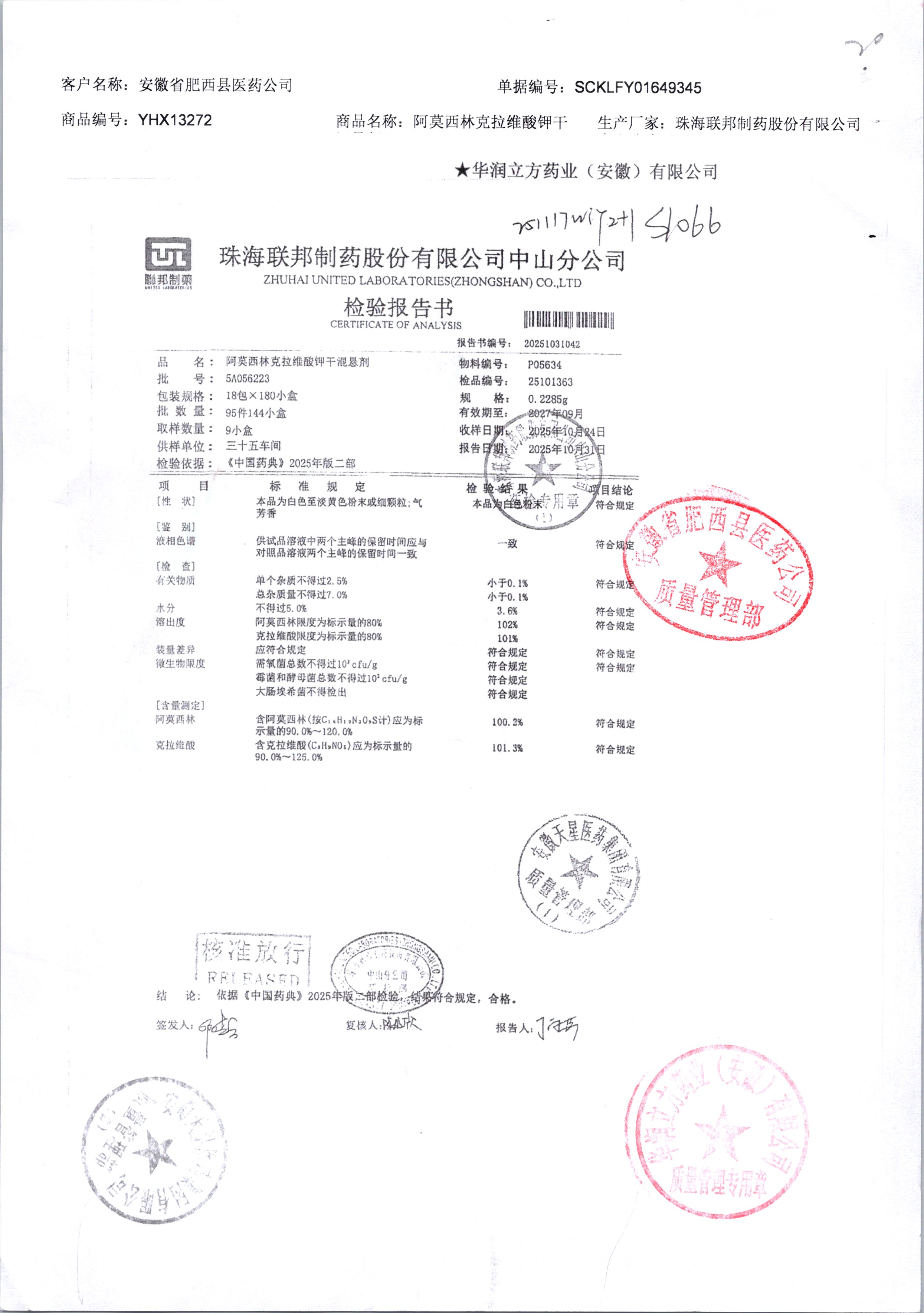 | 阿莫西林克拉维酸钾干混悬剂 | 0.2285g | 9A056102 | 查看详情 |