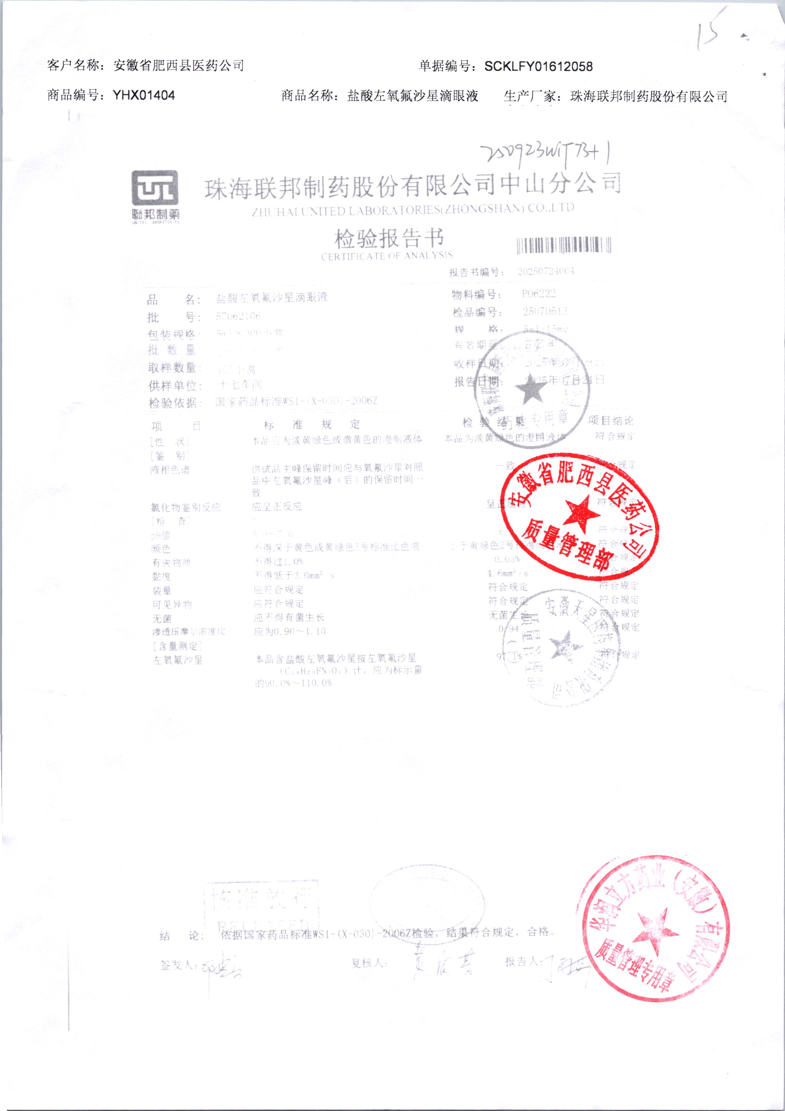 | 盐酸左氧氟沙星滴眼液 | 5ml:15mg | 0A062101 | 查看详情 |