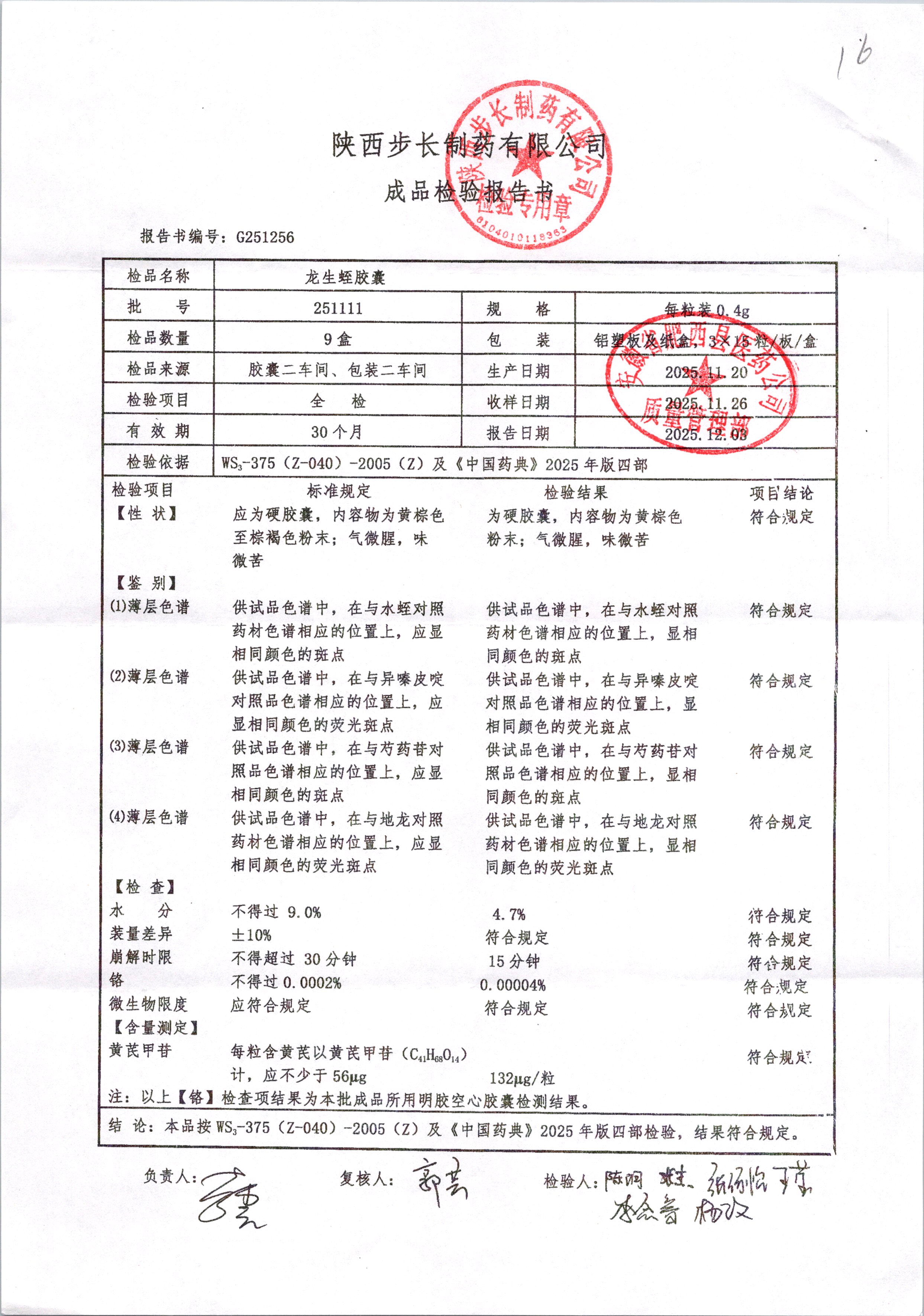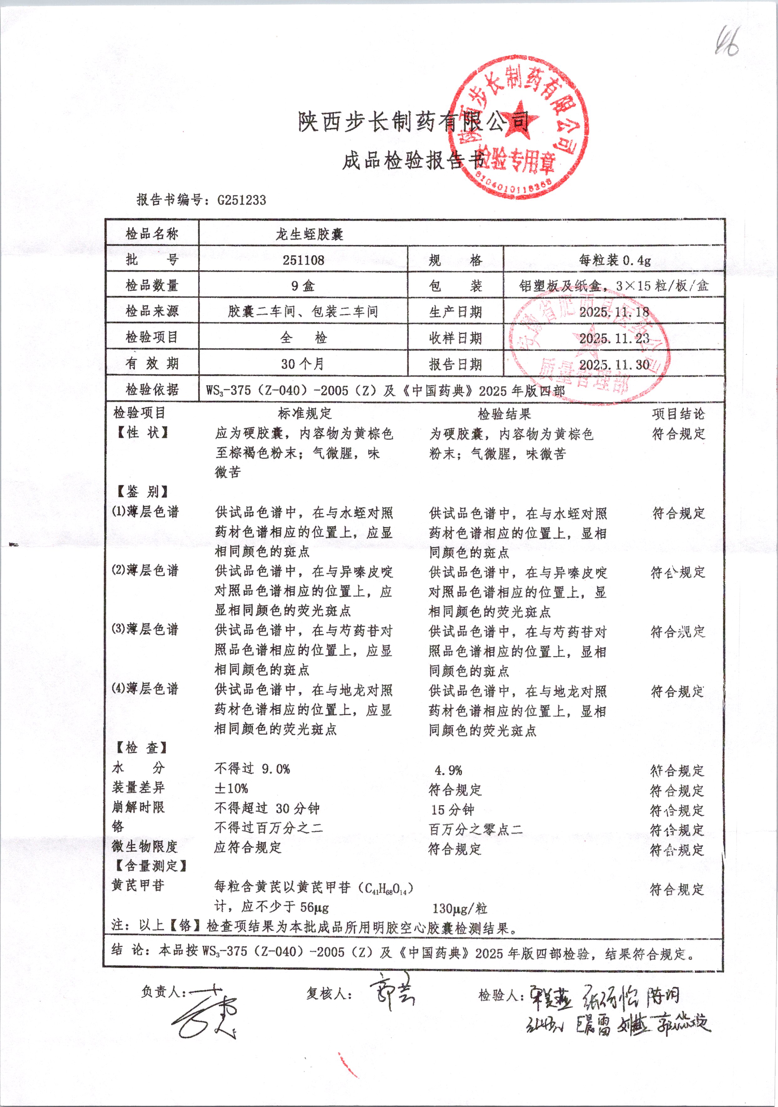 | 龙生蛭胶囊 | 0.4g*45粒 | 251113 | 查看详情 |