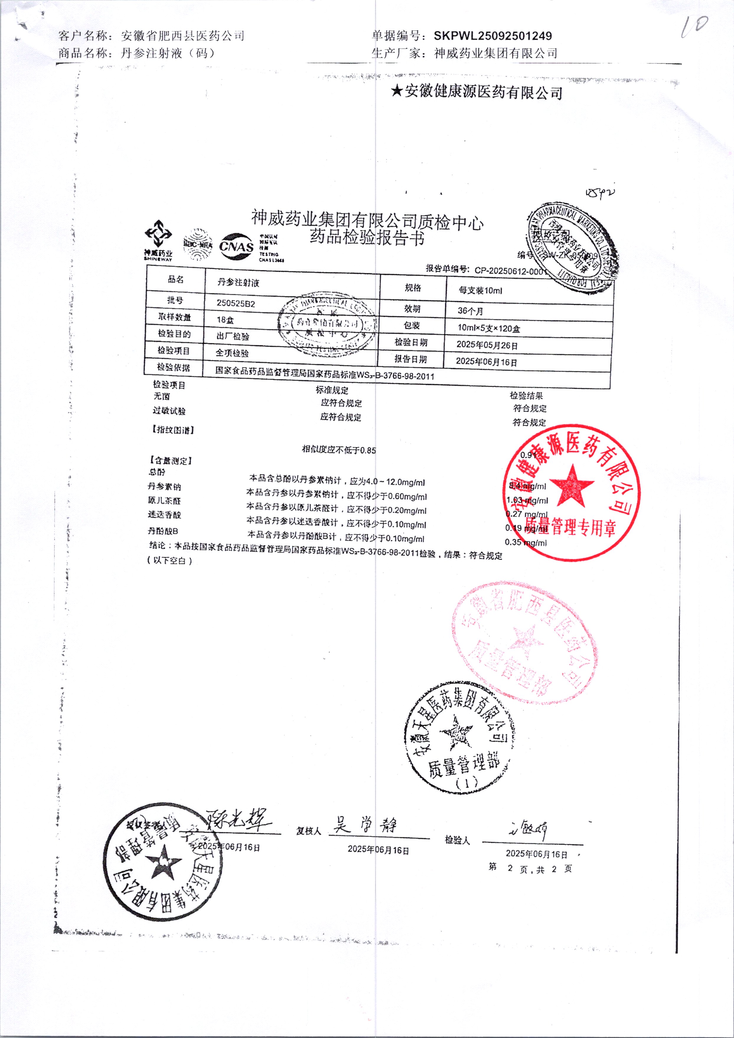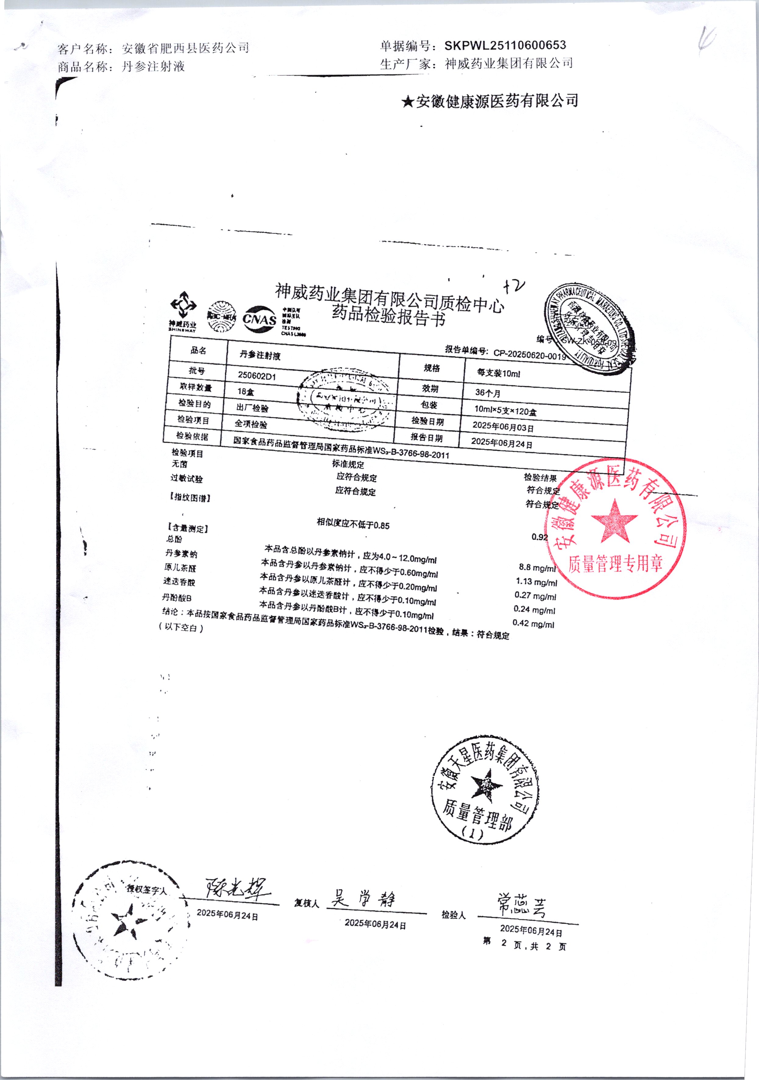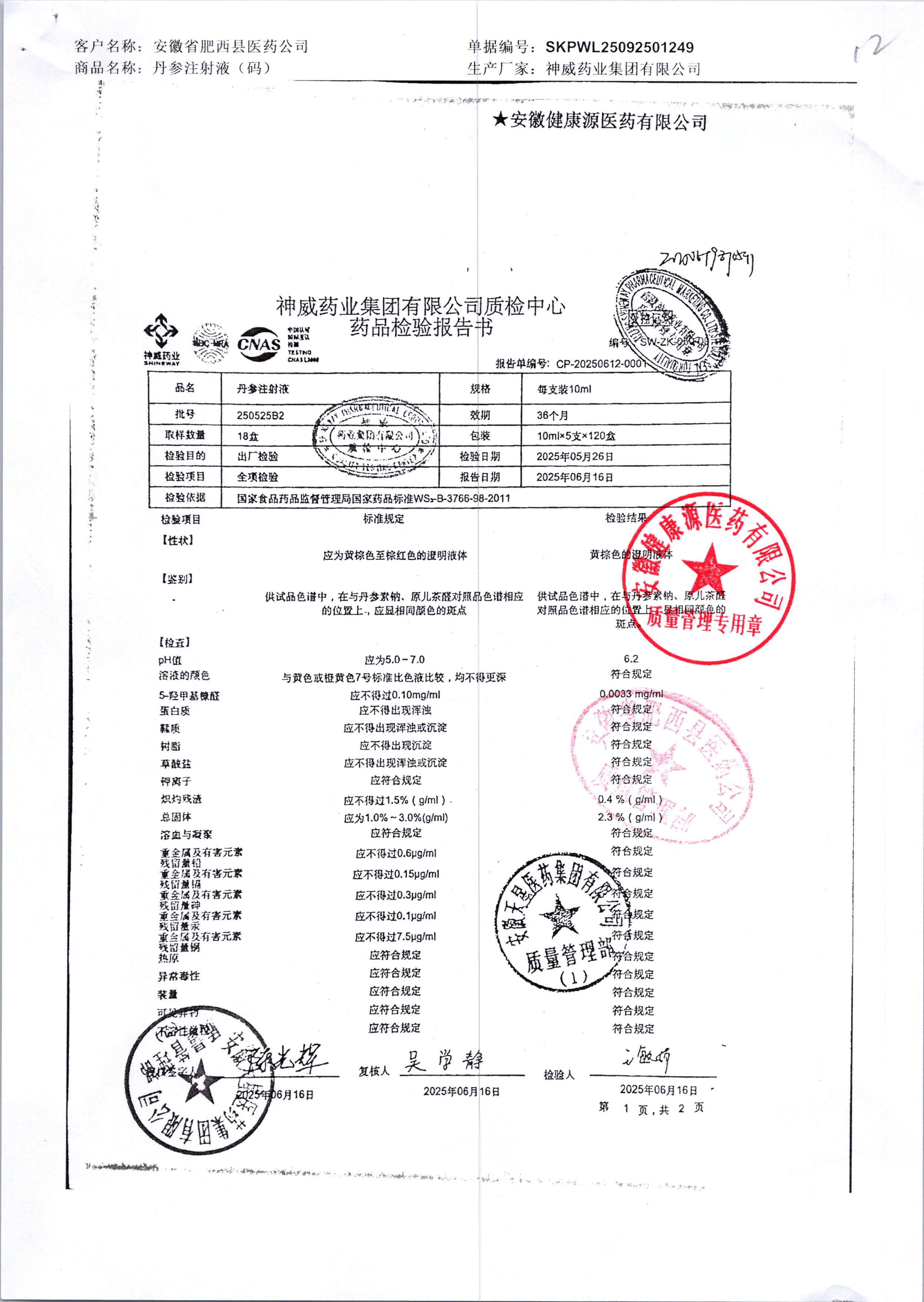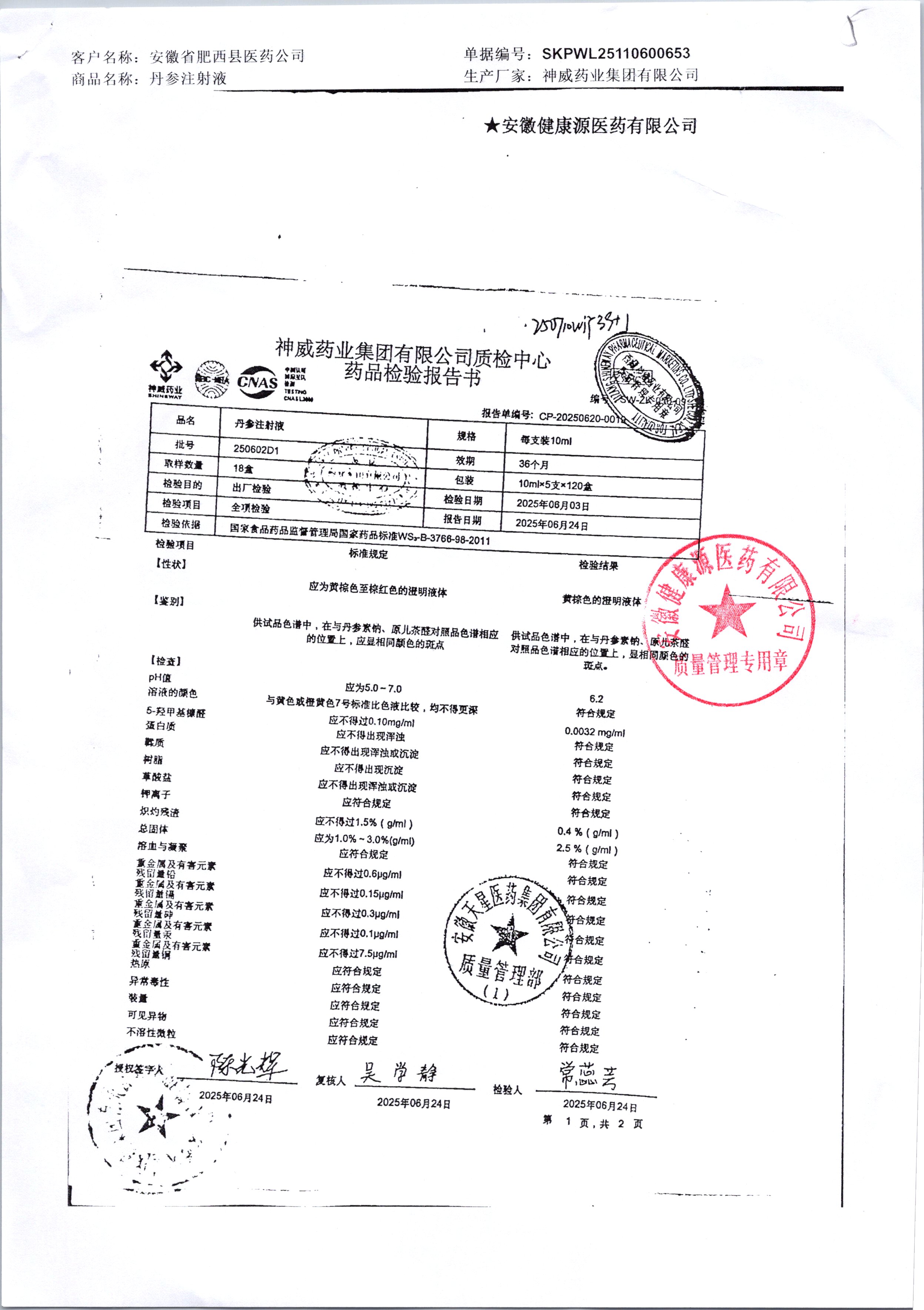 | 丹参注射液 | 10ml*5支 | 250602D1/2 | 查看详情 |