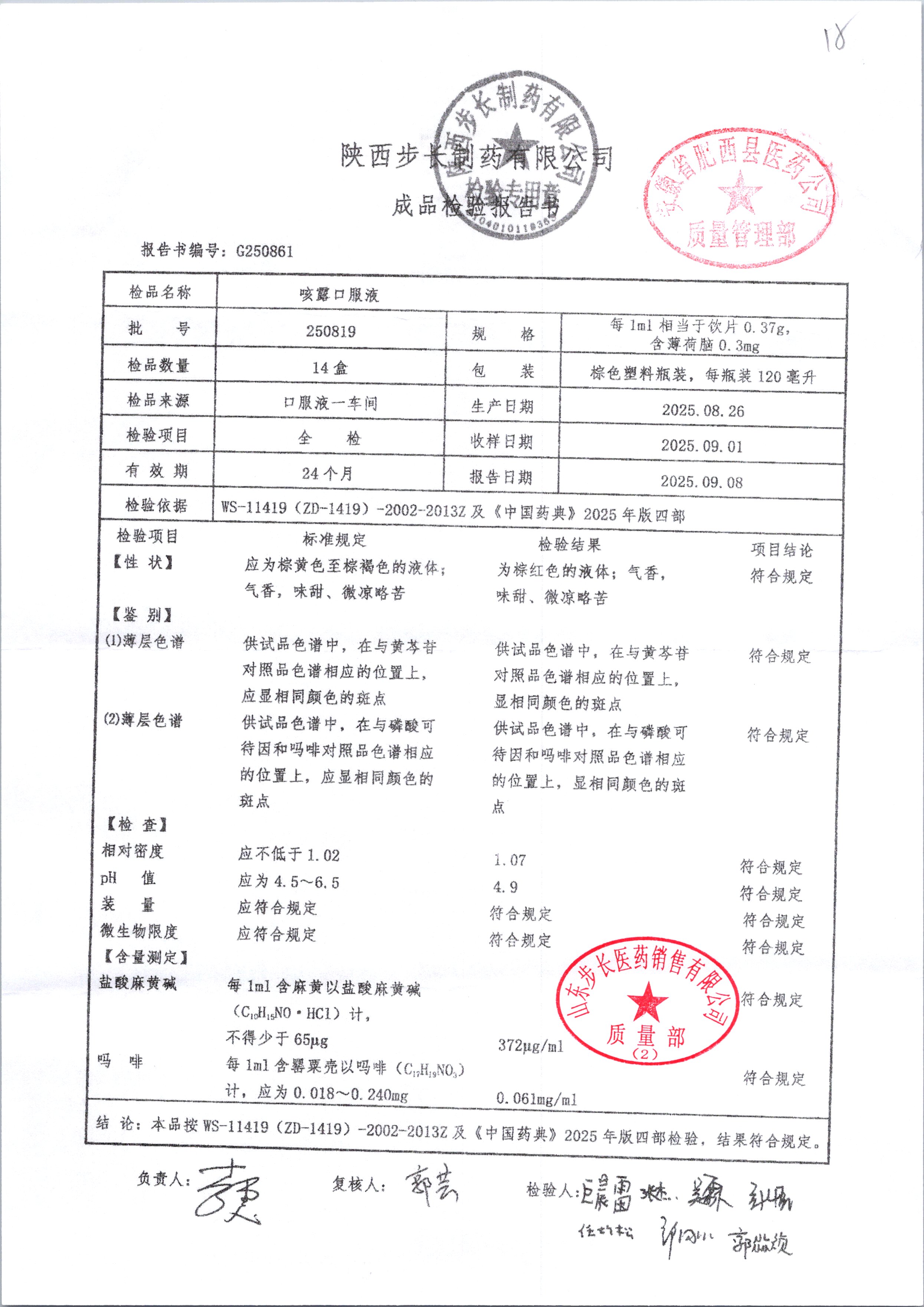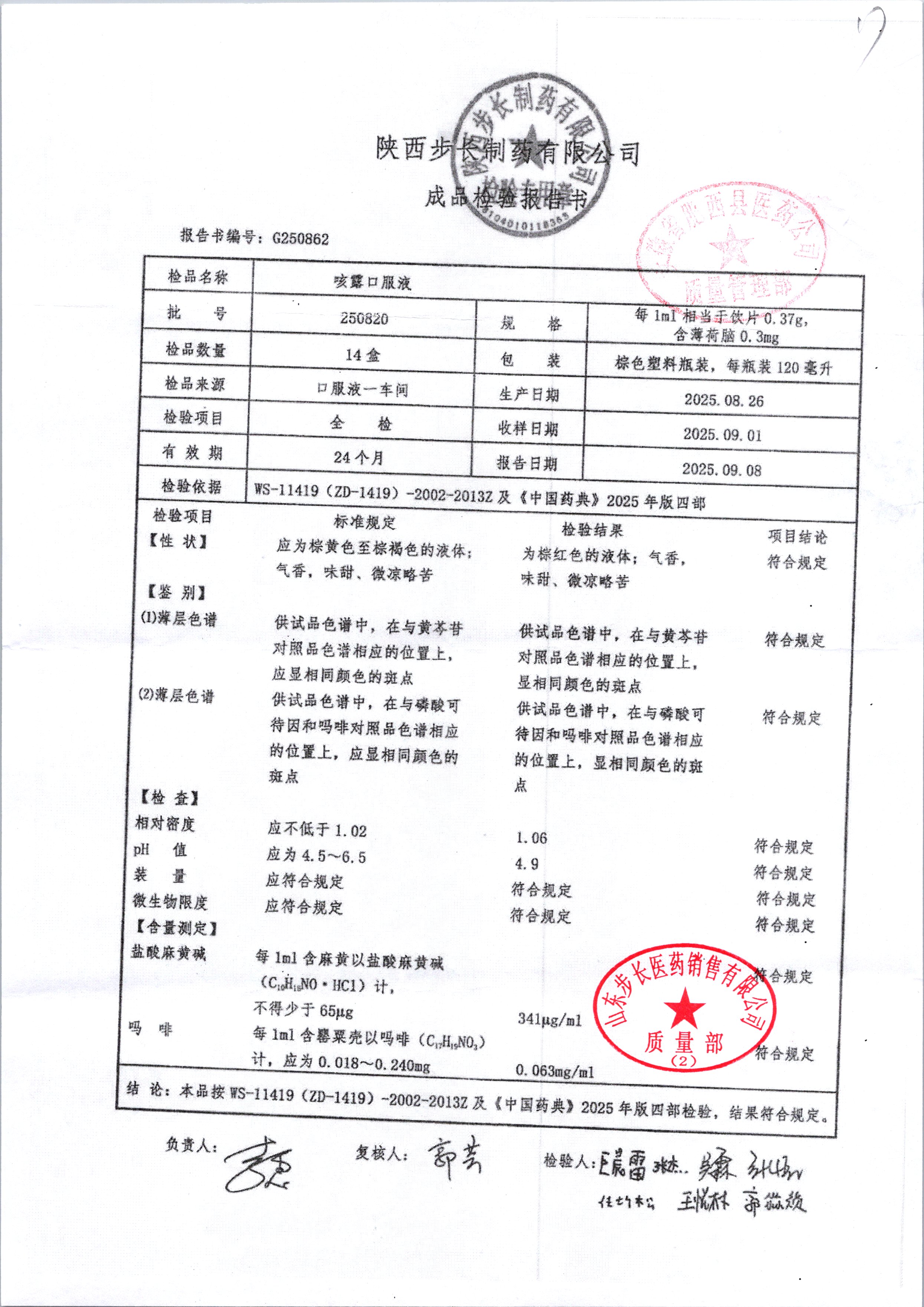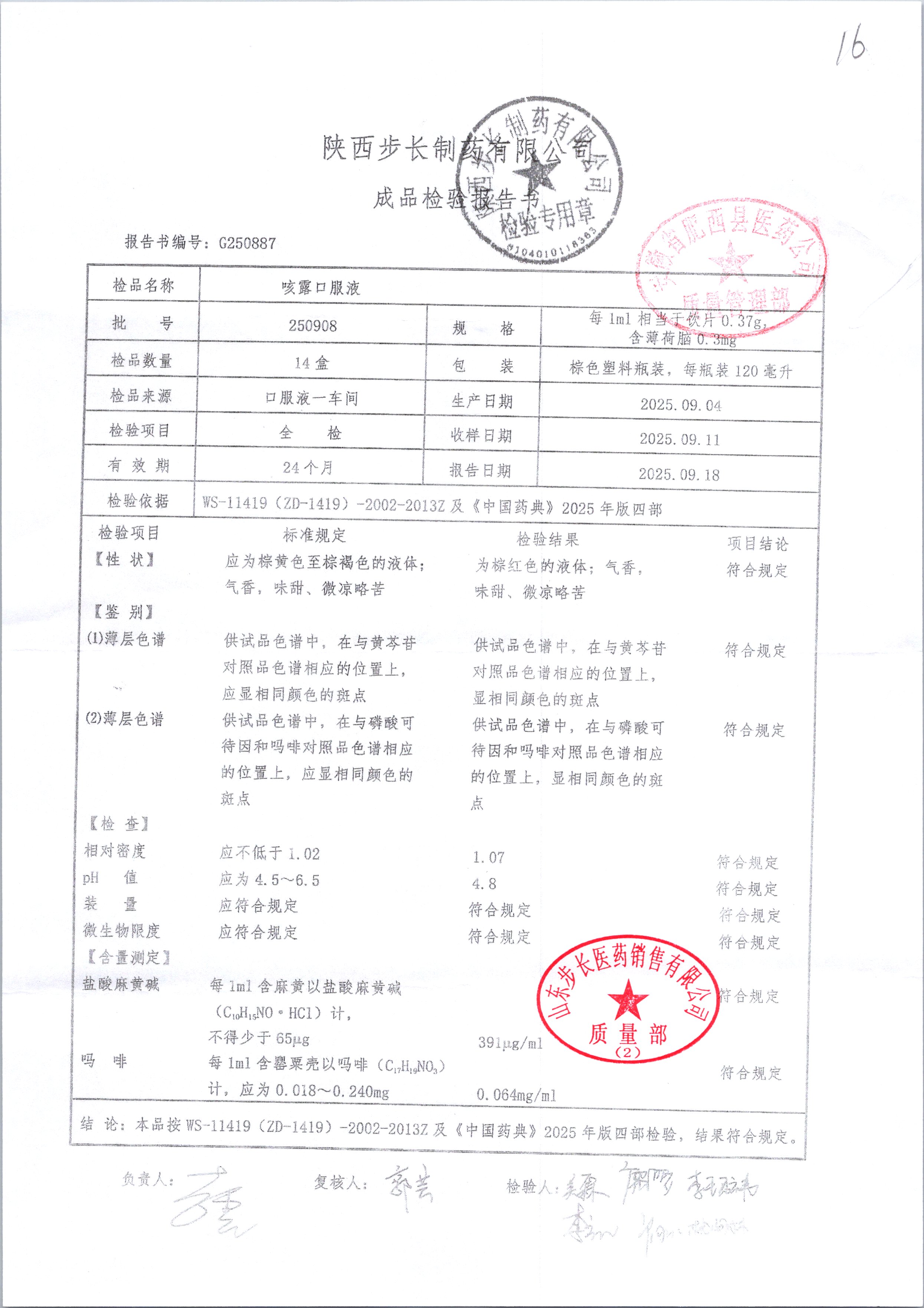 | 咳露口服液 | 120ml | 250819 | 查看详情 |