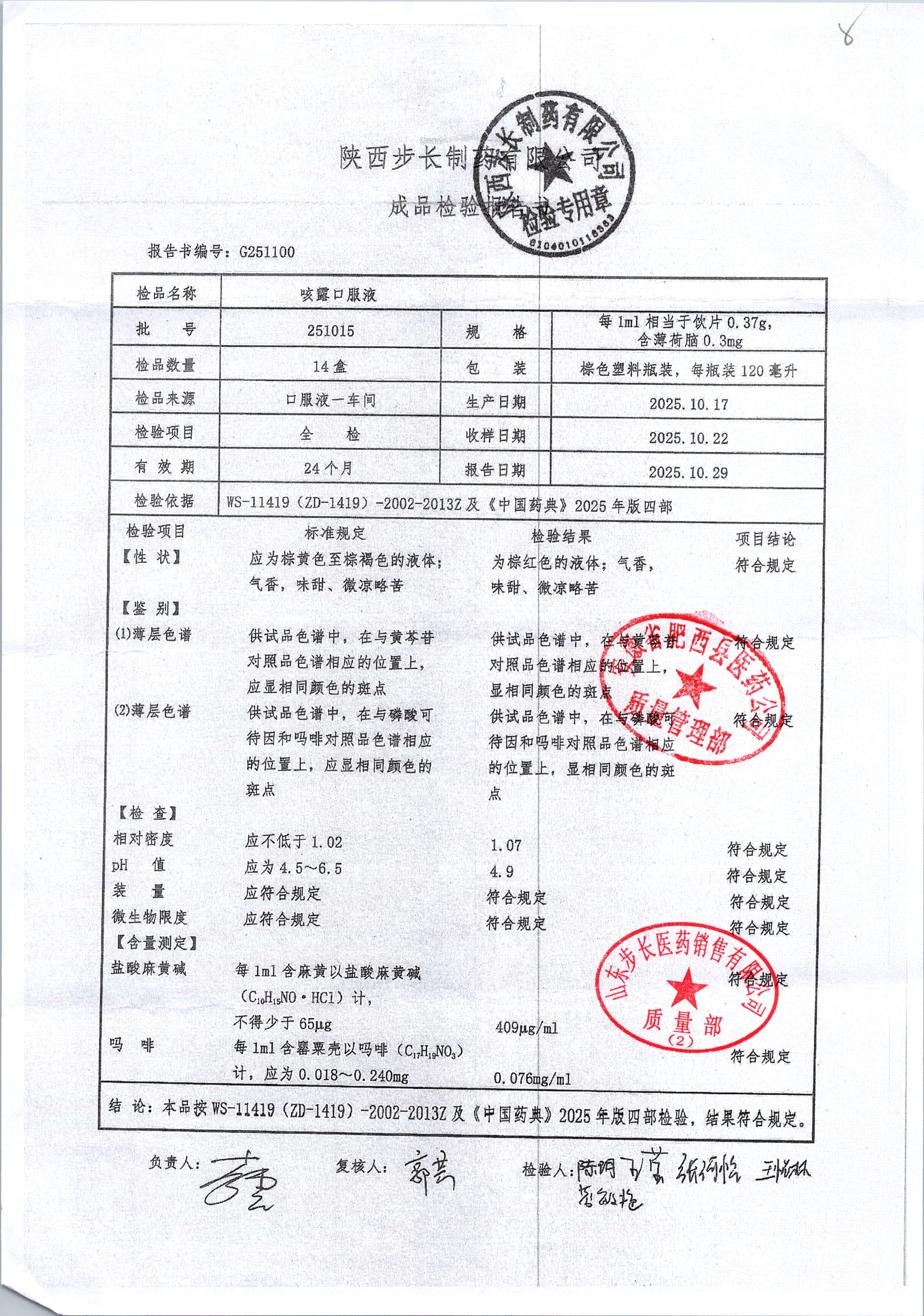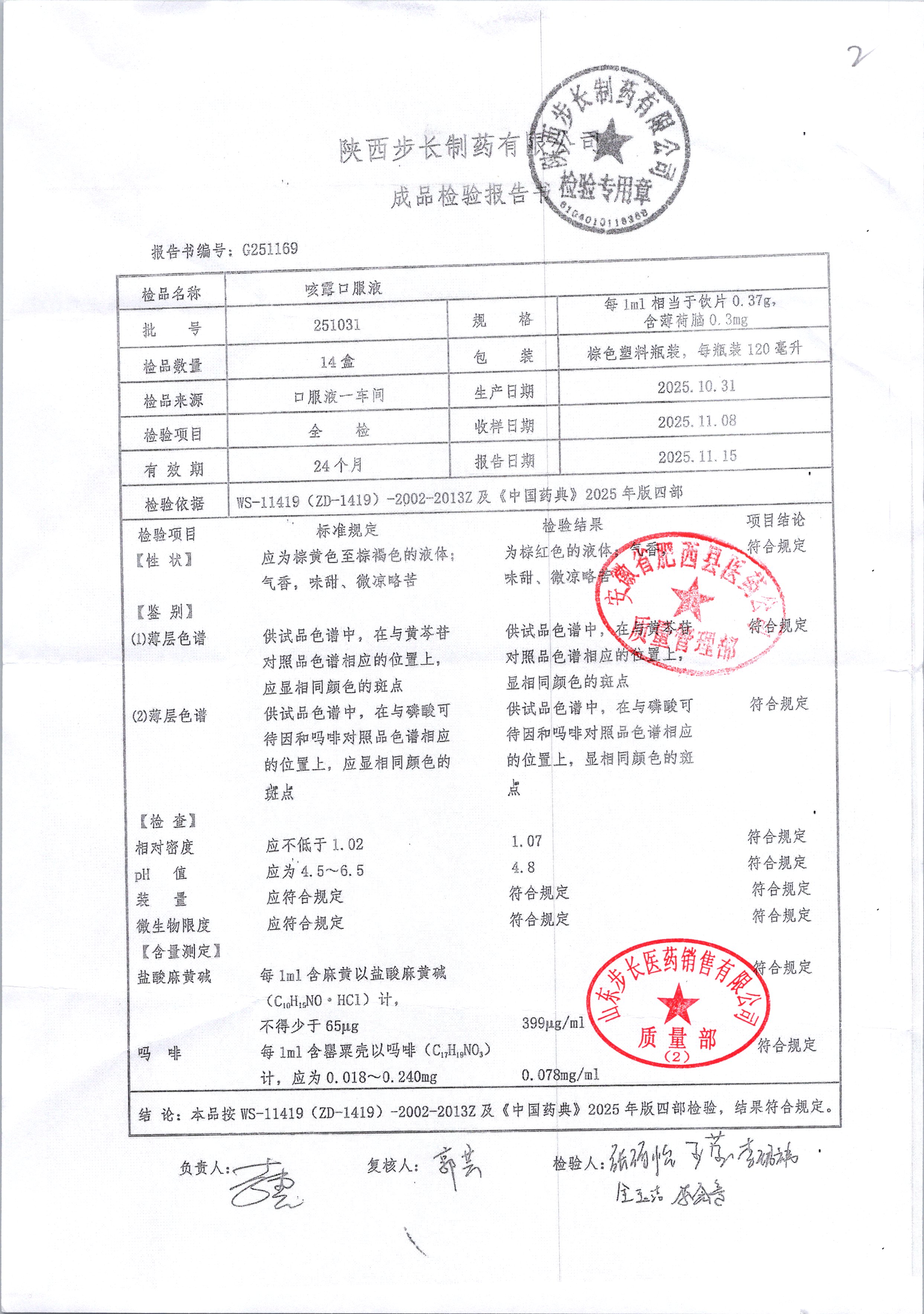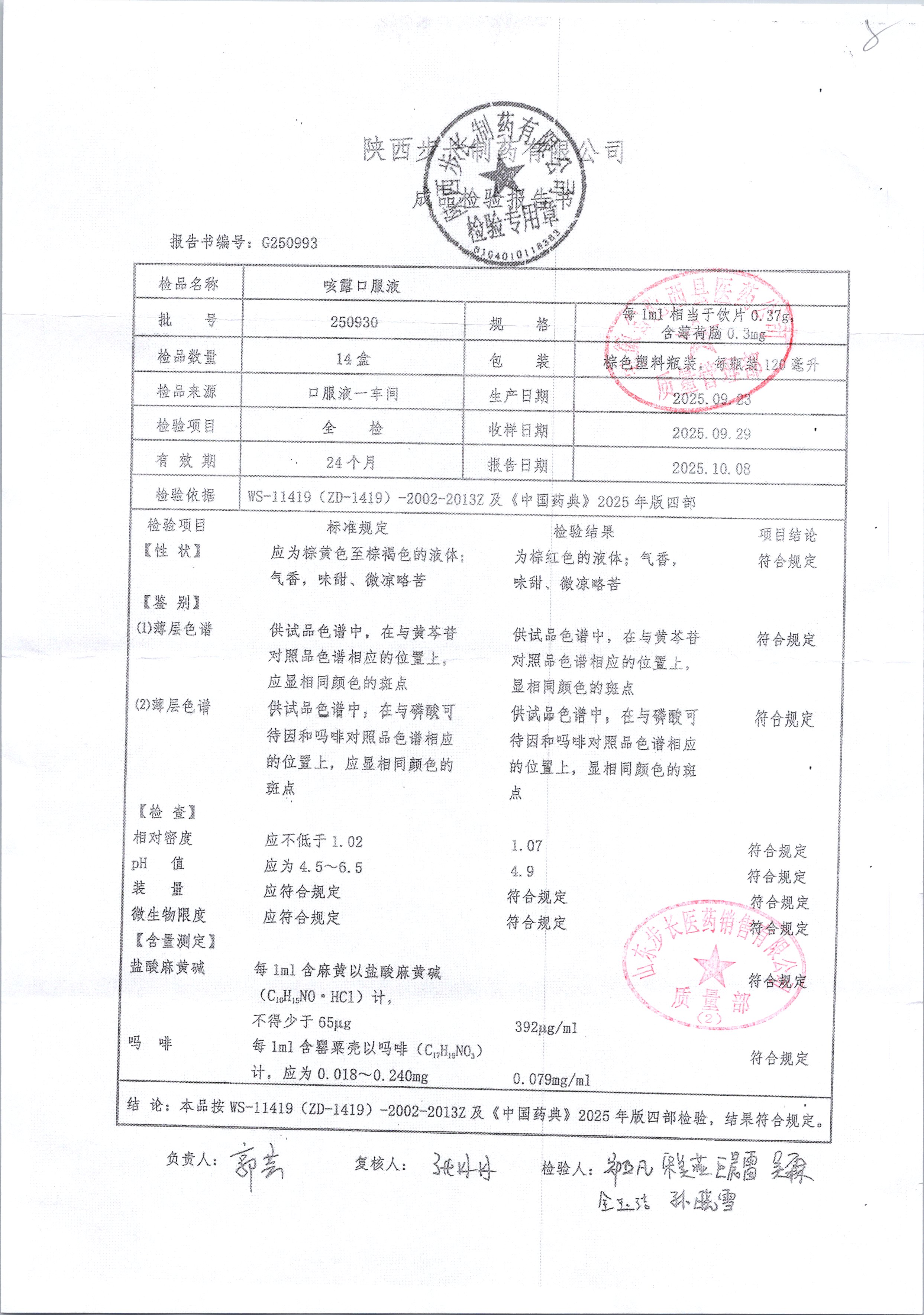 | 咳露口服液 | 120ml | 250819 | 查看详情 |