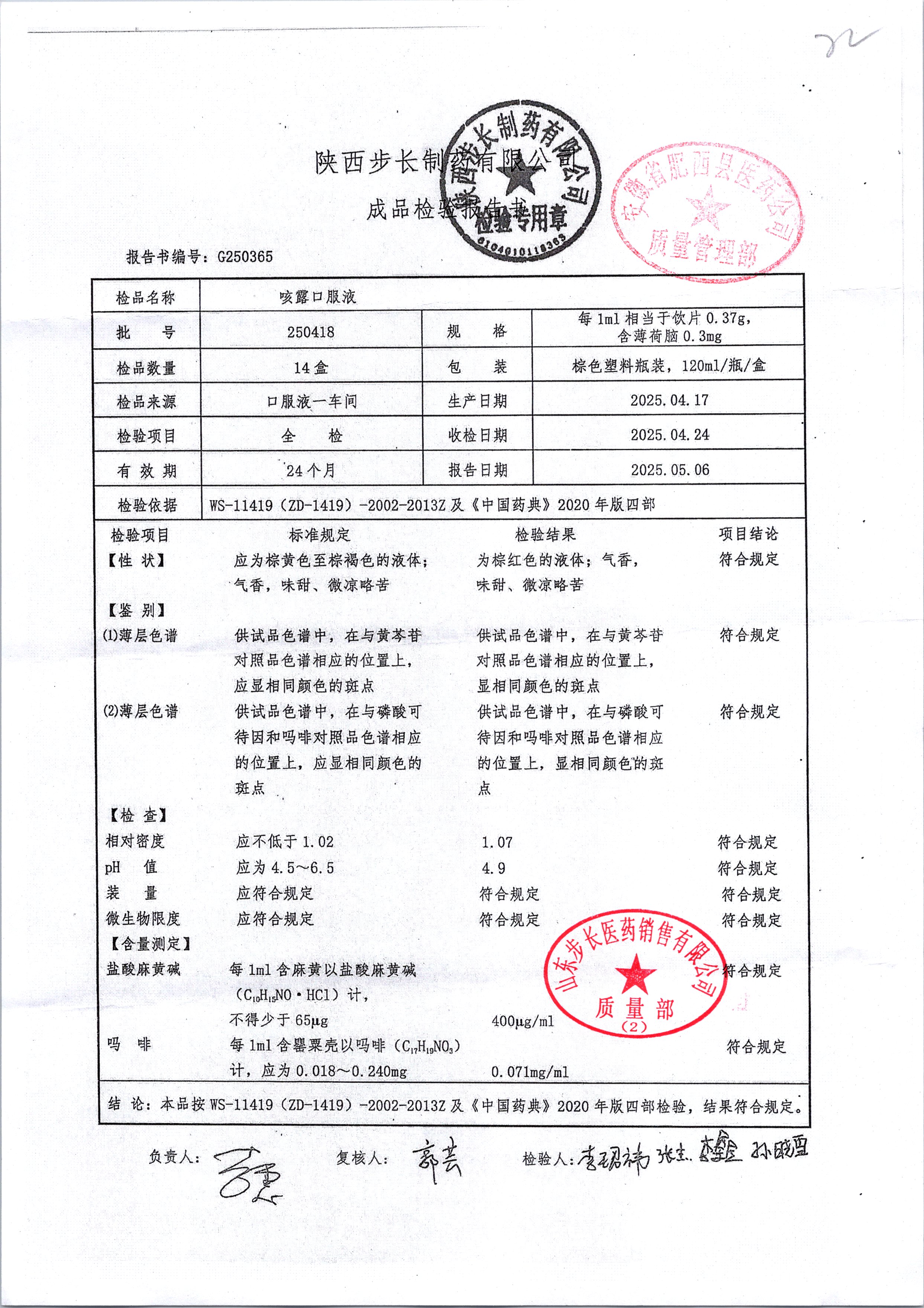 | 咳露口服液 | 120ml | 250405 | 查看详情 |