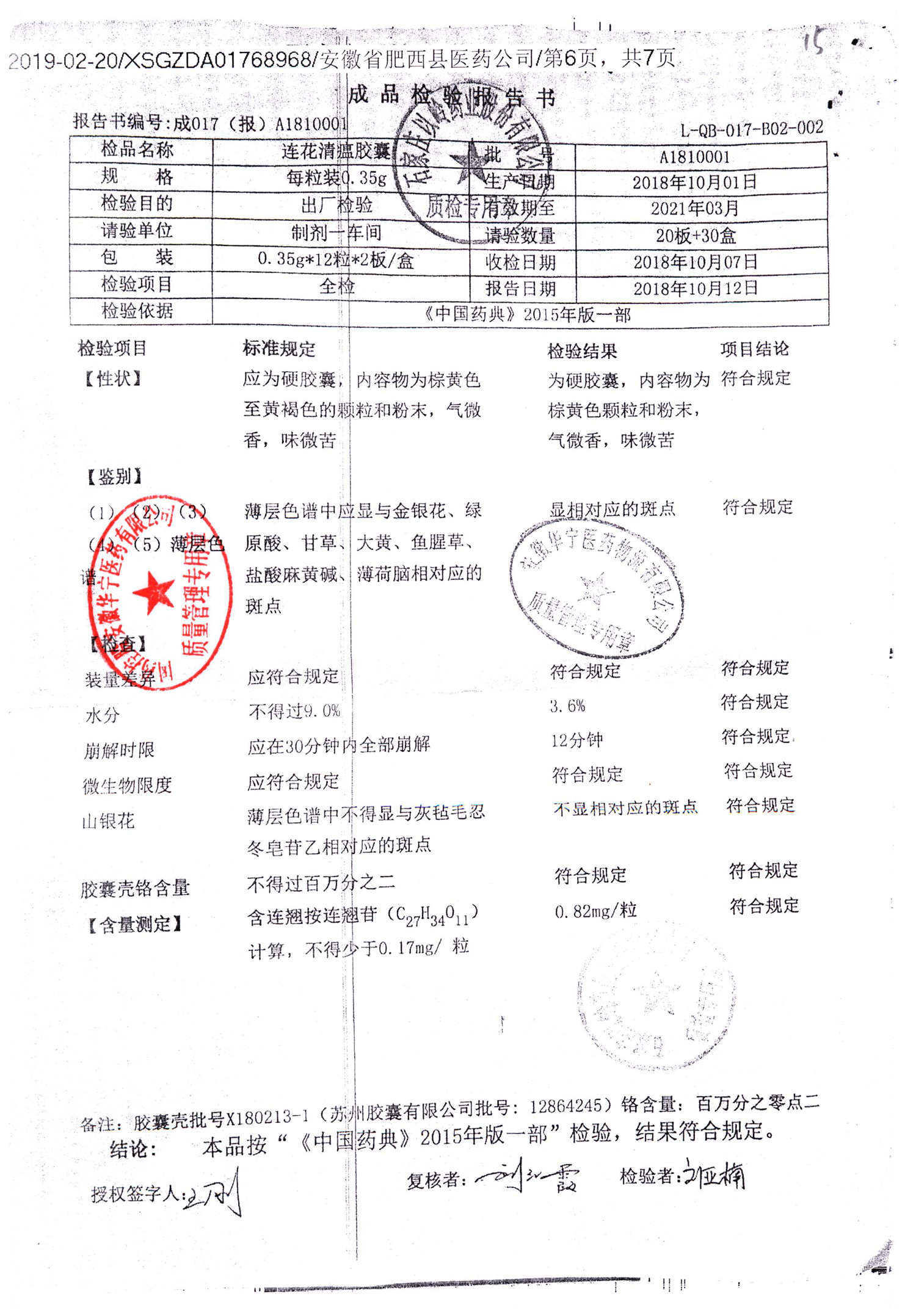 | 连花清瘟胶囊 | 0.35g*24s | A1810001 | 查看详情 |
