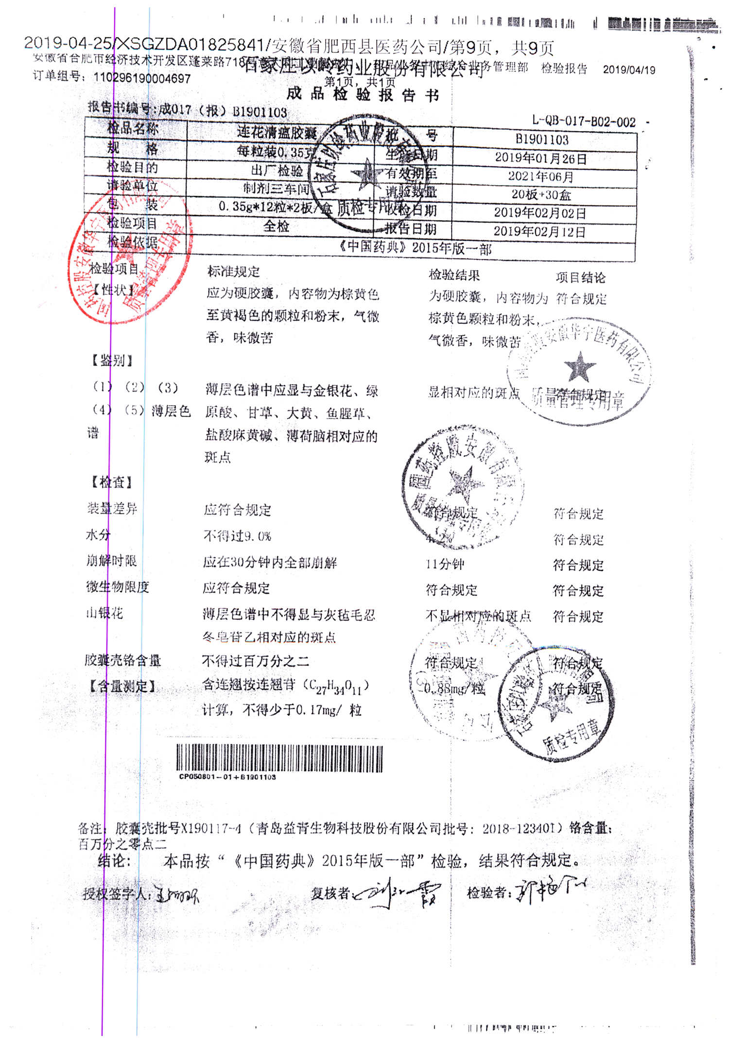| 连花清瘟胶囊 | 0.35g*24s | B1901103 | 查看详情 |