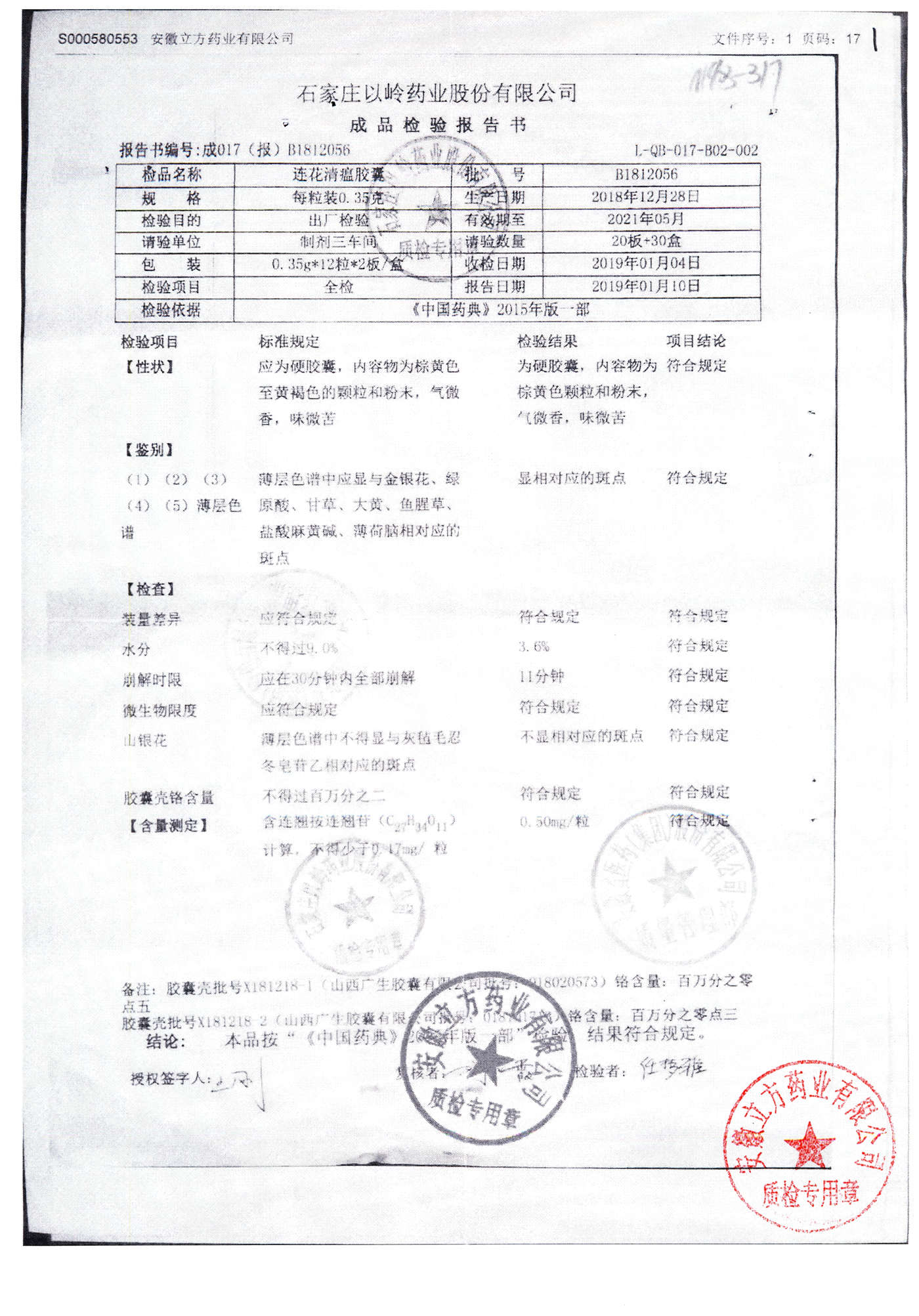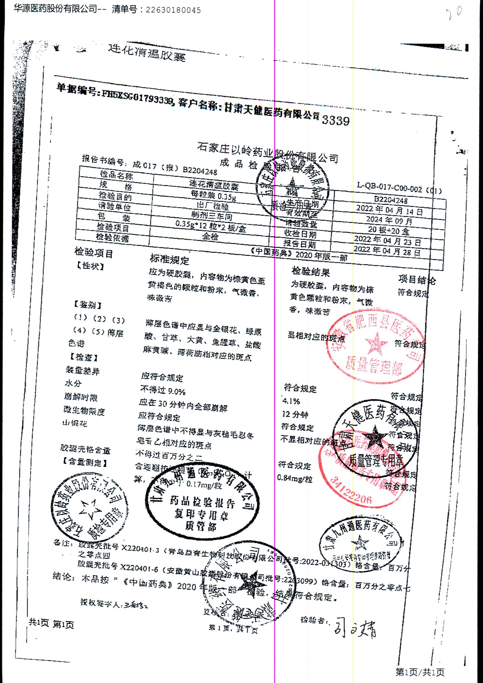 | 连花清瘟胶囊 | 0.35g*24s | B1812056 | 查看详情 |