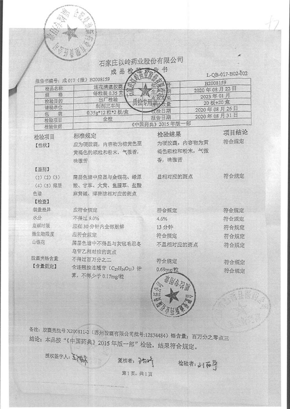 | 连花清瘟胶囊 | 0.35g*24s | B2008159 | 查看详情 |