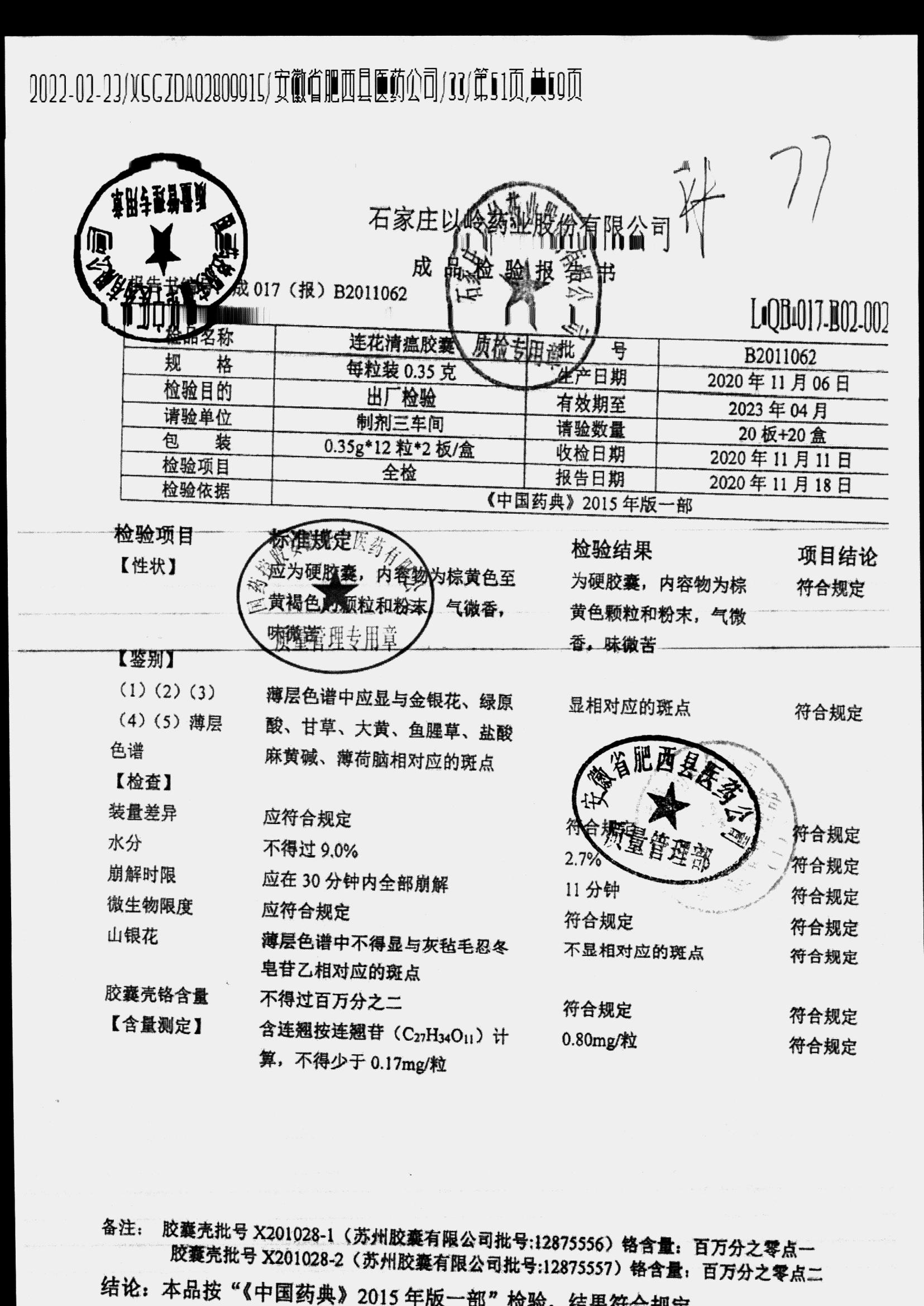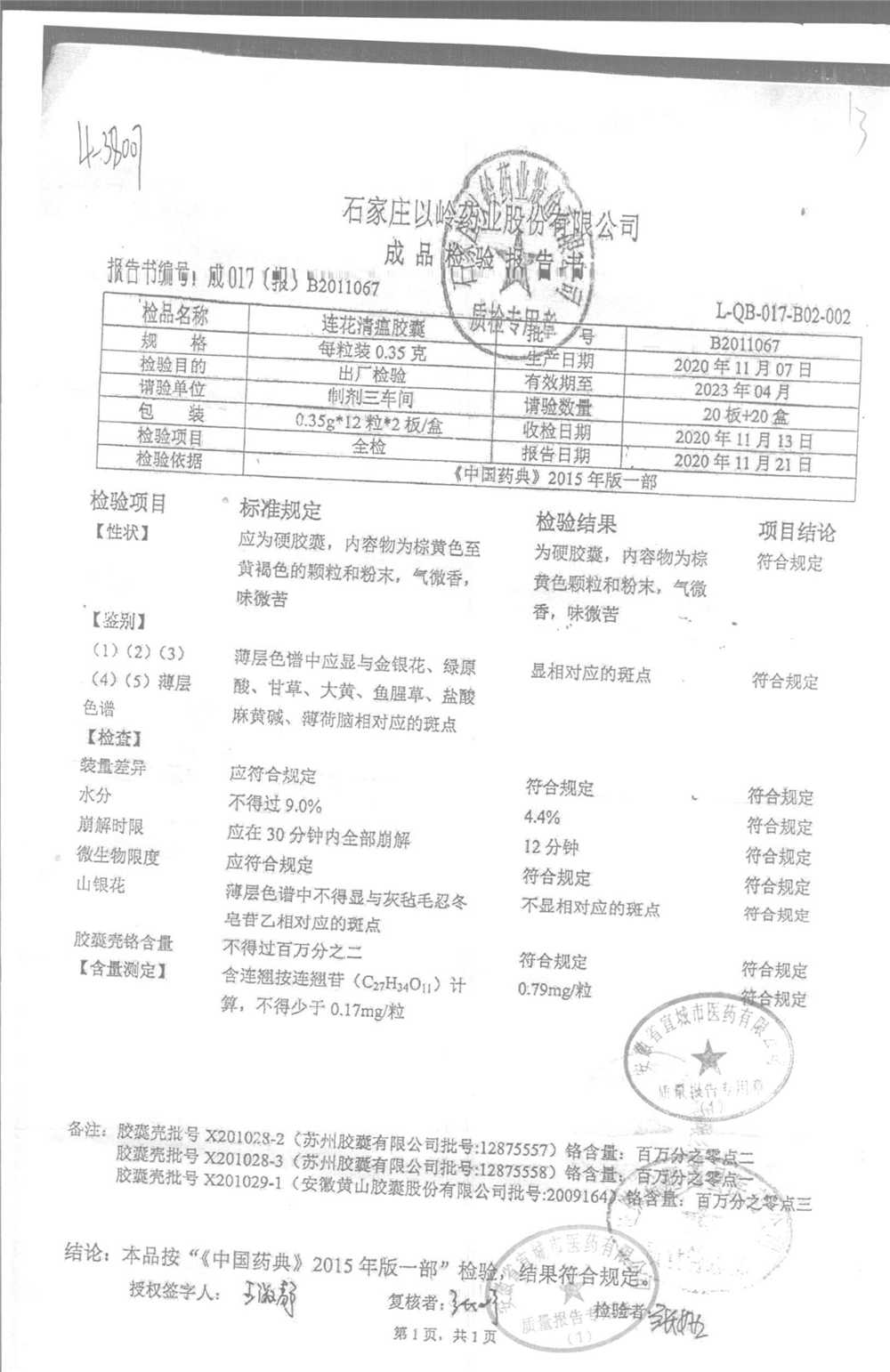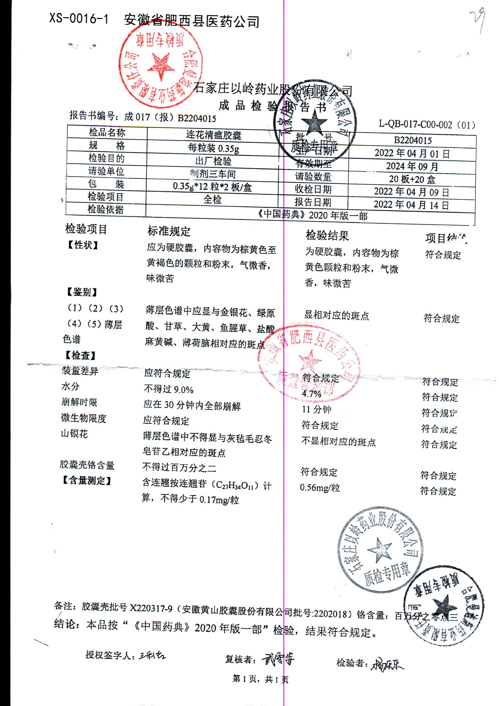 | 连花清瘟胶囊 | 0.35g*24s | B2011062 | 查看详情 |