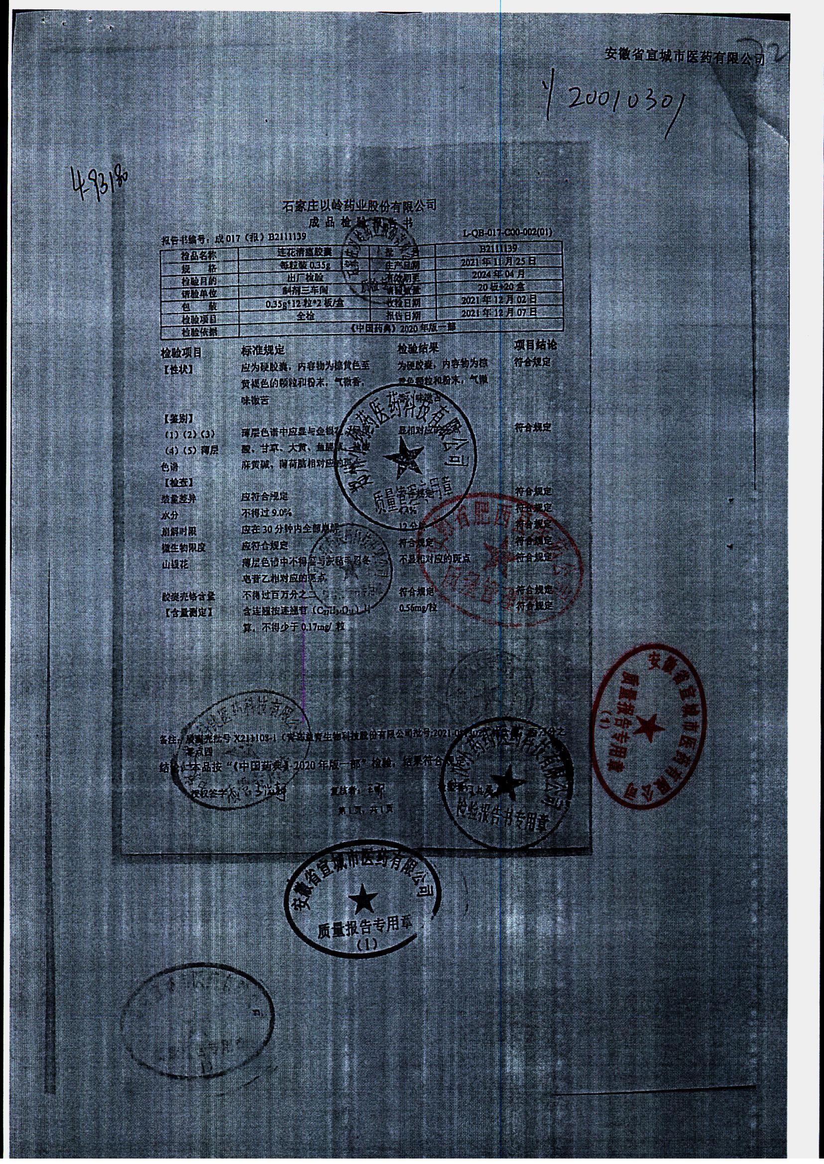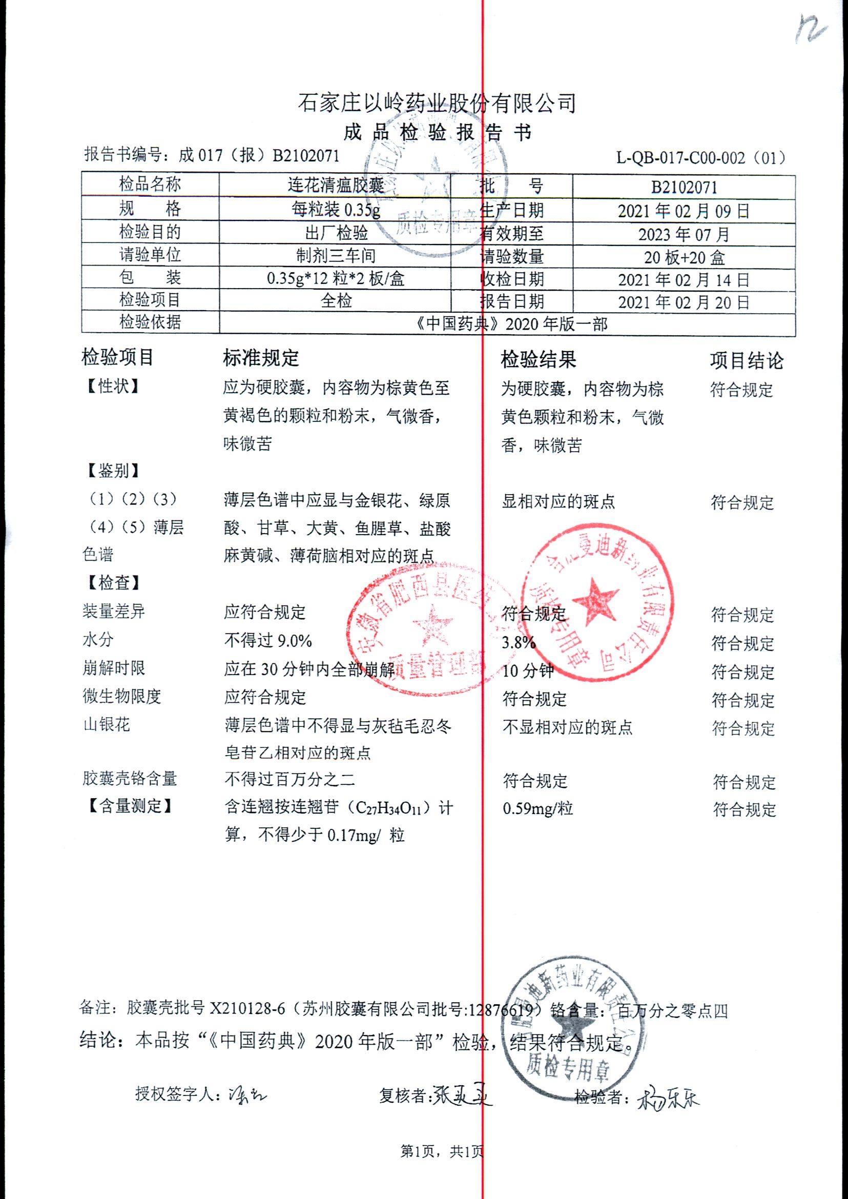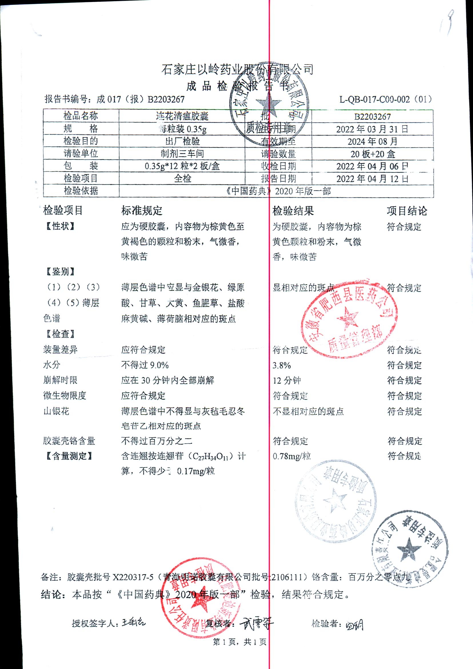 | 连花清瘟胶囊 | 0.35g*24s | B2011071 | 查看详情 |