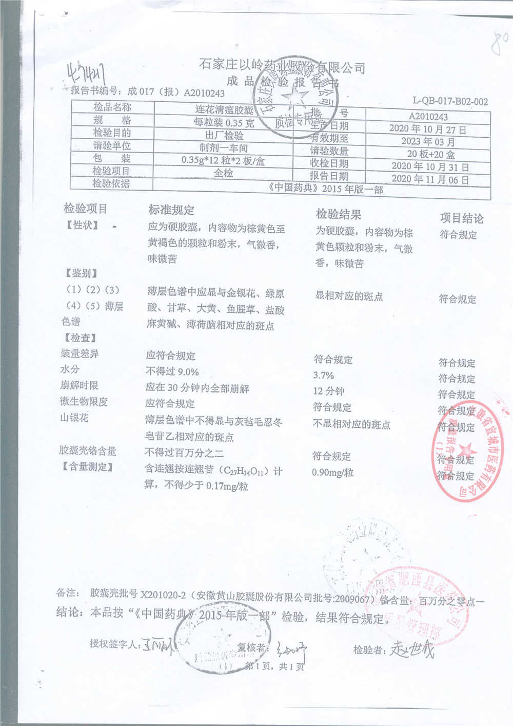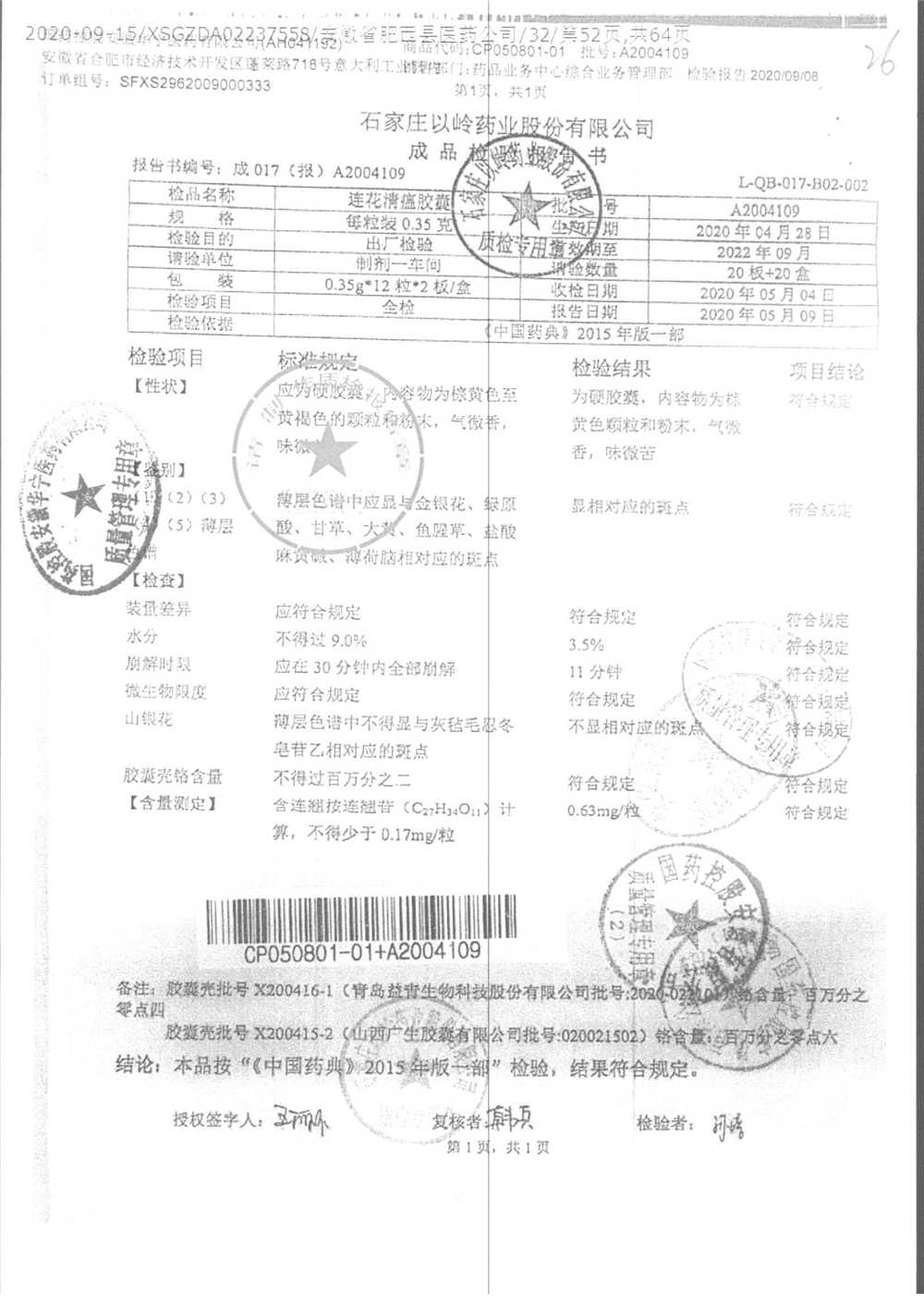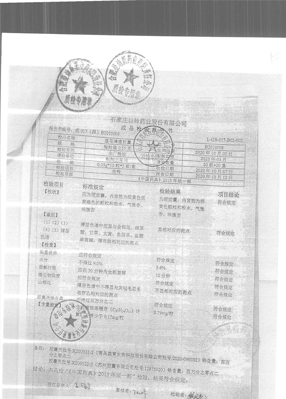 | 连花清瘟胶囊 | 0.35g*24s | B2011071 | 查看详情 |
