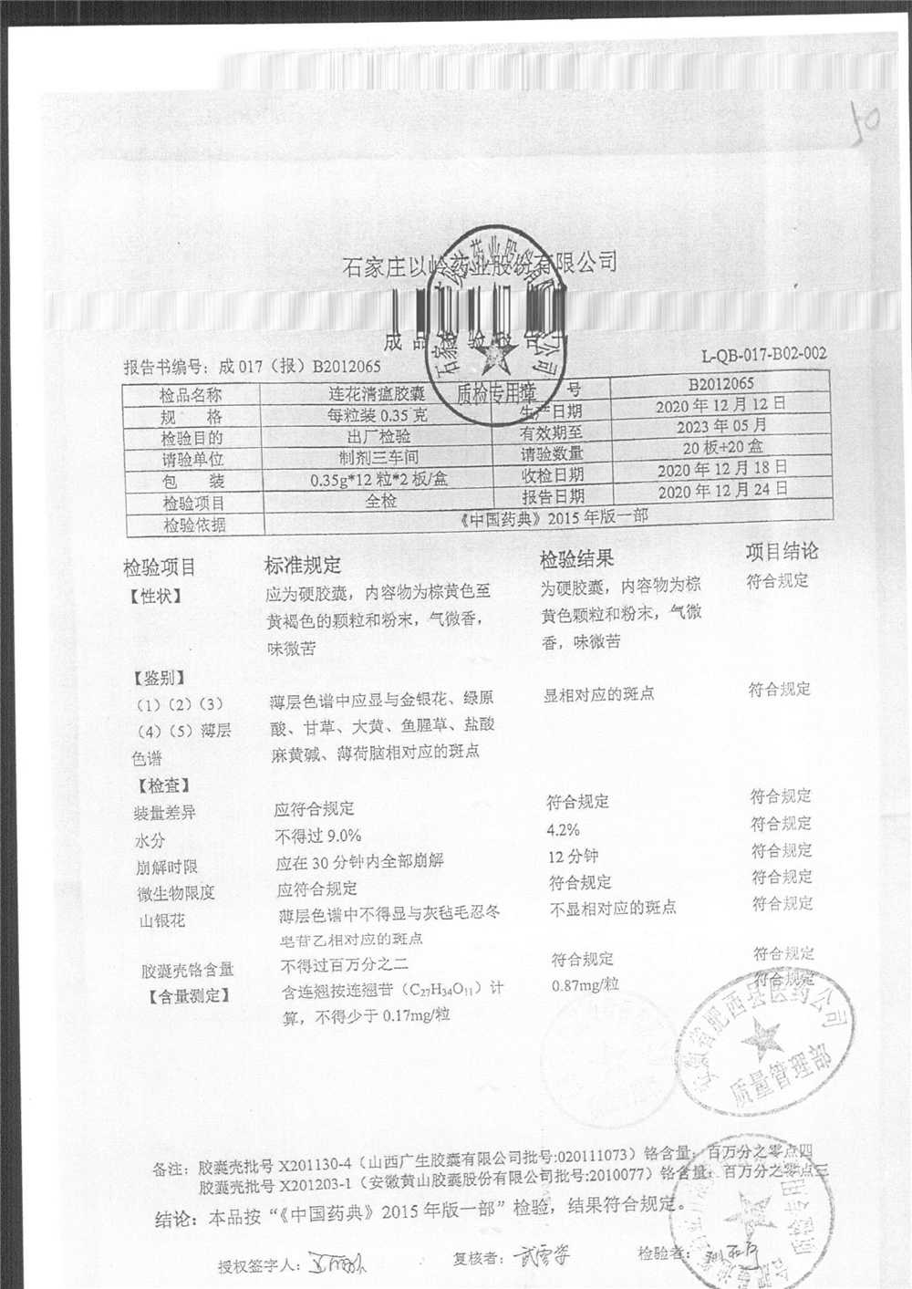 | 连花清瘟胶囊 | 0.35g*24s | B2012065 | 查看详情 |