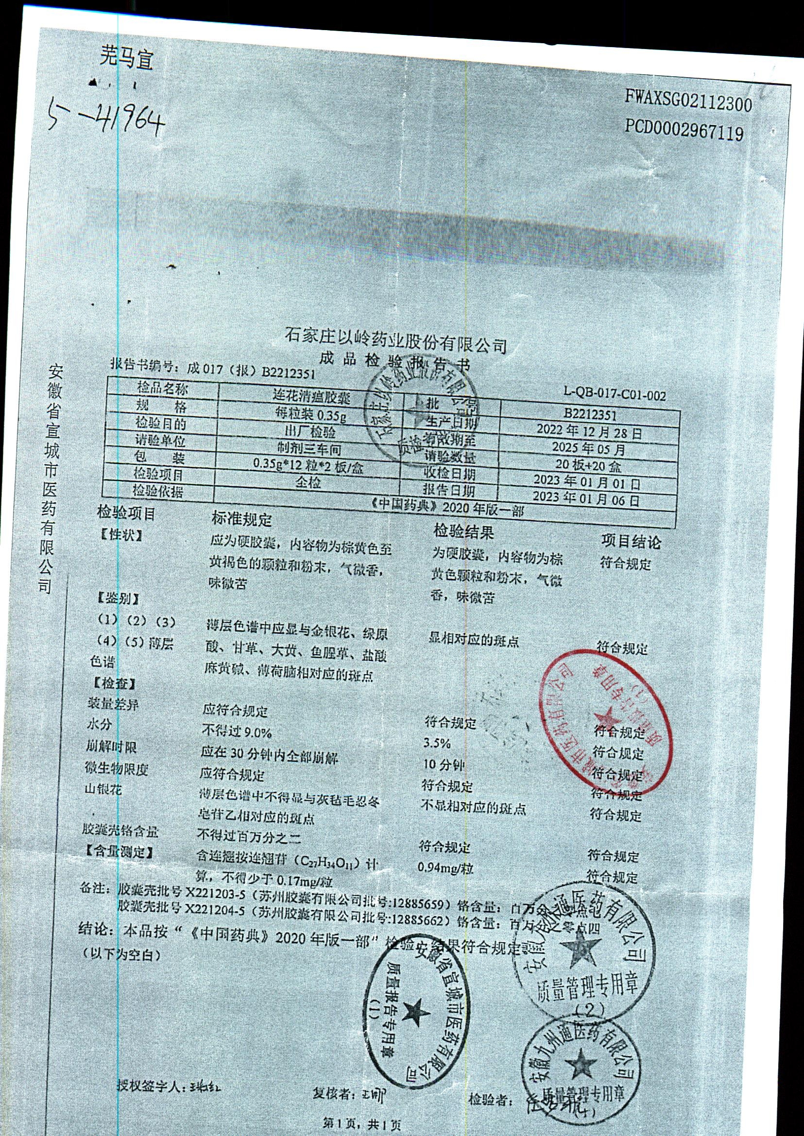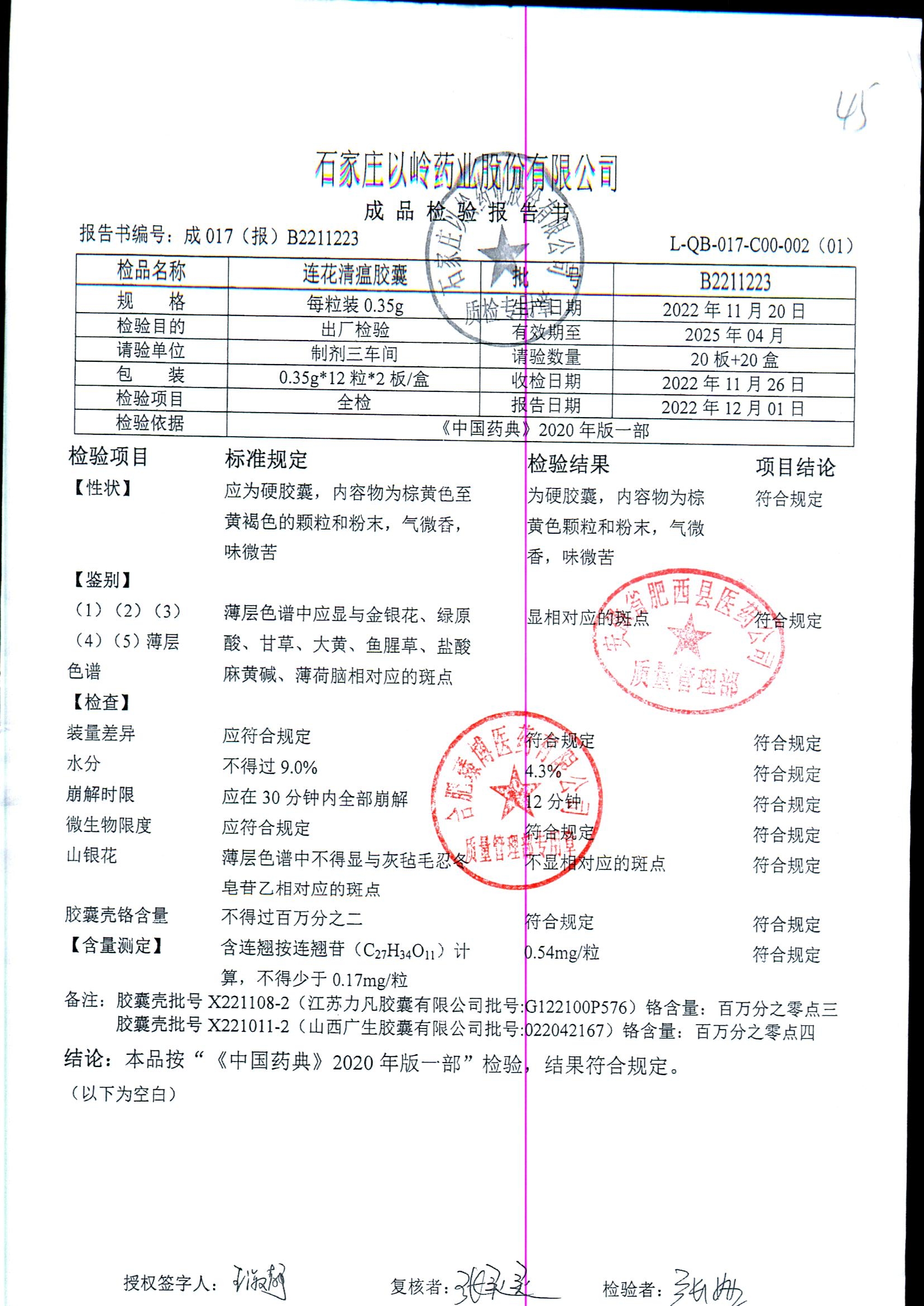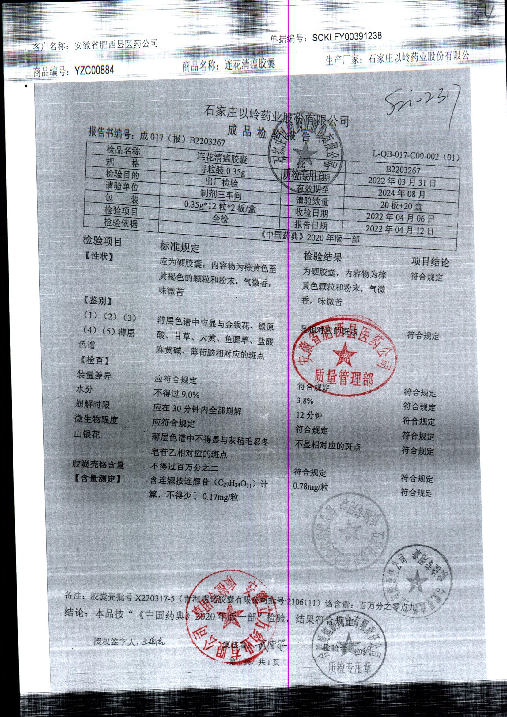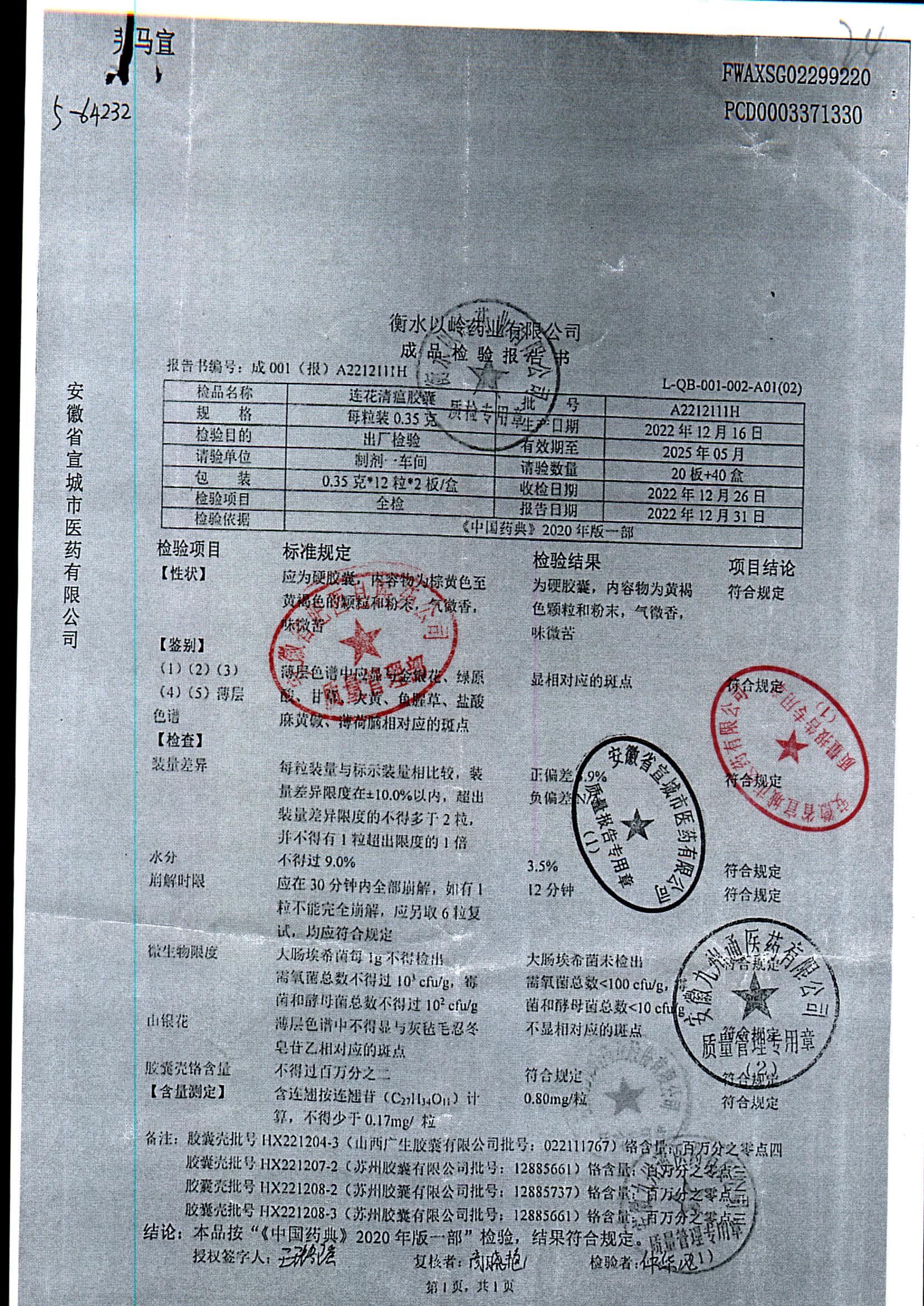 | 连花清瘟胶囊 | 0.35g*24s | B2211223 | 查看详情 |